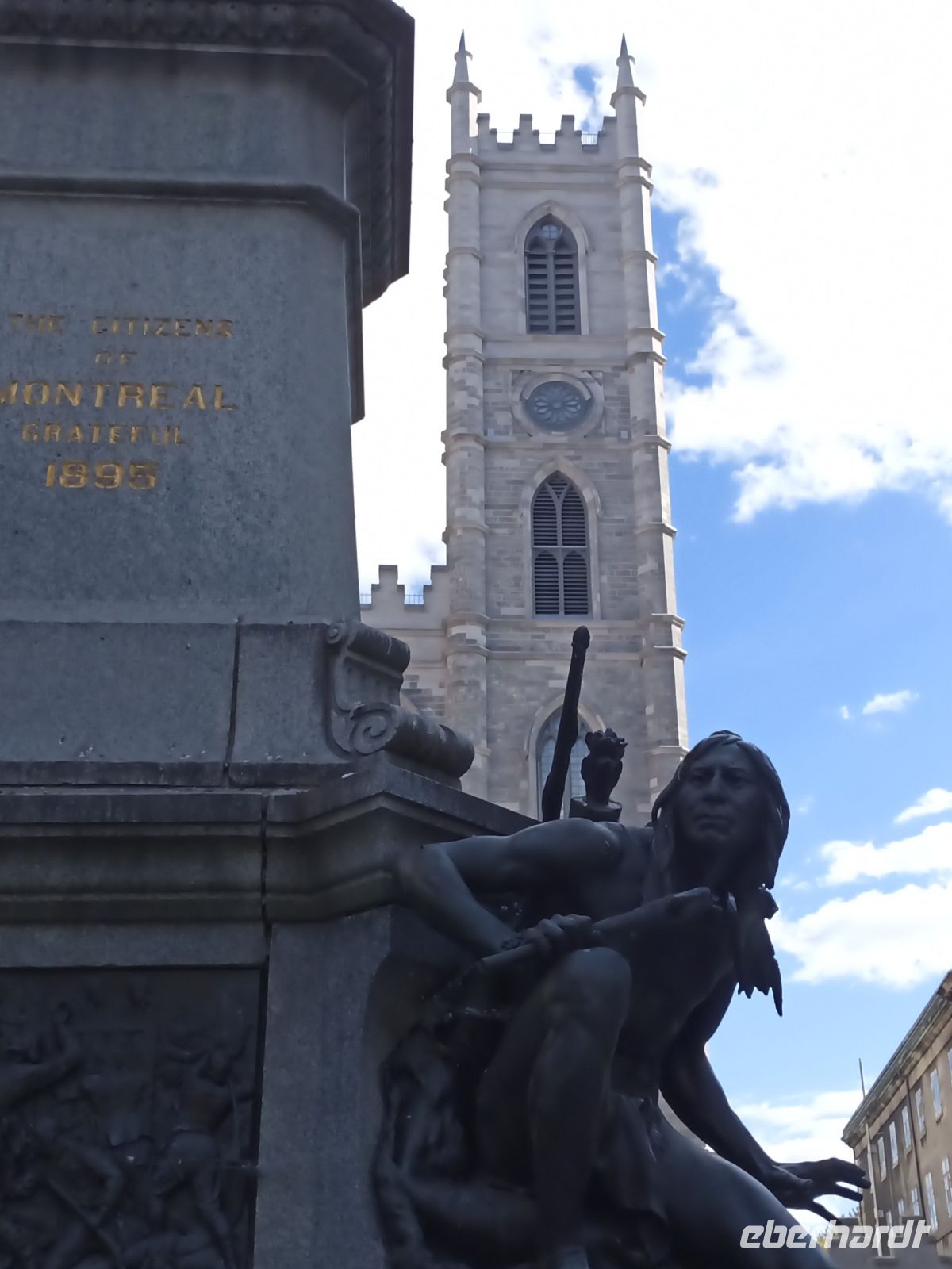 Ab hier erkunden wir die Stadt zu Fuß. Vor der Basilika Notre-Dame an dem „Monument to Paul de Chomedey, Sieur de Maisonneuve“ erzählt uns Louis noch einiges von der Geschichte und Entwicklung Montreals.