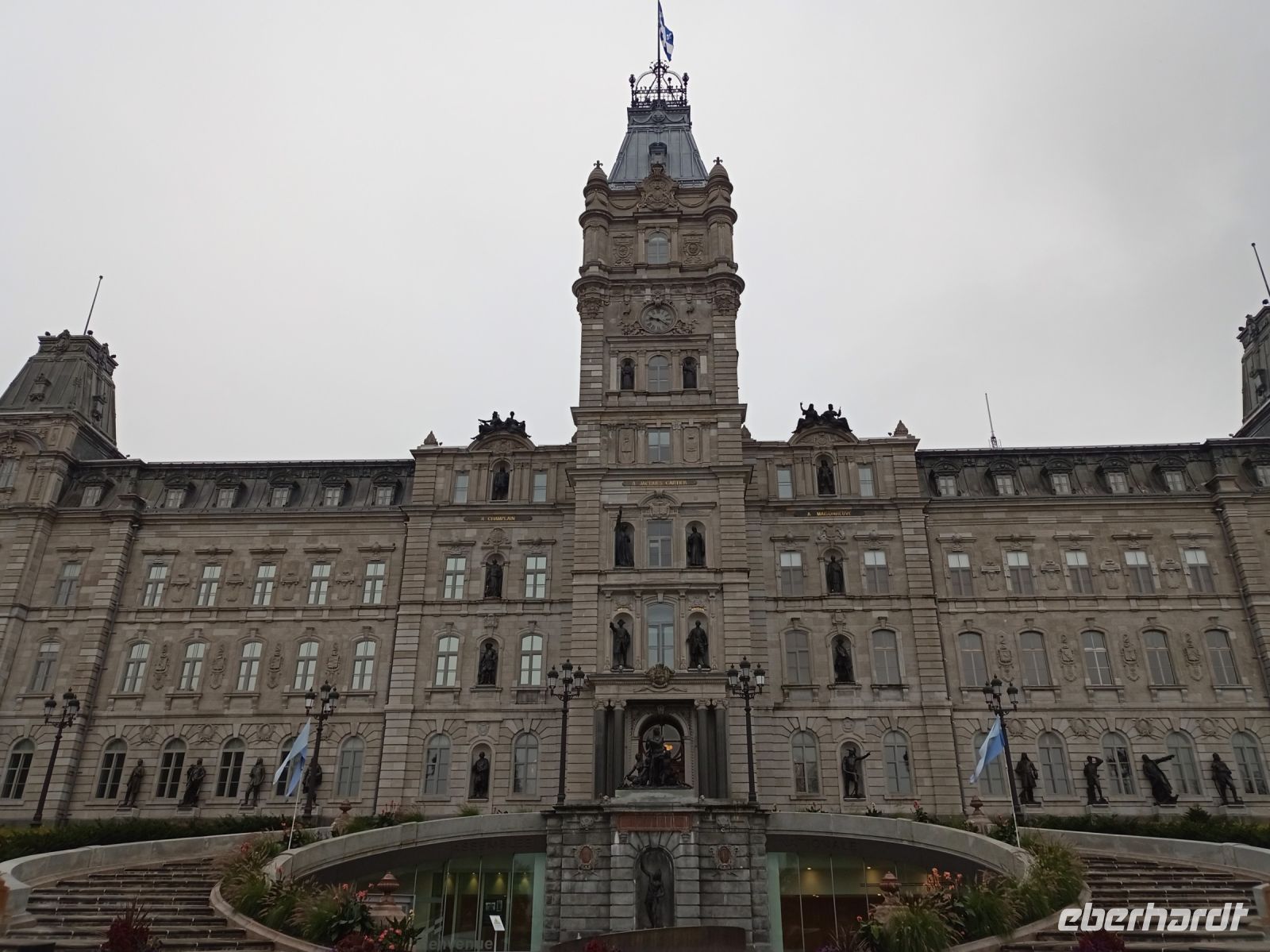 Unser Frühstück nehmen wir heute in dem benachbarten Hotel im Ginger Restaurant ein, da das Restaurant unseres Hotels gerade umgebaut wird. Nur ein paar Schritte und es empfängt uns ein sehr freundliches Servicepersonal und ein üppiges Büffet, das keine Wünsche offenlässt. So gestärkt bereiten wir uns darauf vor, die Hauptstadt der Quebec Provinz – Quebec zu erkunden. Auf dem Weg zum Parlament holen wir unsere Stadtführerin Nadja ab. Es war ganz schön kühl, doch Nadja schaffte es, uns mit ihrem Enthusiasmus für die Geschichte und Architektur des Parlamentsgebäudes zu begeistern. Sie erzählte uns von den faszinierenden Statuen, die die Fassade schmücken. Wir spazieren weiter durch den herbstlichen Park zu der Fontaine „Fontaine de Tourny“ - ein sehr schönes Fotomotiv, dass wir schon abends, farblich beleuchtet, gesehen haben. Diese stand ursprünglich in Bordeaux in Frankreich, wurde später von dem Eigentümer der Modehandelskette La Maison Simon erworben und der Stadt Quebec zu 400. Geburtstag geschenkt. Wir stehen vor der Stadtmauer und Nadja erklärte uns, dass Québec die einzige Stadt in Kanada ist, die noch von einer Stadtmauer umgeben ist. Diese Befestigung macht die Altstadt von Québec so einzigartig und gibt ihr einen besonderen historischen Charakter.