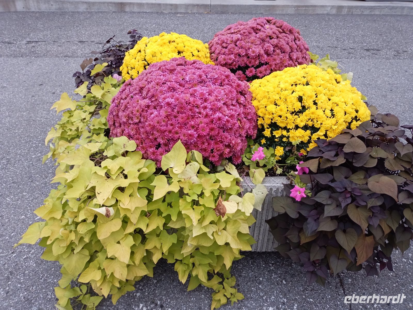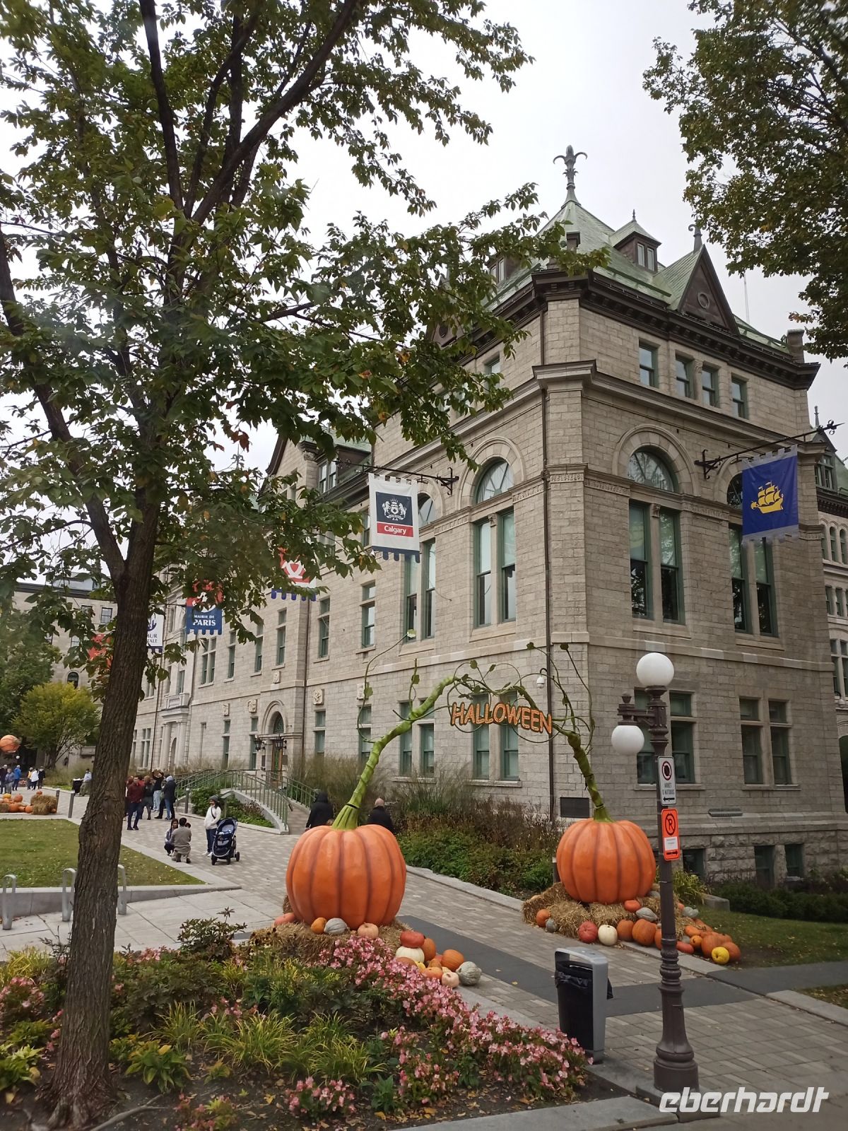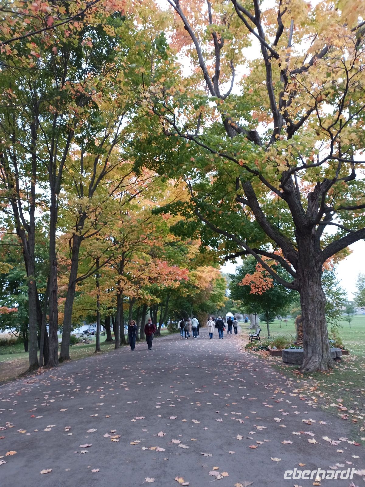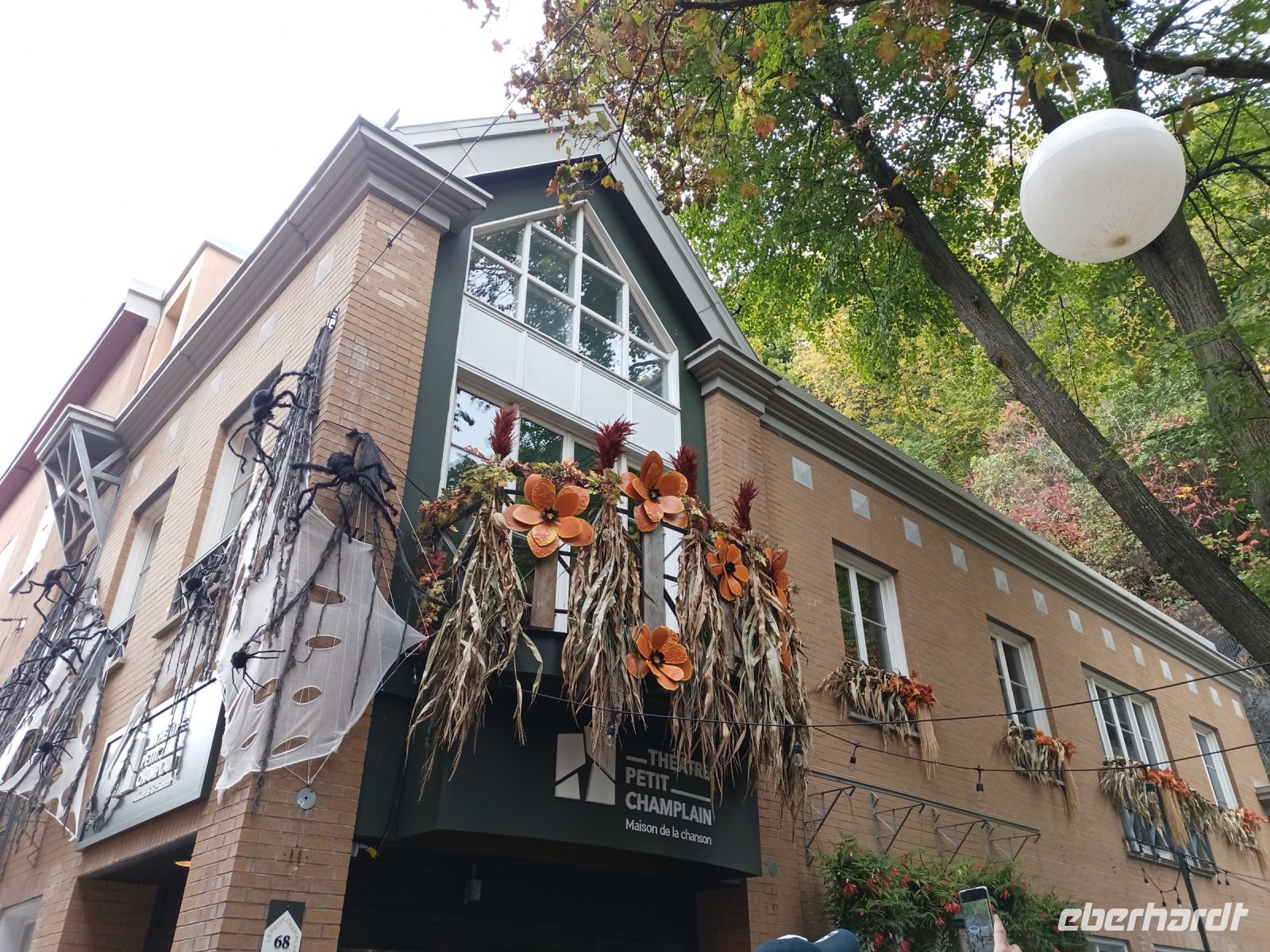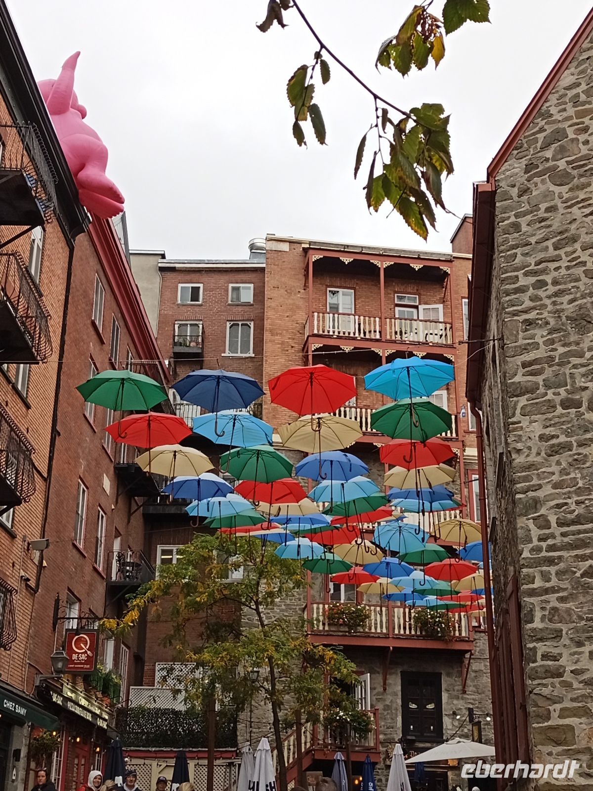 Zur Mittagszeit legten wir eine Pause ein und hatten anschließend etwas Zeit zur freien Verfügung. Einige von uns nutzten die Gelegenheit, den kleinen herbstlichen Markt zu besuchen, in den Boutiquen zu stöbern oder sich in einen der Cafés oder Restaurants etwas zu stärken. Einige haben die „Umbrella Alley“ entdeckt: Alle bewundern wir die in schöne bunte Blumendekoration in der ganzen Stadt. Wir kehren individuell über die Escalier Casse-Cou (sog.„Halsbrechertreppe“) zurück, die in der Vergangenheit durch das starke Gefälle, besonders im Winter etwas gefährlich war. Man kann aber auch über die „Funiculaire du Vieux-Québec“, die Seilbahn die Oberstadt – die Dufferin Terrassen erreichen.
