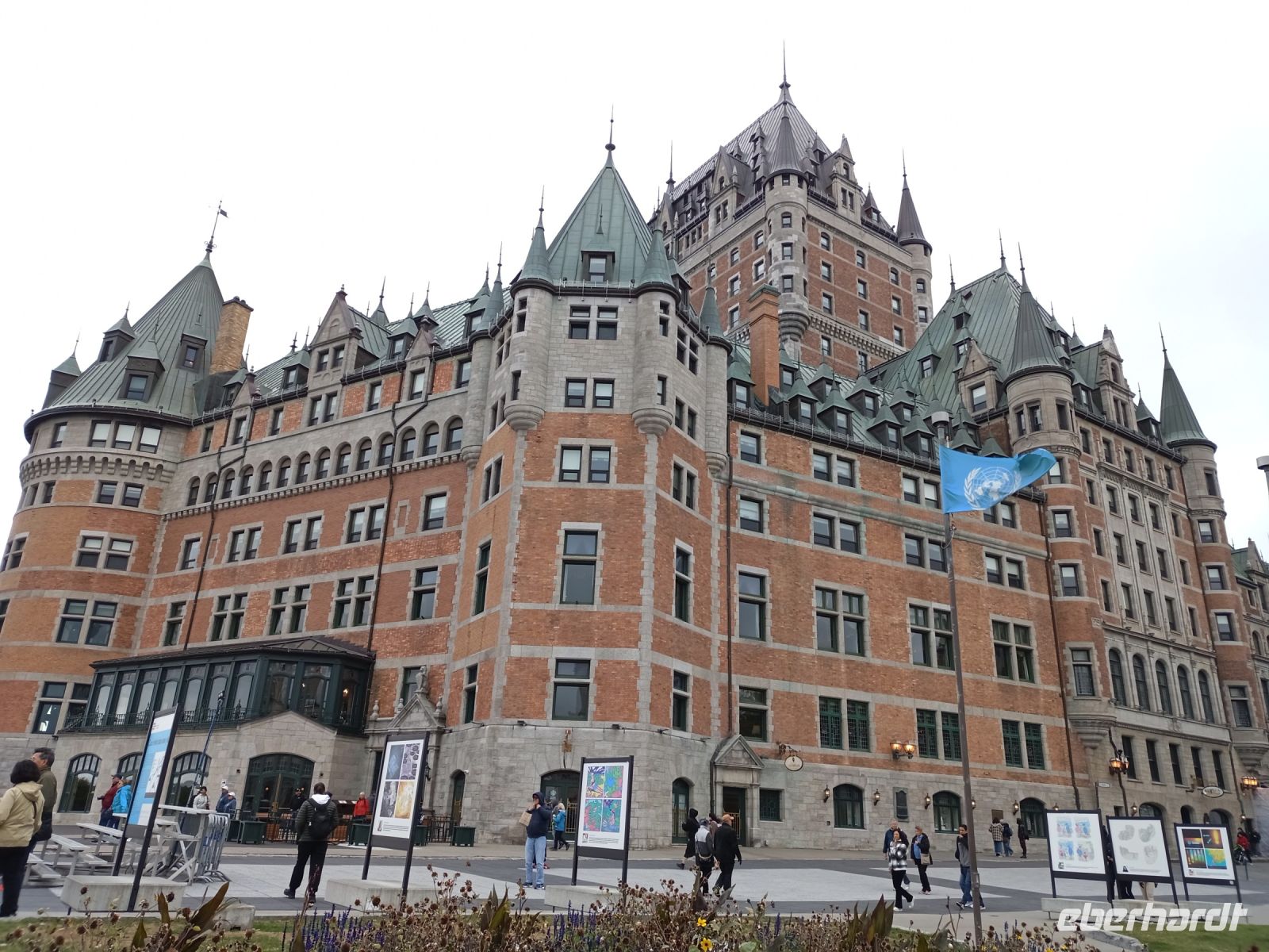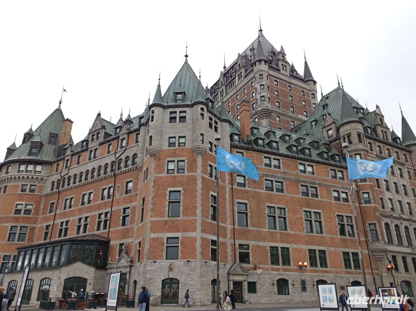 Hier treffen wir uns alle wieder – der Marathonlauf ist beendet und so können wir noch ungestört den Blick auf das Wahrzeichen der Stadt werfen, das wunderschöne schlossähnliche Fairmont Hotel Château Frontenac, das stolz über die Stadt thront.