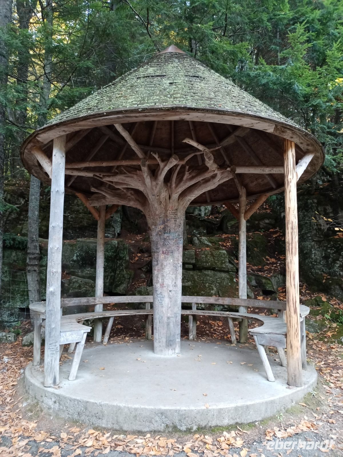 Von der Eingangsplattform der Basilika eröffnet sich ein eindrucksvolles Panorama der herbstlichen Farben des Mischwaldes – ein Indian Summer – wie aus dem Bilderbuch – das mussten wir mit den Teilnehmern der Gruppe verewigen.