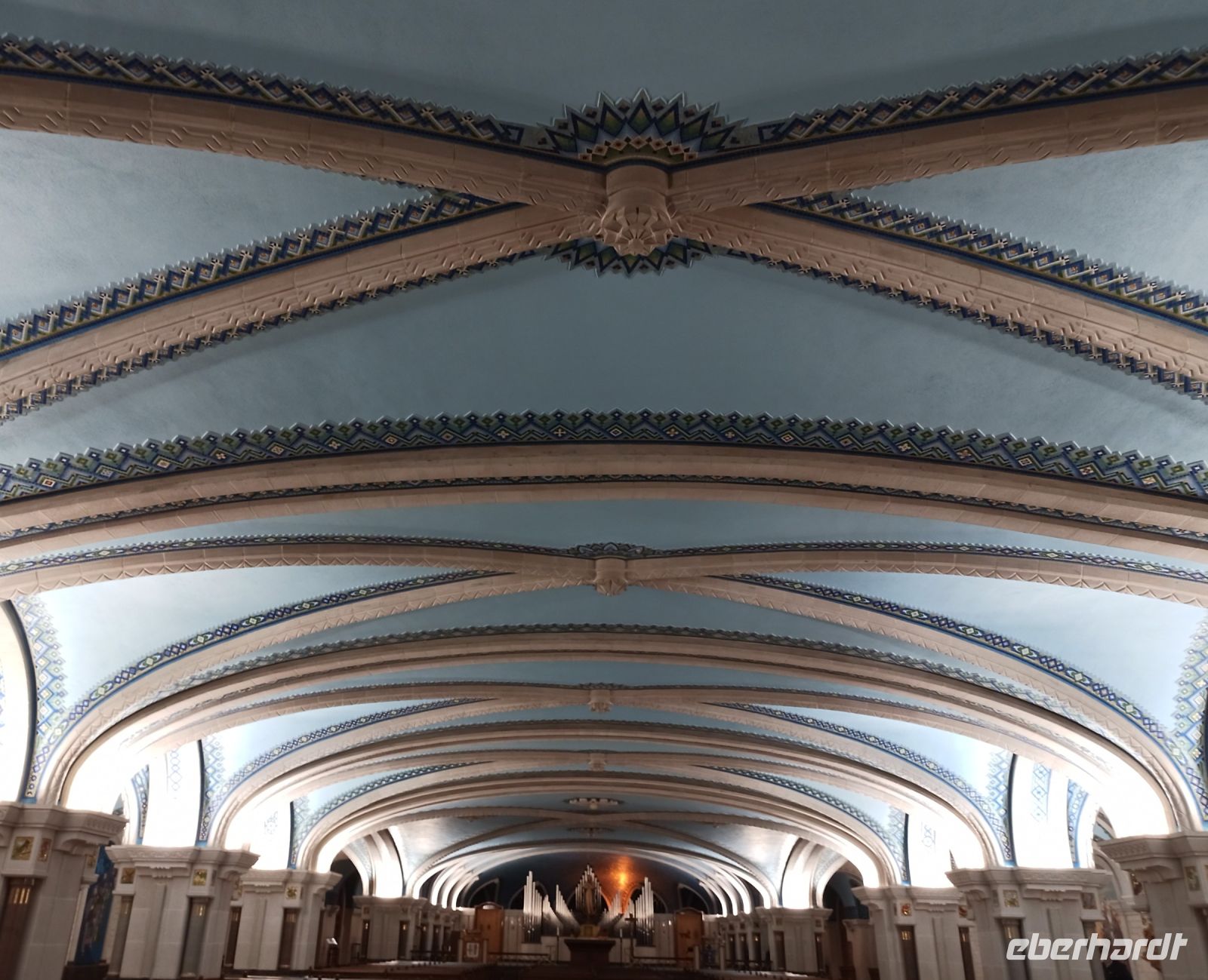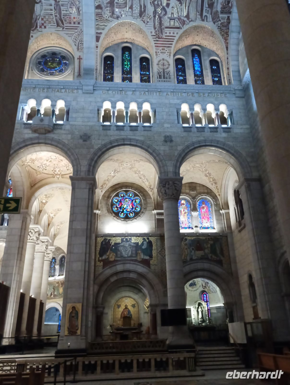 Wir legten auf dem Rückweg noch einen Halt an der Basilika Sainte-Anne-de-Beaupré ein. Die Basilika wurde als eine Kapelle im 17. Jahrhundert erbaut und im Laufe der Jahre mehrmals umgebaut und erweitert. Die Kirche wurde der heiligen Anna geweiht. Die Gläubigen glauben an die Heilkräfte, die mit der Heiligen Anna in Verbindung gebracht wurden. Es ist eine besondere Basilika, da sich im Untergeschoss die zweite, untere Kirche befindet. Der Stil ist eher schlicht und gedämpft, was die Atmosphäre der Stille und Einkehr unterstreicht. Eines der markantesten Merkmale der Krypta sind die kunstvollen Mosaiken und Skulpturen, die Szenen aus dem Leben der heiligen Anna.