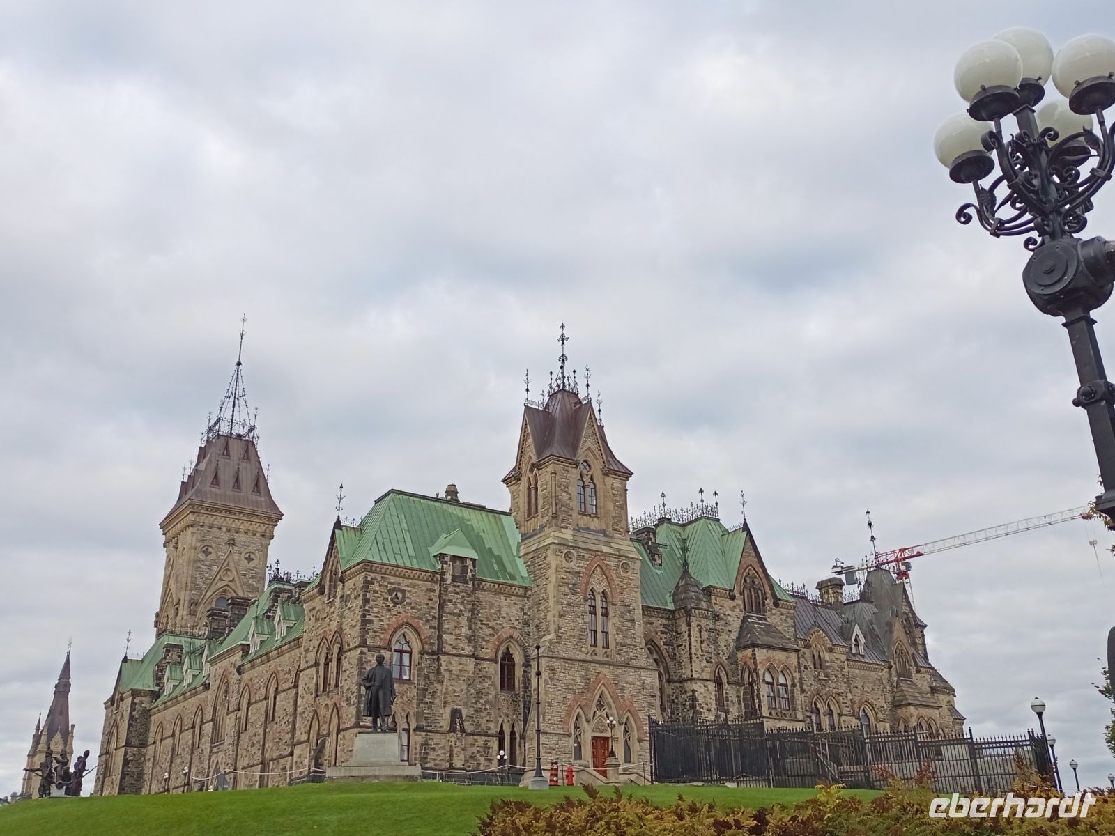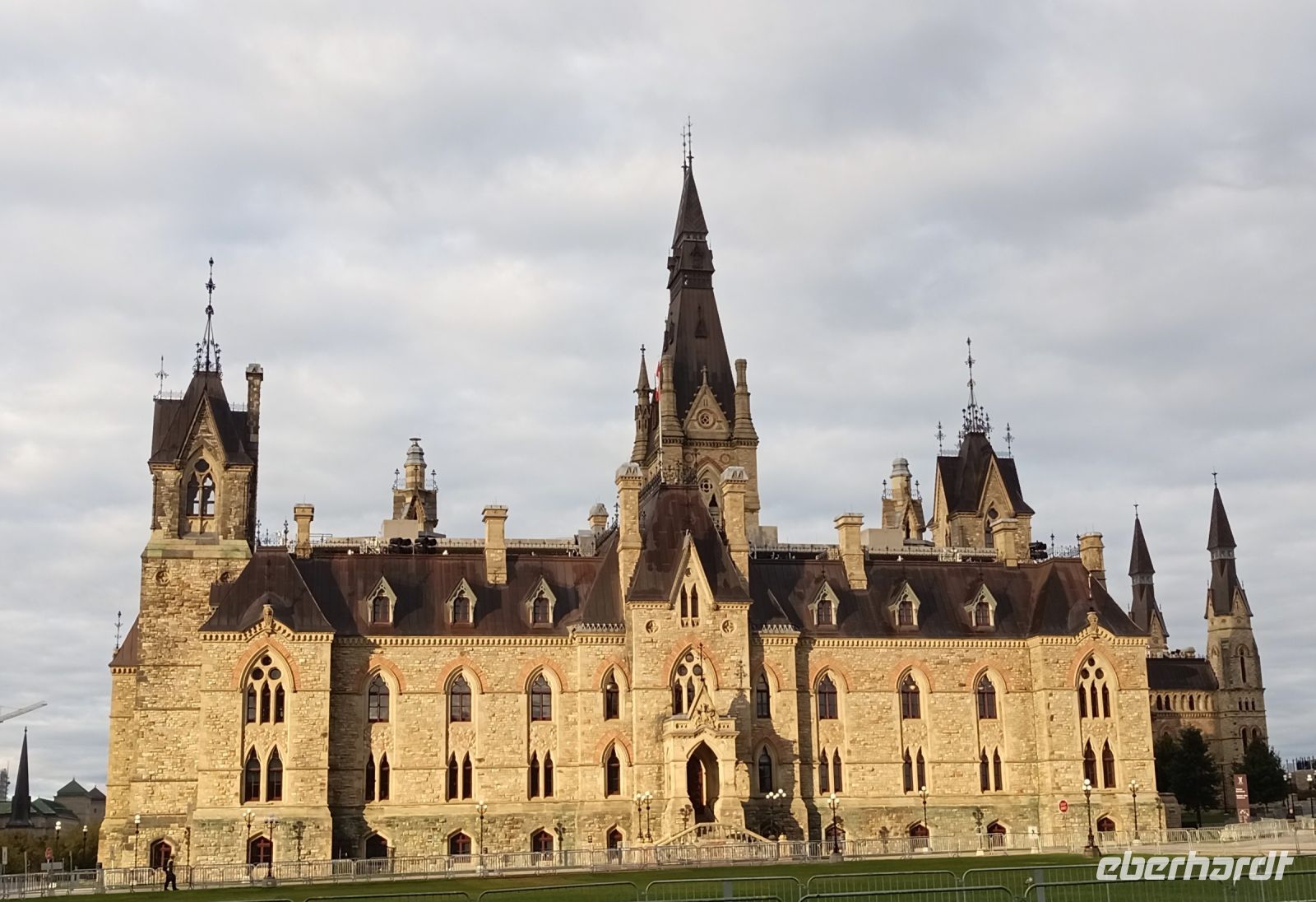 Wir laufen zum nahegelegenen Rideau Kanal - der Rideau-Kanal ist ein historischer Wasserweg, der sich über 202 Kilometer von Ottawa nach Kingston in Ontario erstreckt. Der Rideau-Kanal ist besonders bekannt für seine beeindruckenden Schleusenanlagen, die größtenteils noch im Originalzustand erhalten sind und von Hand bedient werden. Der Rideau-Kanal wurde 2007 zum UNESCO-Weltkulturerbe erklärt und ist ein lebendiges Zeugnis der Geschichte und Ingenieurskunst Kanadas. Am Ufer des Rideau Kanal steht auch das bekannte Château Laurier Hotel, das 1912 in Château Stil gebaut wurde und den Namen des damaligen kanadischen Premier Wilfrid Laurier trägt. Heute gehört das Hotel, so wie auch Frontenac in Quebec, zu den Fairmont Hotels und Resorts.