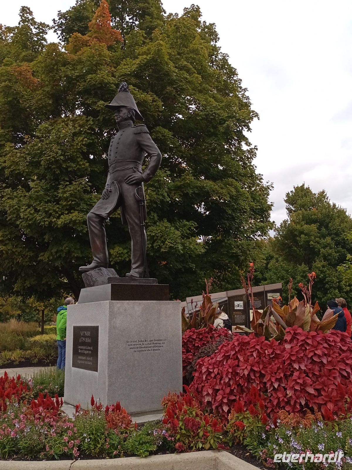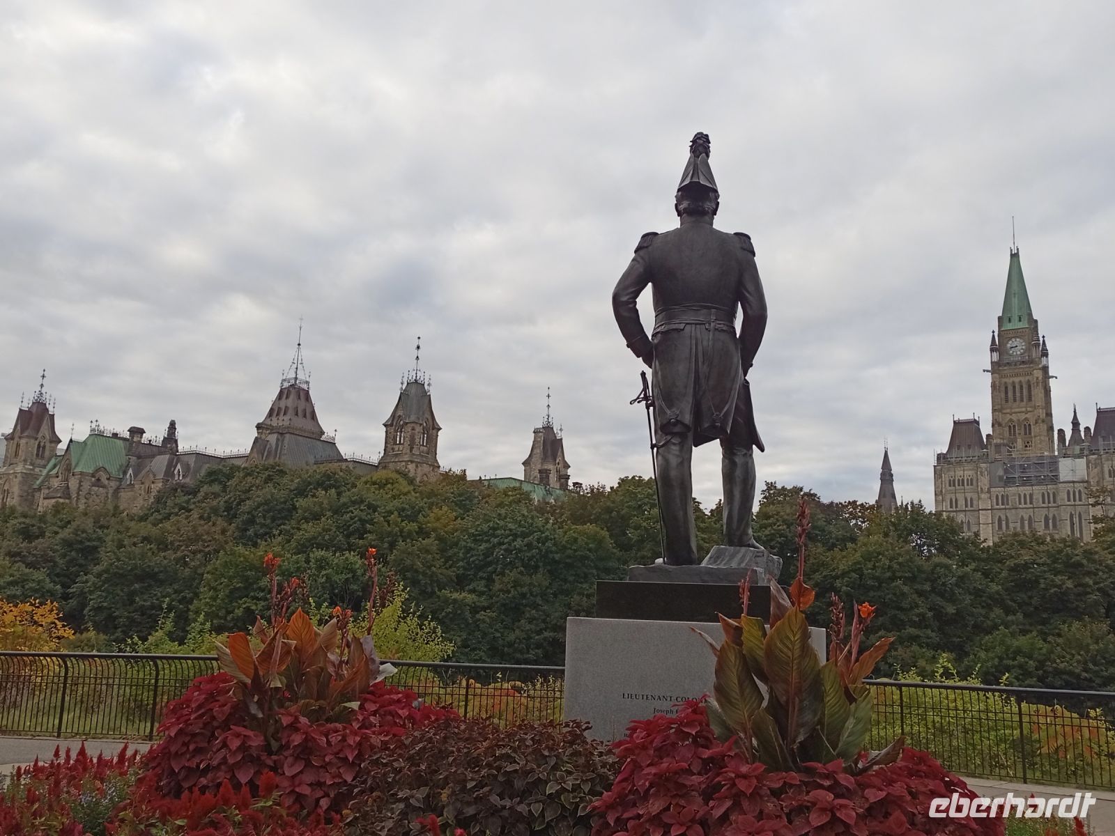Entlang des Rideau Kanals erreichen wir einen sehr schönen Park - Major's Hill Park und bleiben an der Statue des Colonel John By Statue stehen. Colonel John By (1779–1836) war ein britischer Ingenieur und Offizier, der vor allem für den Bau des Rideau-Kanals in Kanada bekannt ist. Seine Arbeit hat entscheidend zur Entwicklung der Stadt Ottawa und zur Sicherung eines strategischen Wasserwegs zwischen Ottawa und dem Ontariosee beigetragen.