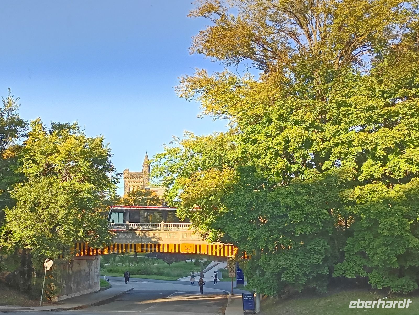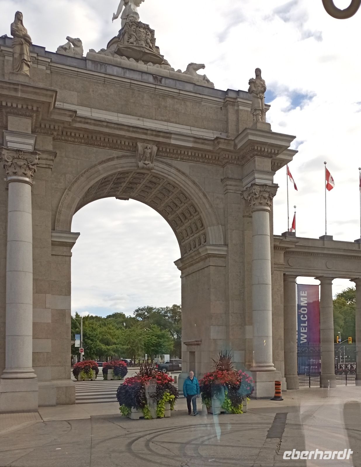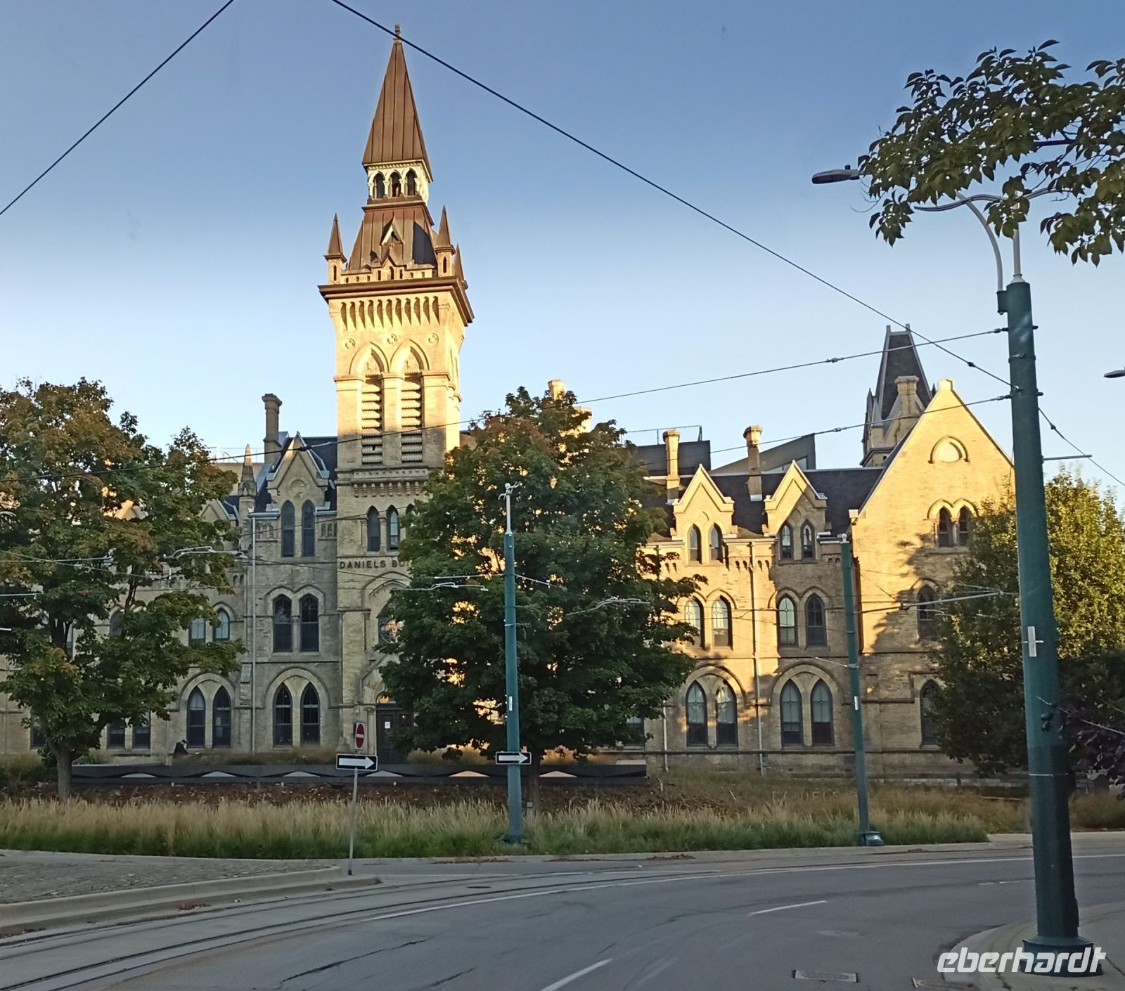 Wir machen uns mit dem Bus auf den Weg, da die Stadt recht weitläufig ist. Marion zeigt uns vom Bus einige interessante Stadteile und interessante Gebäude. Wir starten Richtung Bankenviertel, am alten und neuen Rathaus vorbei, dann fahren wir Richtung Universitäten Viertel. Toronto ist auch ein wichtiges Zentrum für Bildung und Entwicklung und beherbergt mehrere renommierte Universitäten. Die größte und bekannteste ist die Universität of Toronto und gehört zu den führenden Universitäten Kanadas und weltweit. Alleine diese Universität zählt etwa 64.000 Studierende.