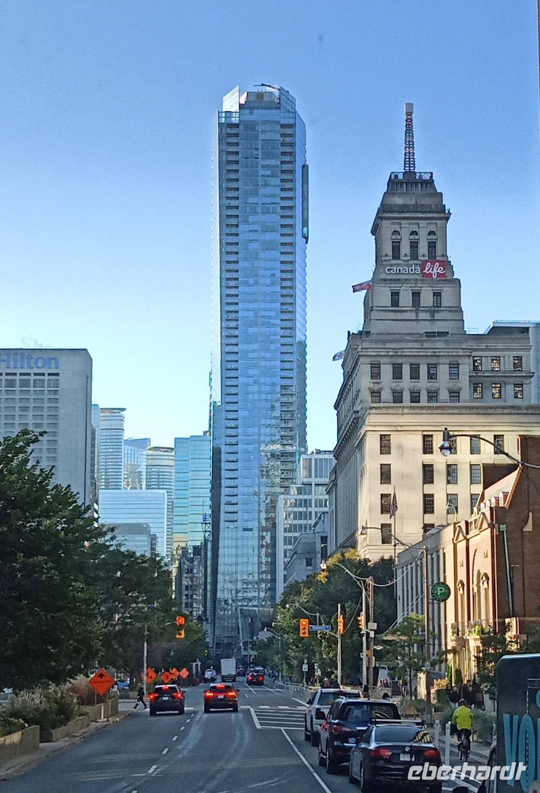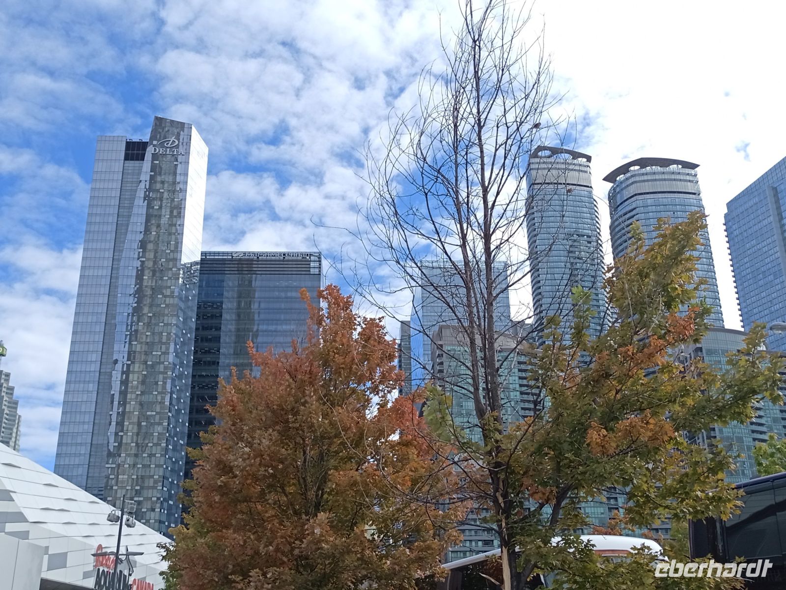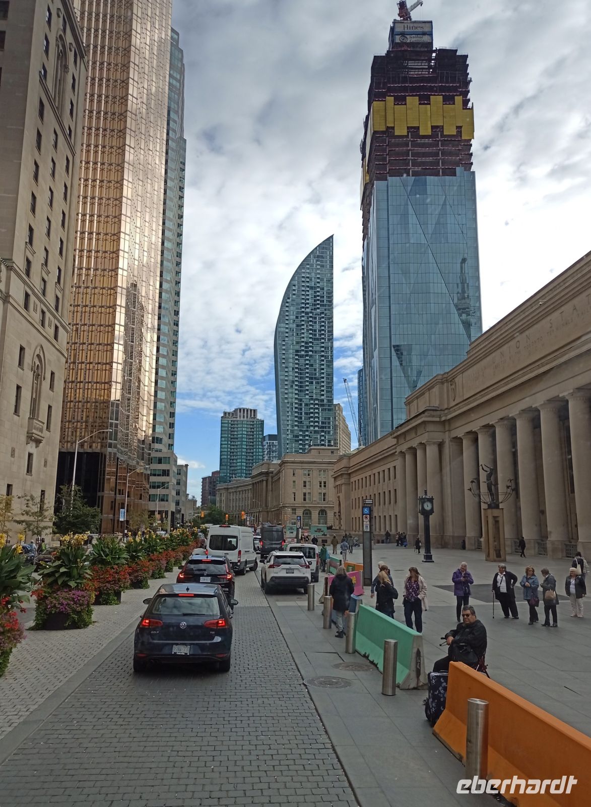 Toronto, die größte Stadt Kanadas und Hauptstadt der Provinz Ontario, liegt am Ufer des Ontariosees und ist das wirtschaftliche, kulturelle und finanzielle Zentrum des Landes. Mit über 2,9 Millionen Einwohnern ist Toronto die bevölkerungsreichste Stadt Kanadas und bekannt für ihre multikulturelle Gesellschaft und lebendige Kunst- und Kulturszene. Toronto ist eine der multikulturellsten Städte der Welt. Rund die Hälfte der Bevölkerung ist außerhalb Kanadas geboren, was die Stadt zu einem Schmelztiegel verschiedener Kulturen macht. Toronto ist ebenfalls einer der wichtigsten Wirtschaftsstandorte in Kanada und ein bedeutendes Finanzzentrum in Nordamerika, aber auch wichtiges Zentrum für Technologieunternehmen, die Filmproduktion und den Tourismus. Wir haben gestern schon die Skylines von bekannten Consulting Unternehmen, Banken und anderen namhaften Firmen gesehen.