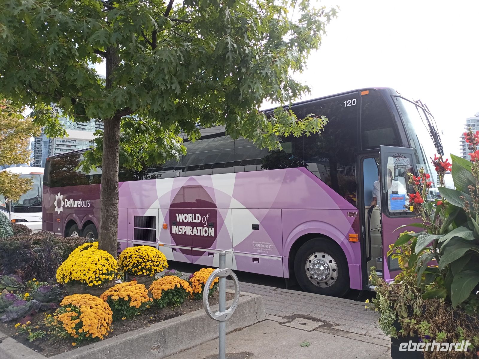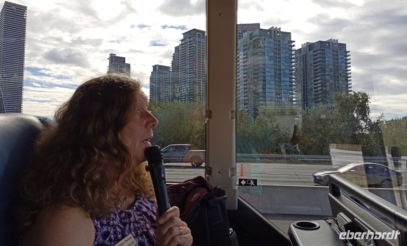 Unsere Gäste sind heute, wie auch die ganze Zeit bisher, immer pünktlich. Fred mit seinem Bus wartet auf uns und Marion nimmt das Mikrophon in die Hand und erzählt uns etwas mehr über Toronto.