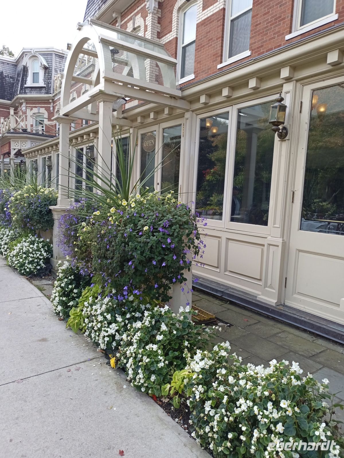 Wir erkunden noch die Fußgängerzone. Rechts und links der Kopfstein gepflasterten Sträßchen, finden man historische Gebäude, individuelle Boutiquen, gemütliche Cafés und Restaurants, geschmackvoll mit Blumen dekoriert. Viele Geschäfte bieten Produkte aus der Region an, wie Ahornsirup, lokale Weine und Kunst von indigenen Künstlern. Einige Gäste folgen der Empfehlung von Marion und verkosten die frischen und leckeren Fish and Chips und sind von den großzügigen Portionen und der exzellenten Qualität begeistert.