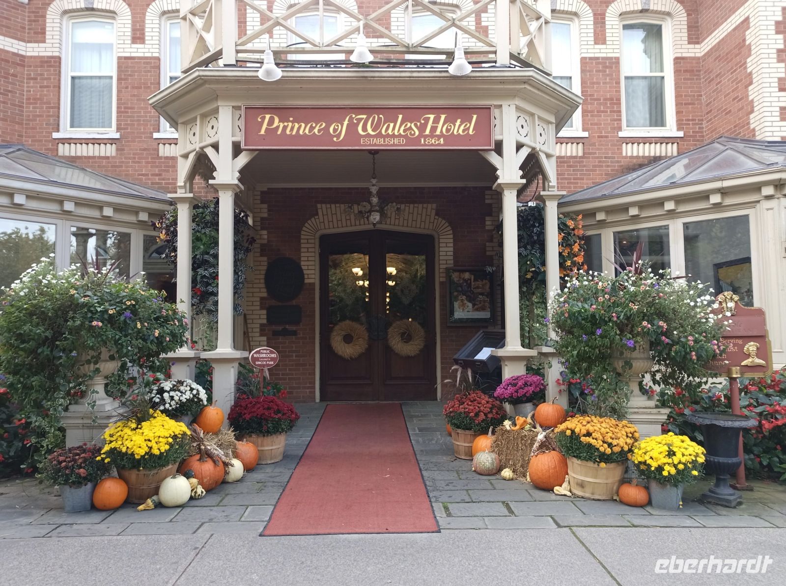 Dann konnten die Gäste die das gemütliche Städtchen selbst erkunden, in den kleinen Boutiquen stöbern oder noch ein Mittagsnack einnehmen. Das charmante Städtchen hat uns ganz besonders mit der Blumendekoration in der ganzen Stadt verzaubert, sowie mit schönen Gebäuden, die von der britischen Kolonialzeit und der viktorianischen Ära geprägt und sehr gut erhalten sind. Niagara on the Lake spielte eine wichtige Rolle in der Geschichte Kanadas, besonders während des Krieges von 1812 zwischen den Vereinigten Staaten und Großbritannien. Die Region um Niagara on the Lake ist auch ein bedeutendes Weinanbaugebiet, besonders berühmt für den Eiswein.
