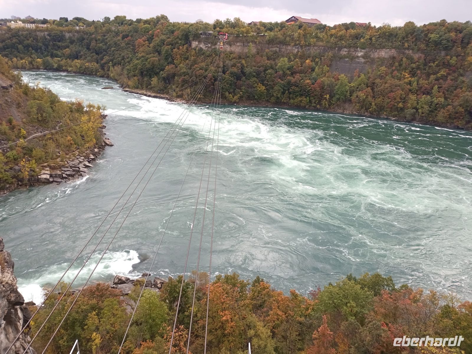 Zuvor machen wir noch einen Stopp an sog. „Whirlpool“ - Der Whirlpool ist eine riesige, kreisförmige Wasserströmung, die durch die starke Strömung des Niagara Flusses geformt wird. Eine Seilbahn - Whirlpool Aero Car, die über den Whirlpool fährt, bietet eine spektakuläre Aussicht.