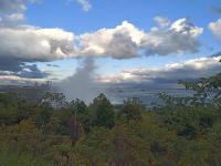 An erster Stelle steht der Schutz der natürlichen Umwelt und Bewahrung der einzigartigen Landschaften, Ökosysteme und Tierarten vor menschlichen Eingriffen. Doch auch etwas regulierter Tourismus spielt eine große Rolle. Neben den positiven Seiten gibt es auch einige negative – z.B. kein Eingriff bei Waldbränden ist erlaubt – es wird der Natur überlassen, sie soll sich wieder von alleine erholen… Und die Touristen, die den Park besuchen wollen, werden zu Kasse gebeten… man kann darüber diskutieren… Wir fahren gerade an einem Hang, wo die ganzen Wälder von Feuer zerstört wurden – es dauert sicher Jahre, bis die neuen Pflanzen und Bäume wieder den Berg bewachsen.