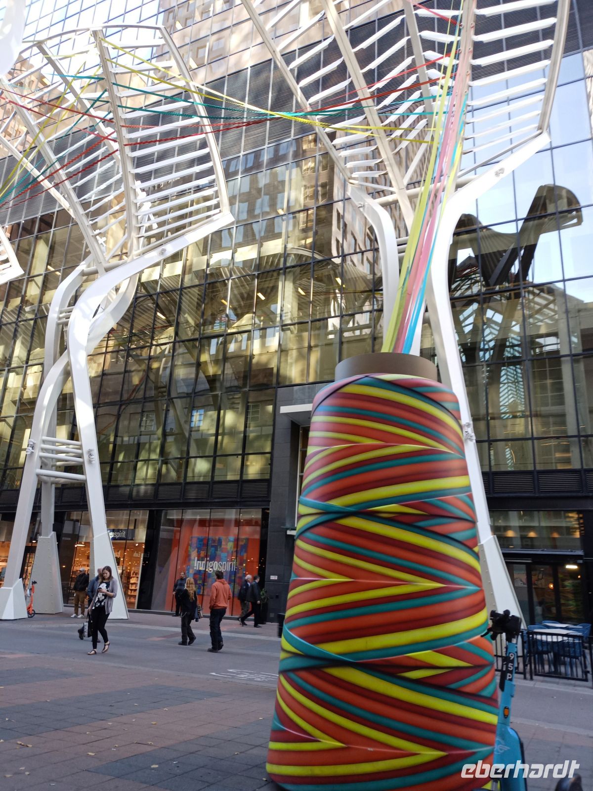 Wir steigen von Bus aus und erkunden die Stadt zu Fuß und fahren auch ein Stück mit einer historischen Straßenbahn. Im Herzen der Stadt liegt der Olympia Square, der an die Winterspiele von 1988 erinnert. Gleich daneben das Rathaus, eine harmonische Mischung aus alter und neuer Architektur. Zur Mittagszeit machen wir eine Pause im Einkaufszentrum The Galleria Trees. Große baumähnliche Kunstwerke und bunte Wollknollen bilden den Eingang in das Einkaufszentrum.