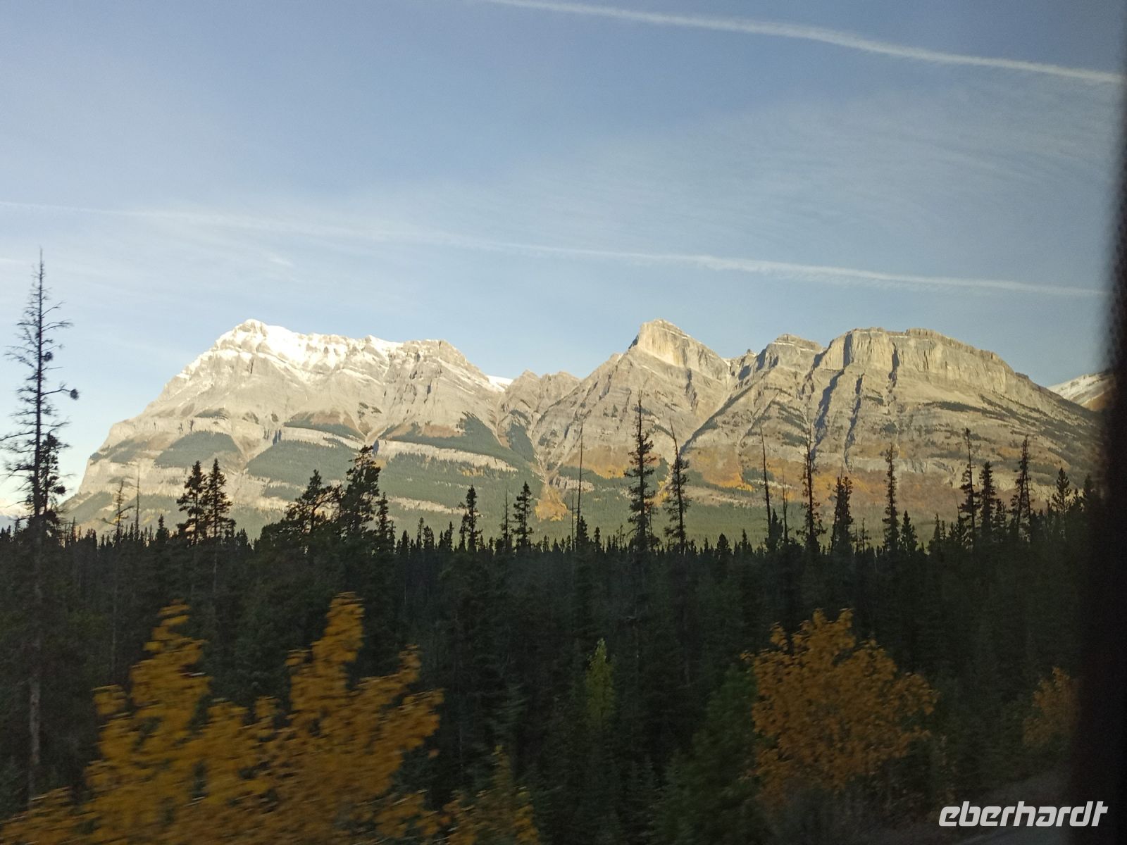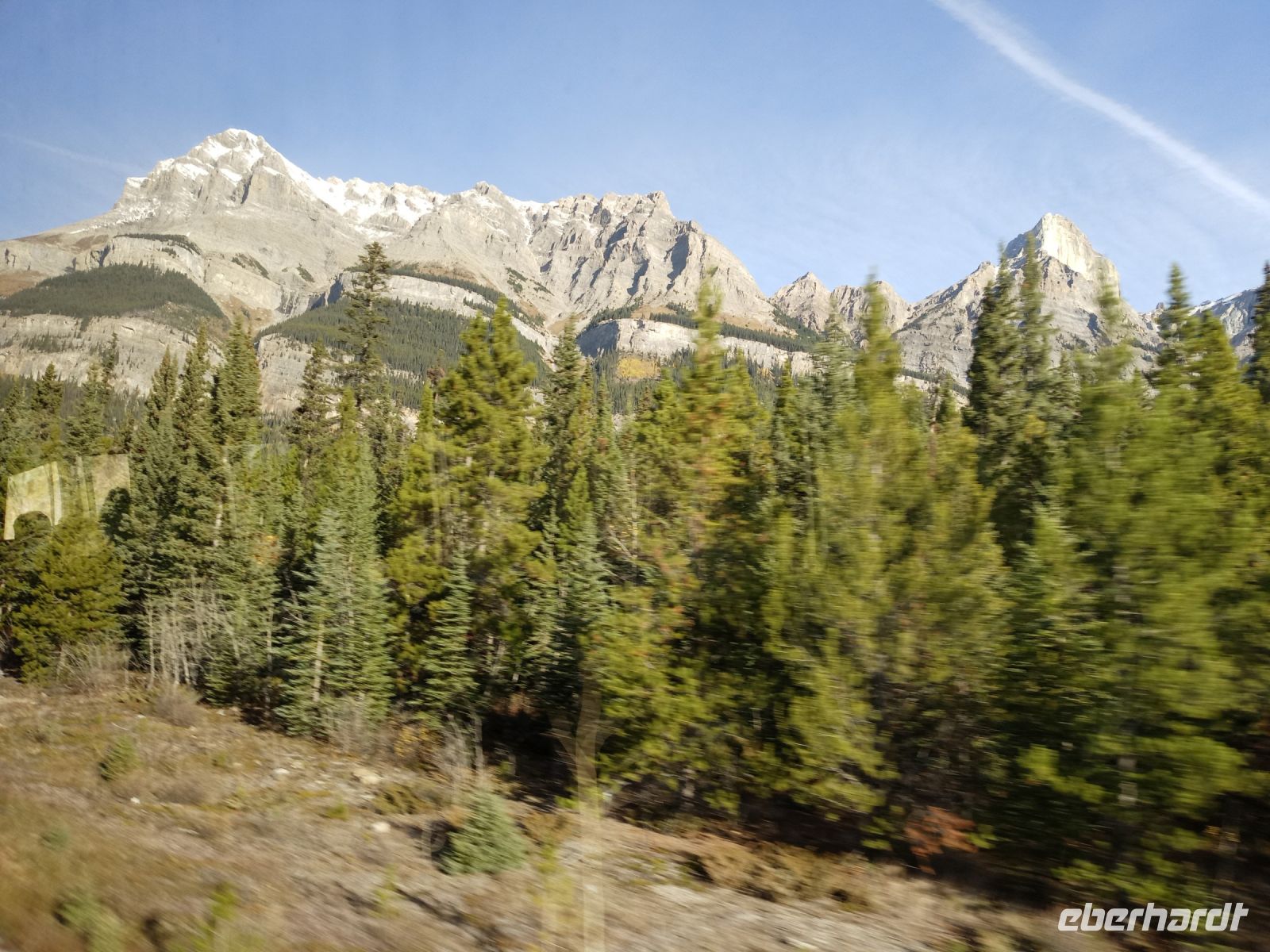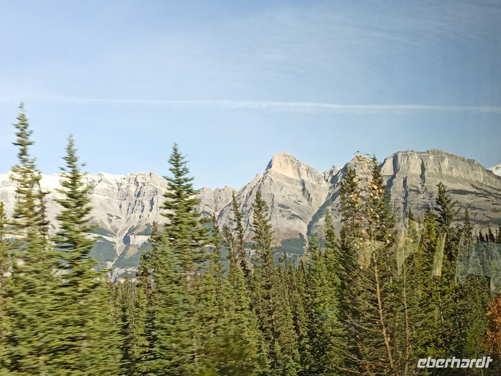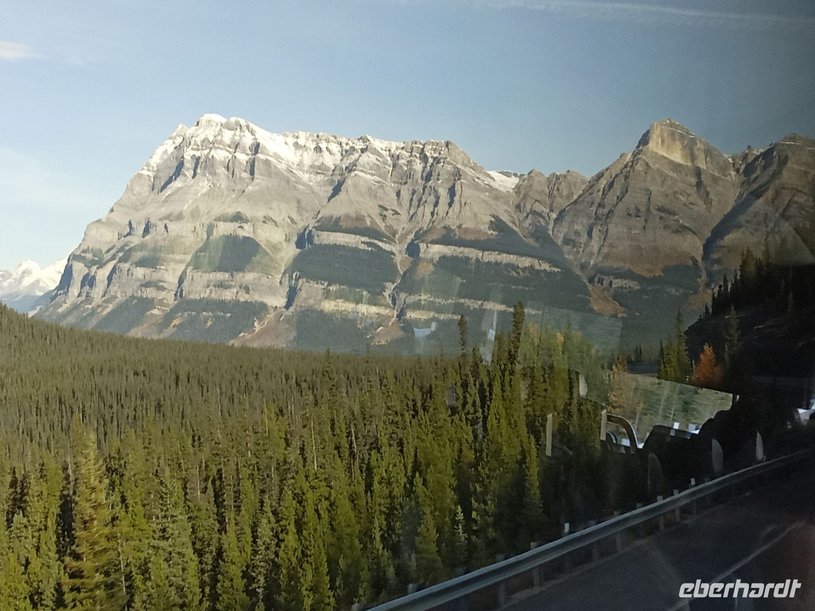 Der Busfahrer wartet vor dem Hotel auf uns – also einsteigen und los geht’s. Marion informiert uns über den Tagesplan. Wir starten im Tal Richtung Norden, entlang des Bow Riwers in den Banff Nationalpark. Rechts und links des Trans-Canada Highways eröffnen sich wunderbare Ausblicke auf die einzelne Berge und Massive der Rocky Mountains.