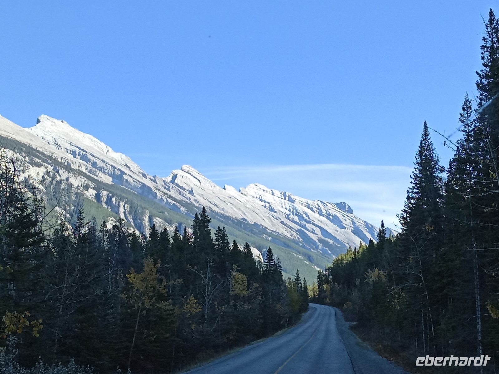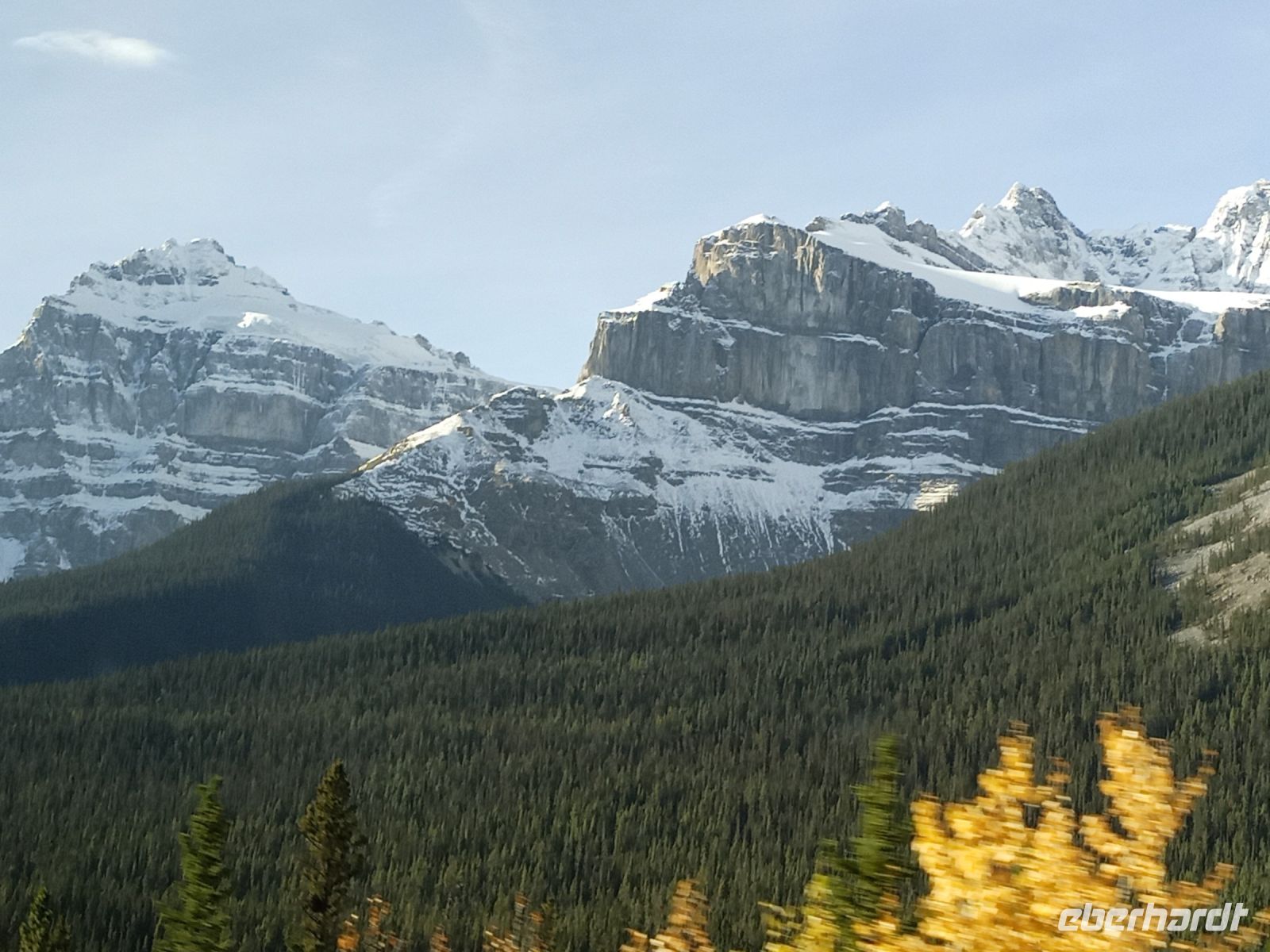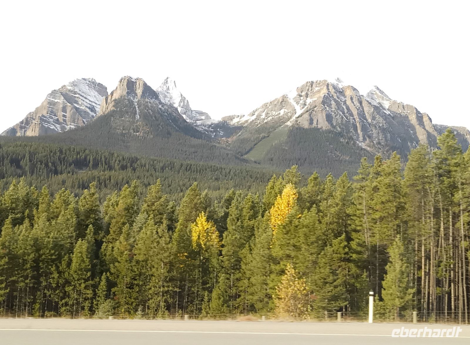 Der Busfahrer wartet vor dem Hotel auf uns – also einsteigen und los geht’s. Marion informiert uns über den Tagesplan. Wir starten im Tal Richtung Norden, entlang des Bow Riwers in den Banff Nationalpark. Rechts und links des Trans-Canada Highways eröffnen sich wunderbare Ausblicke auf die einzelne Berge und Massive der Rocky Mountains.