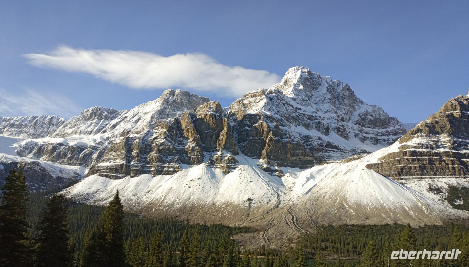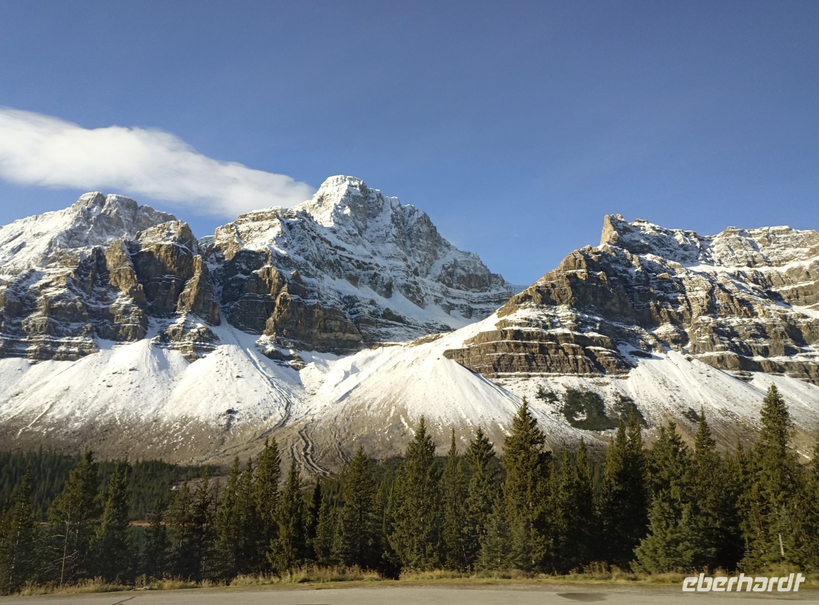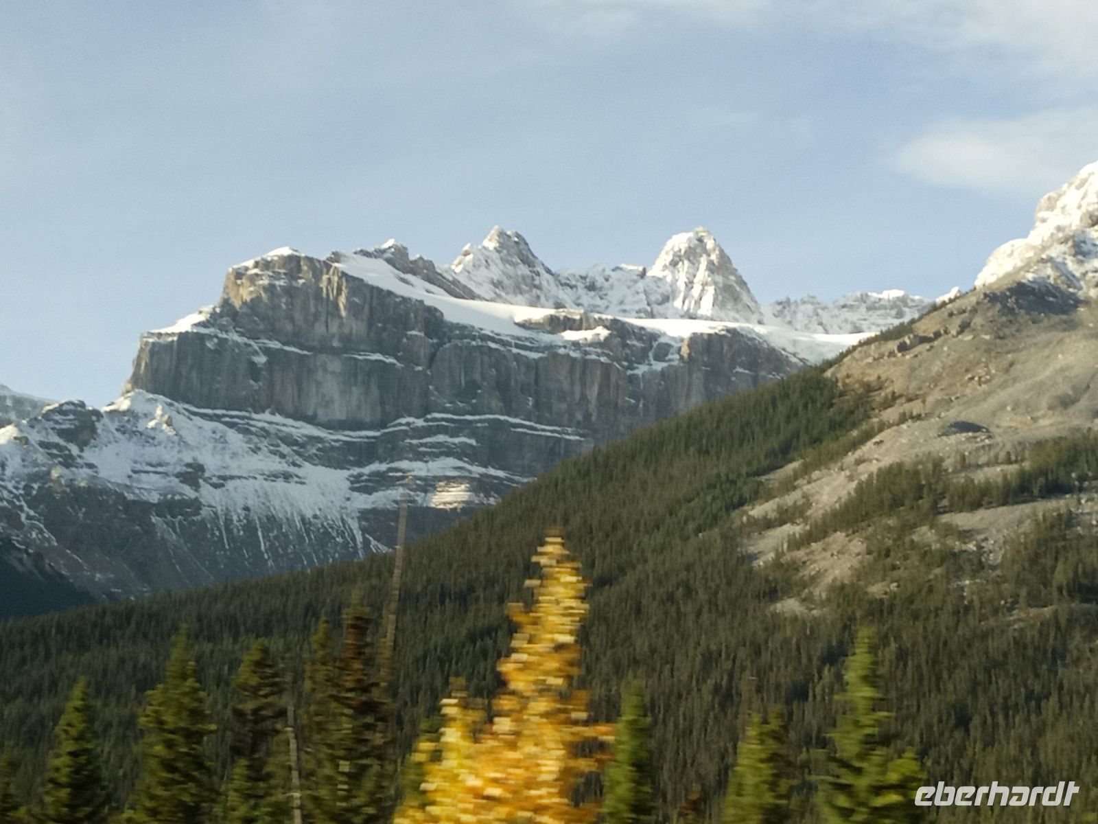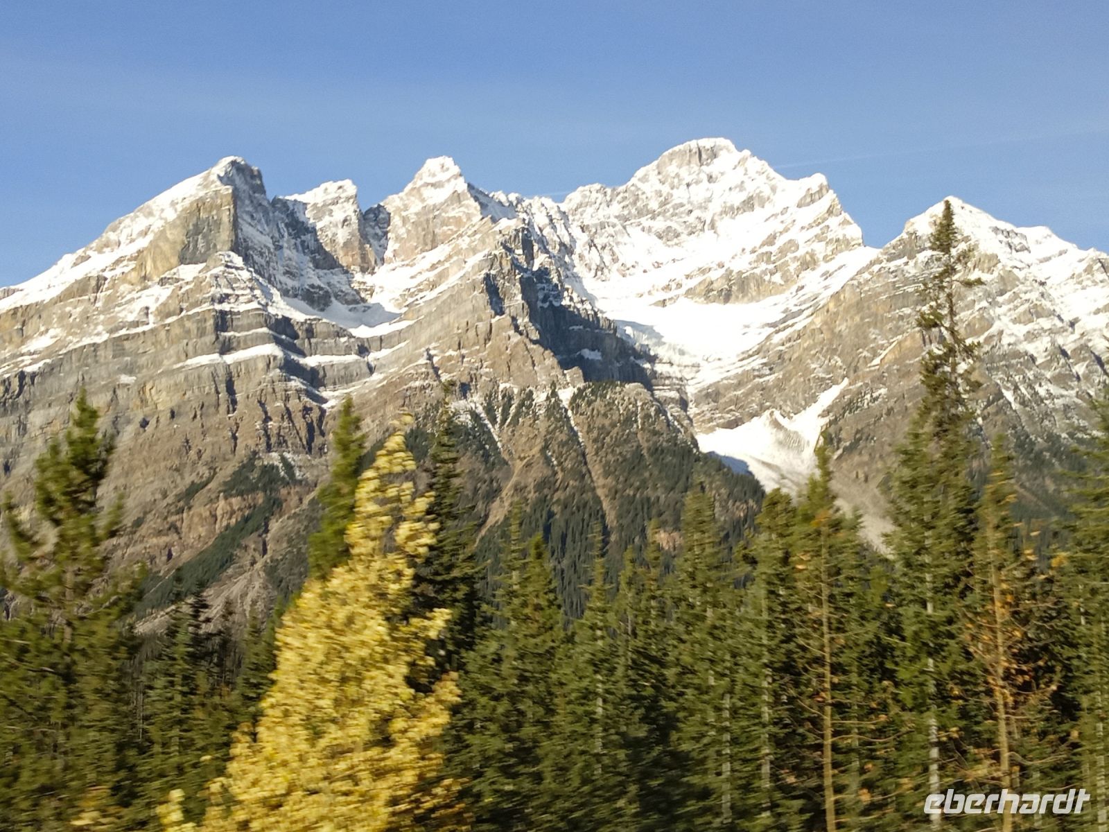 Der Busfahrer wartet vor dem Hotel auf uns – also einsteigen und los geht’s. Marion informiert uns über den Tagesplan. Wir starten im Tal Richtung Norden, entlang des Bow Riwers in den Banff Nationalpark. Rechts und links des Trans-Canada Highways eröffnen sich wunderbare Ausblicke auf die einzelne Berge und Massive der Rocky Mountains.