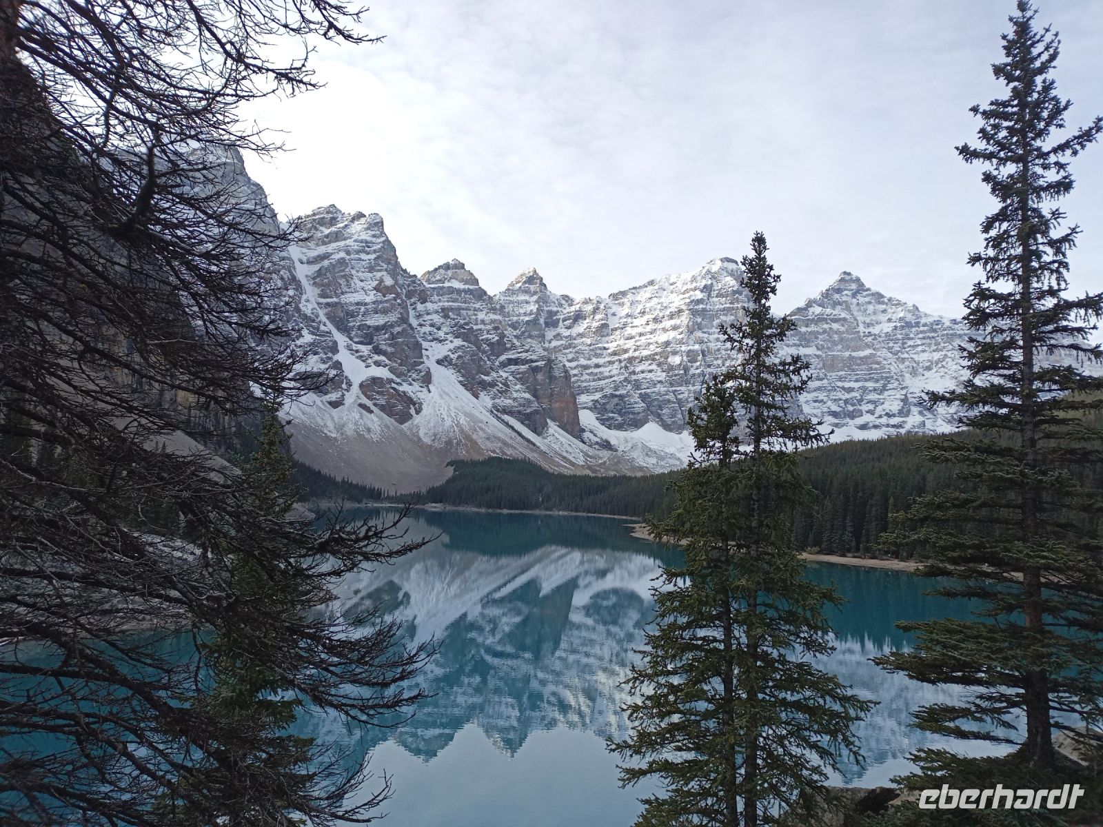 Immer wieder vor uns der Mount Temple, der höchste Berg der Umgebung mit 3.544 Metern, der sich aus verschiedenen Perspektiven zeigt. Nach ca. 1 Stunde Fahrt durch diese herrliche Berglandschaft erreichten wir den Lake Moraine, der 1844 Meter über dem Meeresspiegel liegt.
