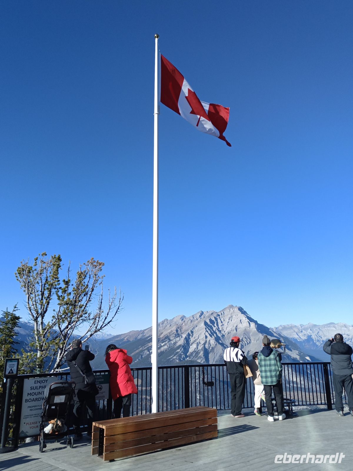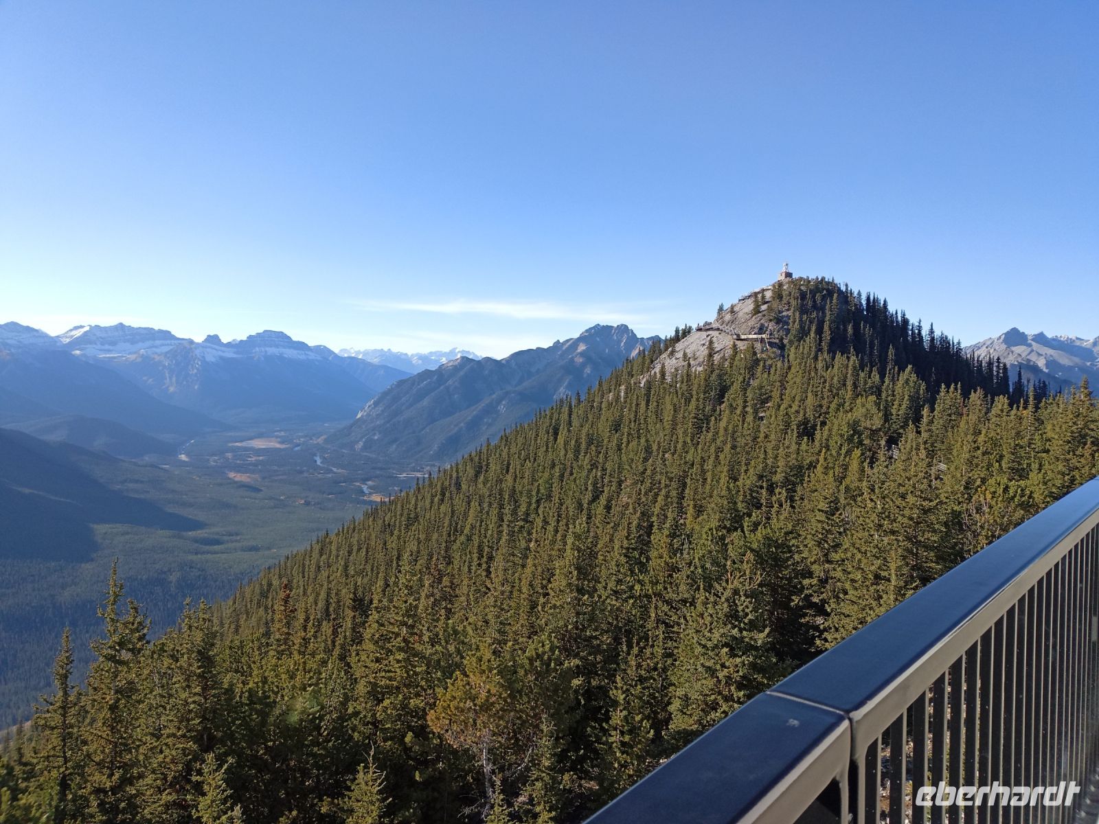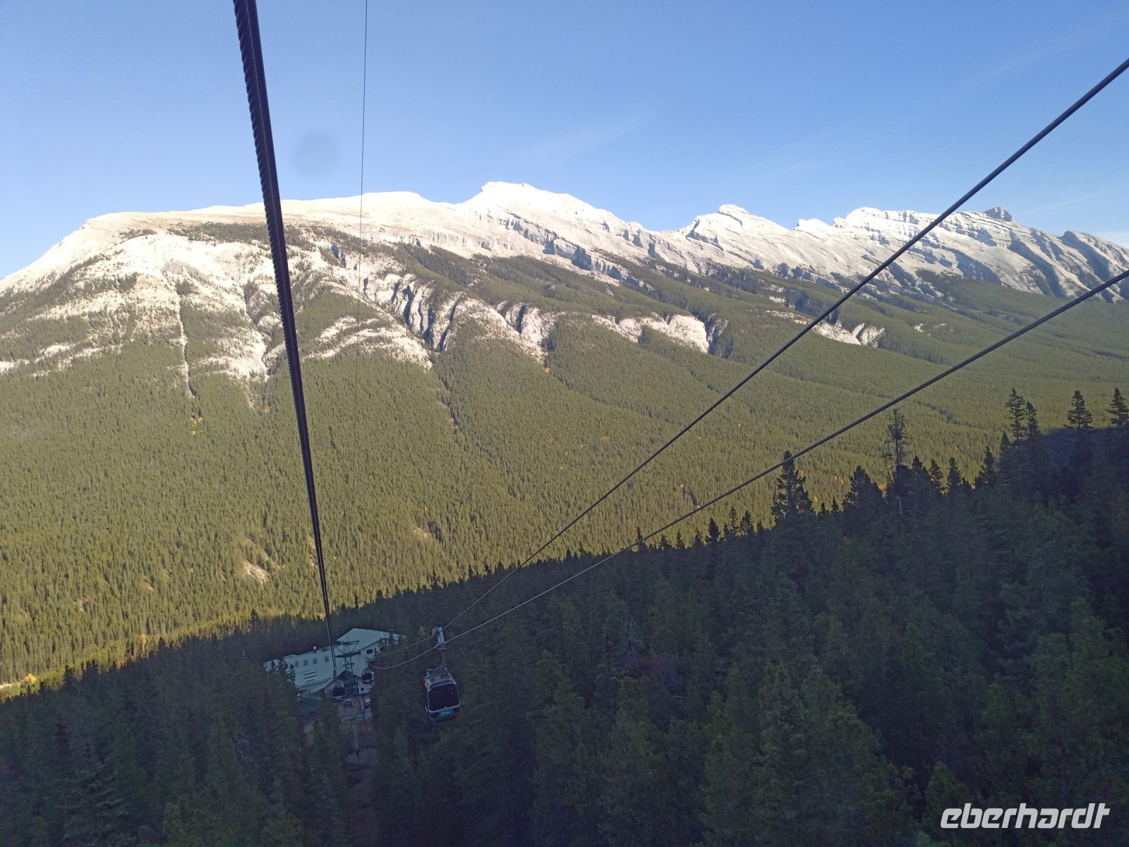 Nach unserem Stadtspaziergang und der Mittagspause ging es weiter zu neuen Highlights rund um Banff. Wir fahren am Nachmittag an dem legendären Fairmont Banff Springs Hotel vorbei, auch als das „Schloss in den Rockies“ bekannt und machen einen Stopp am Bow Falls, einem breiten Wasserfall des Bow Rivers. Jetzt aber hoch in die Berge – mit der „Banff Gondola“. Die Fahrt mit der Seilbahn brachte uns zur Bergstation auf dem Sulphur Mountain in etwa 2.281 Metern Höhe. Oben angekommen wurden wir mit einem wunderschönen Panorama belohnt.