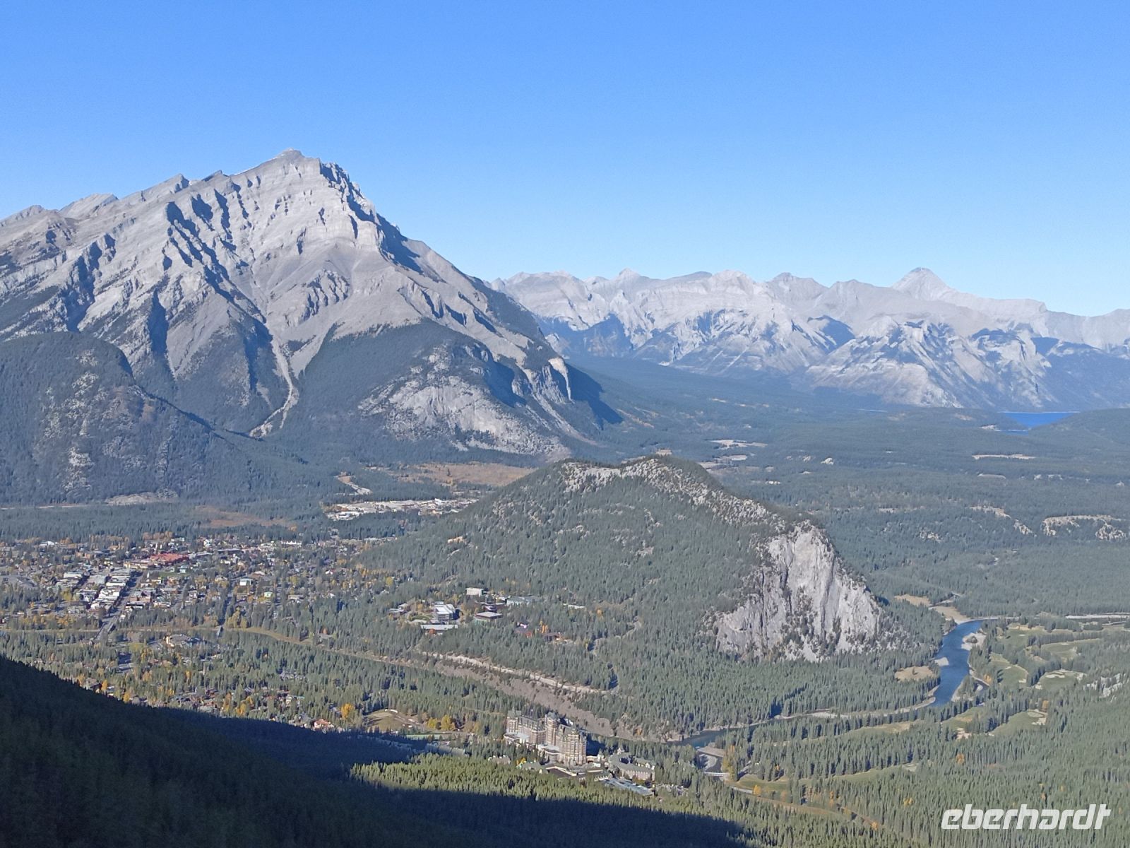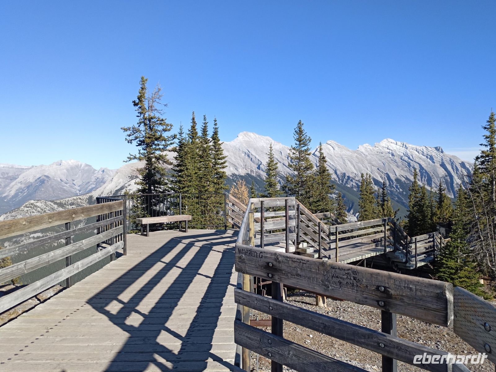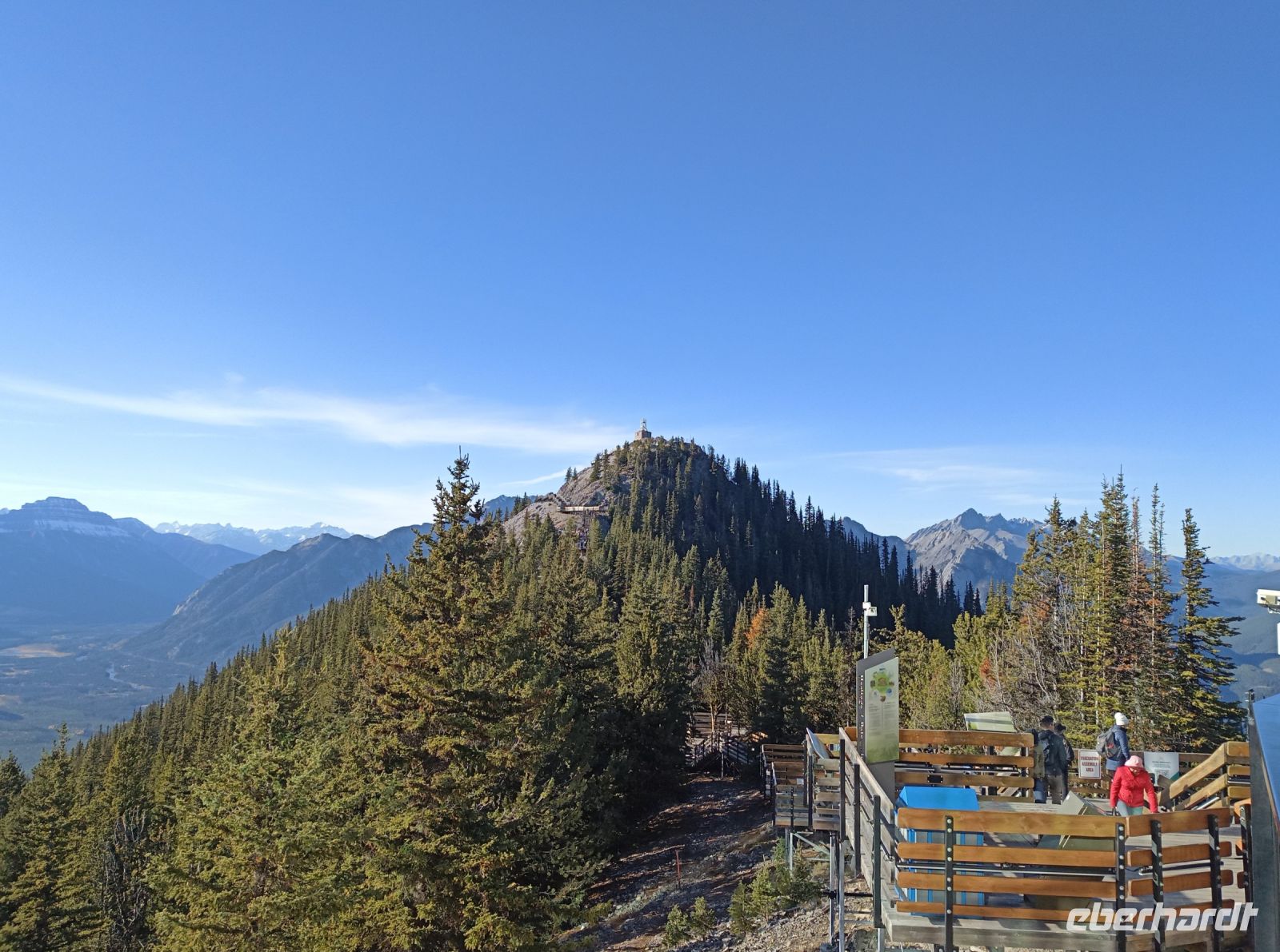 Nach der Ankunft auf der Bergstation hatten wir die Möglichkeit kürzere oder längere Spaziergänge zu unternehmen. Viele entschieden sich für den Boardwalk zum Sanson Peak, andere genießen einfach die Aussichten und die Sonne. Auf dem Rückweg hielten wir noch am Surprise Corner Viewpoint, einem Aussichtspunkt auf das Fairmont Banff Springs Hotel und den Bow River von der anderen Seite. Es war ein fantastischer Auftakt der Erkundung der Rocky Mountains, voll von atemberaubenden Eindrücken von den Naturschönheiten der Seen und Bergen.