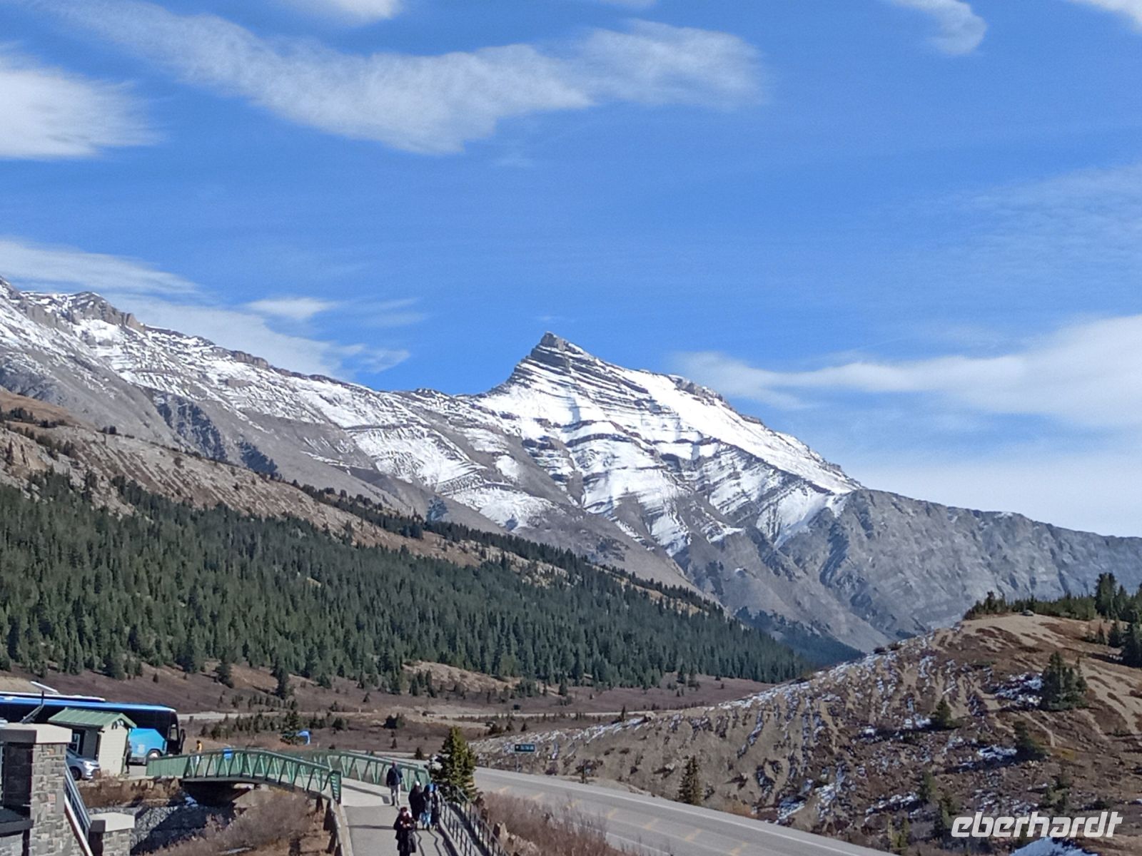 Unser Tag beginnt recht früh, denn wir haben eine fast 200 km lange Anfahrt zu heutigem Ziel – Besuch des Athabasca Gletschers in dem Columbia Icefield. Bei dieser Fahrt gilt das Sprichwort: „Der Weg ist das Ziel“ ganz besonders. Denn auf der Panorama Straße wechseln sich, gefühlt jede Minute, die wunderschönen Aussichten auf die Bergwelt der Rockies bei einem wahrhaft Bilderbuchwetter. Nicht umsonst, wird diese Straße als eine der Schönsten der Welt genannt. Wir machen noch einen kurzen Stopp am Visitor Center am Lake Louise und dann fahren wir Non-Stopp durch, denn wir haben eine feste Uhrzeit für die Auffahrt zum Gletscher. Daher versuchen wir die wunderbaren Bilder vom Bus einzufangen und im Kopf zu speichern. Marion erzählt uns unterwegs über die Nationalparks in Kanada.