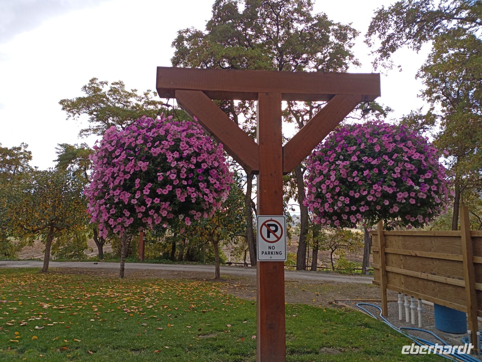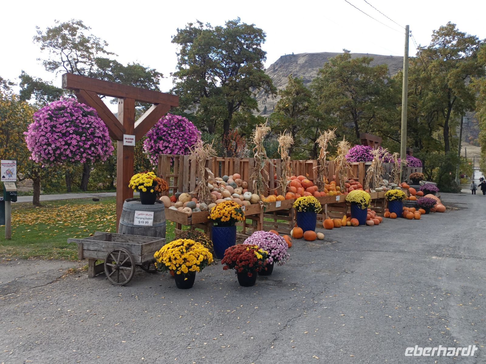 Nach ungefähr einer Stunde biegen wir von der Straße ab und hier eröffnet sich ein Blumen- und Früchteparadies. Blumenranken schmücken die Einfahrt zum Horsting´s Farm Market. Horsting's Farm ist eine familiengeführte Obst- und Gemüsefarm auf einer Fläche von etwa 85 Hektar. Die Farmerfamilie baut hier Obst, Gemüse und Getreide an, verarbeitet es und verkauft es hier im Laden. Bunte Kürbisse, Blumen, Obst, Gemüse, Marmeladen, Säfte und einige zugekaufte Produkte findet man in dem liebevoll sortierten und dekorierten Laden, vor. Ein schöner Stopp für die Touristen, aber auch Ausflugsziel für Familie mit Kindern.