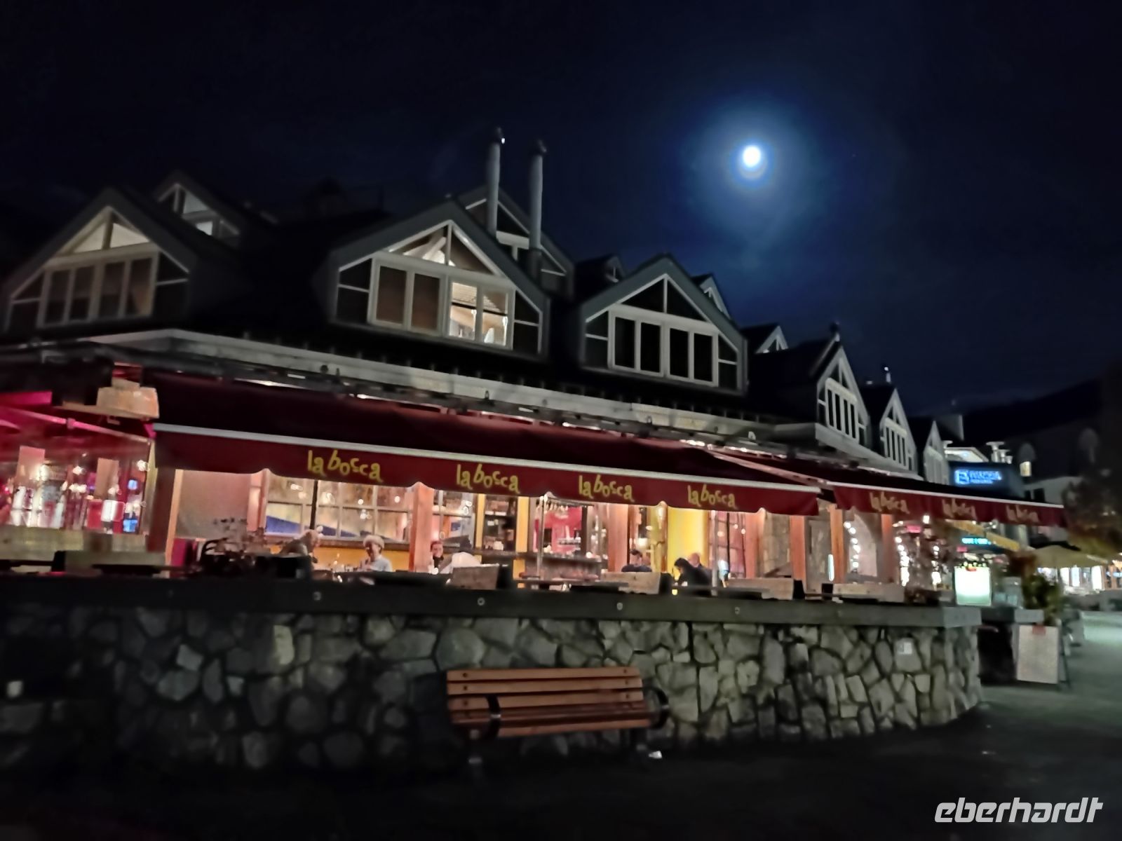 Wir fahren eine kleine Runde durch die Stadt und landen vor unserem Hotel The Crystal Lodge. Die Gäste entdecken heute Abend das sehr gemütliche Wintersportzentrum auf eigene Faust. Einige spazierten noch zum Olympia Zeichen – den Olympischen Ringen oder kehrten in eines der Lokale an der Flaniermeile von Whistler ein. Bauten aus Naturstein und Holz verleihen der Stadt ein ganz besonderes Flair.