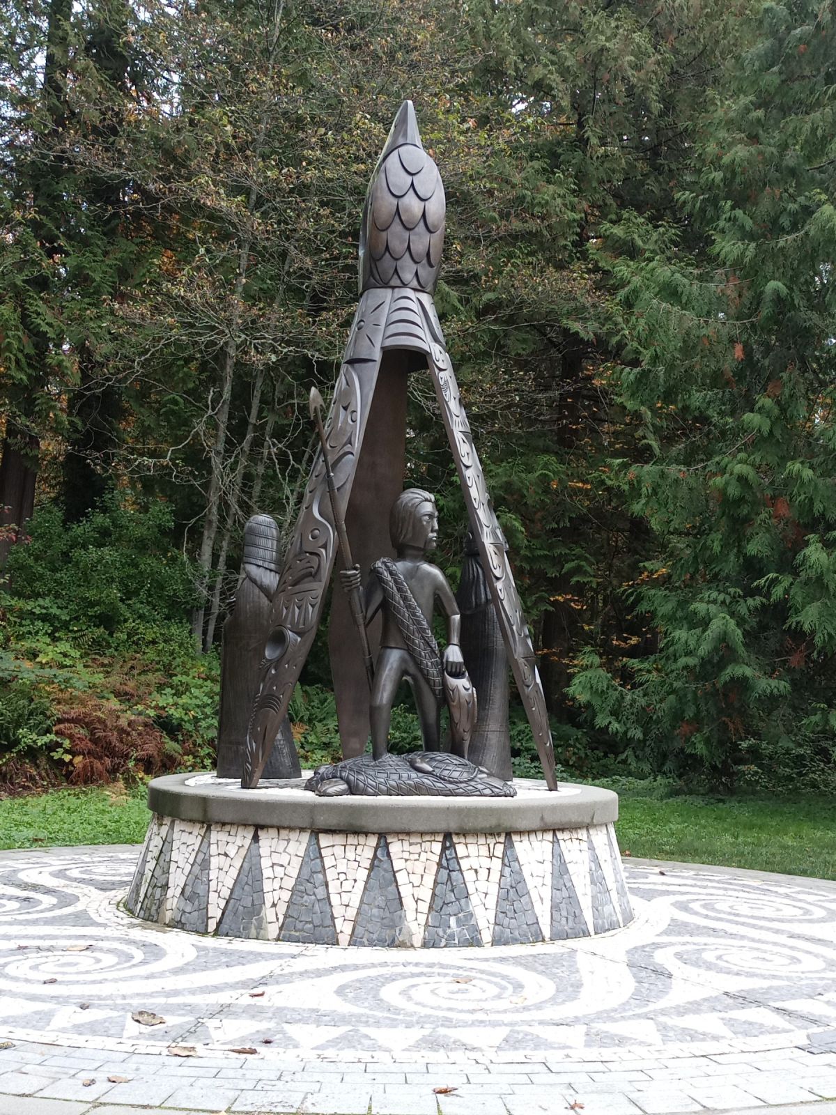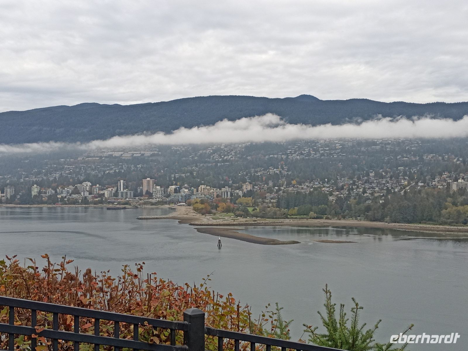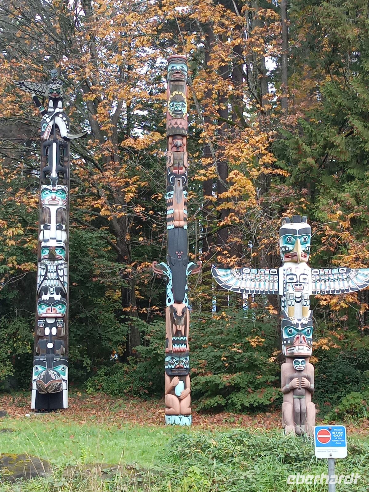 Gegen Mittag erreichen wir Vancouver und fahren zunächst in den Stanley Park. Der Stanley Park ist mit einer Fläche von 405 Hektar einer der größten Stadtparks Nordamerikas mit Wanderwegen, dem berühmten Seawall und dem Vancouver Aquarium. Wir parken unweit von Wiesen, wo die Totempfähle der Ureinwohner-Stämme installiert sind. Es ist etwas bewölkt, dennoch können wir bei einem Spaziergang am Ufer – Seawall, die Silhouette – die Skylines von Vancouver betrachten und davor den Vancouver Hafen. Zurück am Bus verabschieden und bedanken uns auch unserem Fahrer Parviz, der uns die ganze Woche von Calgary über die Rockies bis Vancouver sicher gefahren hat. Er bleibt uns aber noch bis heute Abend erhalten.
