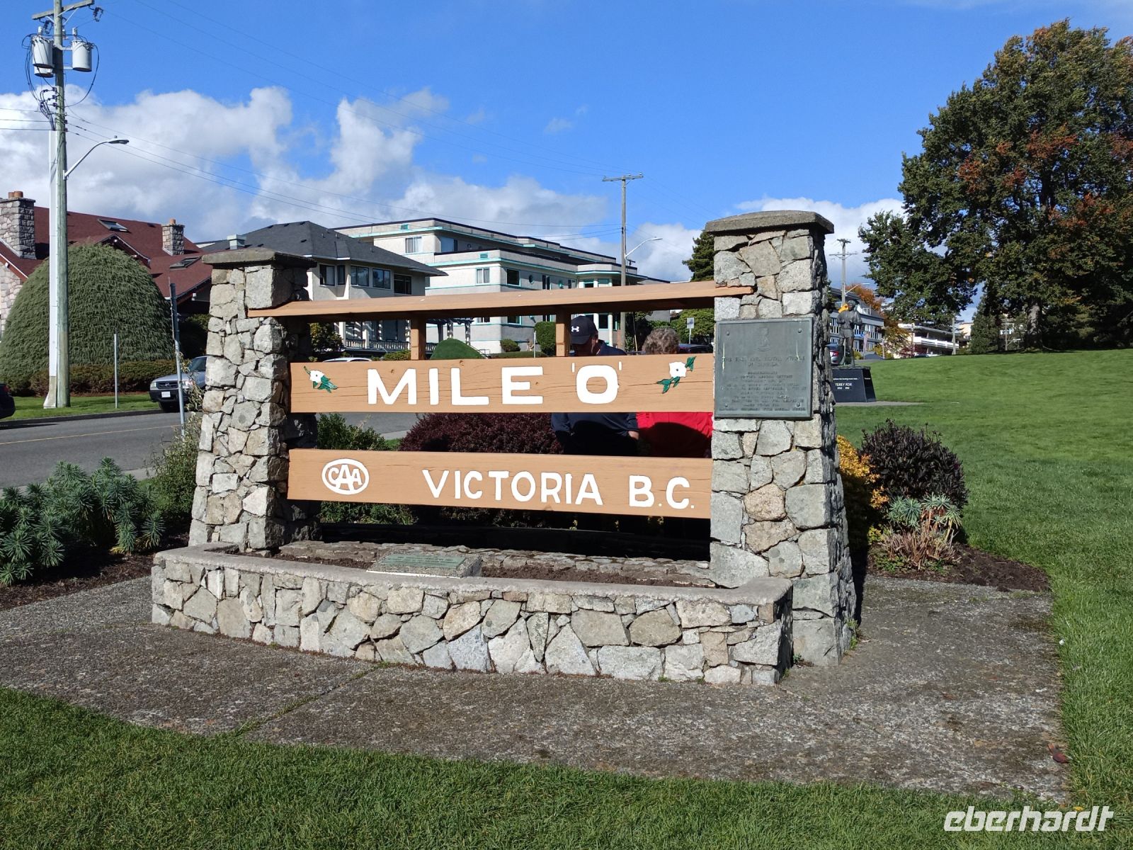 Anschließend fahren wir an den südlichen Zipfel der Insel – hier am Ufer des Salish See, der direkt im Pazifik mündet, ist es ganz schön windig. Schöne Strände, Fahrradwege säumen das Ufer. Hier machen einen Halt am „Mile Zero Monument“. Dieser Standort ist Symbol für den Beginn der längsten durchgehenden Straße der Welt, die Victoria mit Montreal verbindet und unglaubliche 7.821 km misst.