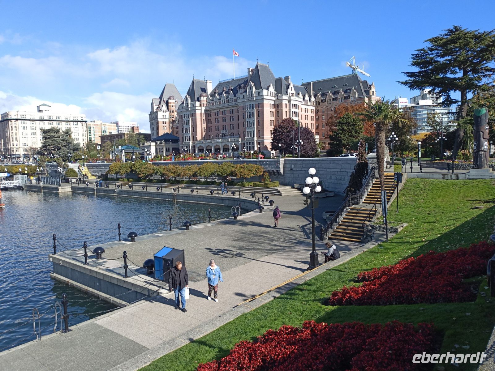 Heute beherbergen die Gärten über 900 Pflanzenarten und ziehen jedes Jahr Besucher aus aller Welt an. Nach dem Besuch in den Butchart Gardens fahren wir weiter in die Hauptstadt von British Columbia, Victoria. Während der Fahrt bewundern wir die gepflegten Wohnhäuser, die mit ihren schönen Gärten und Blumen einen besonderen Charme ausstrahlen.