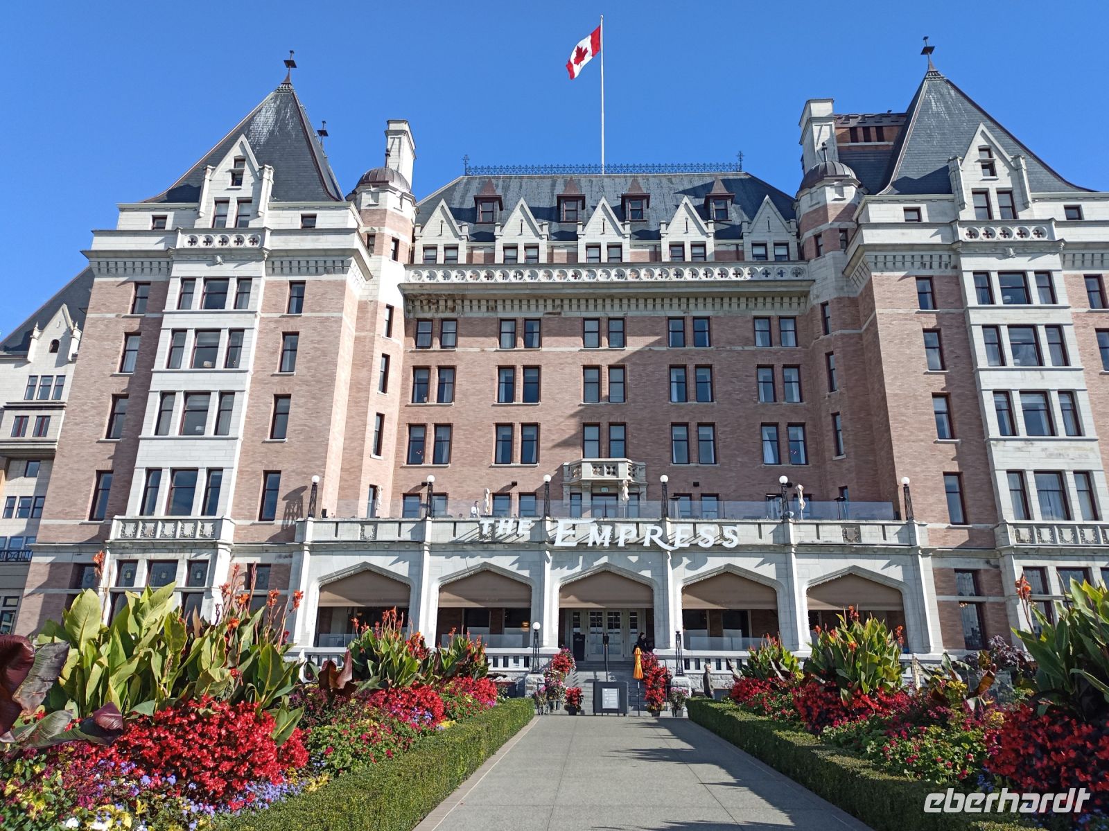Als Fan von besonderen Hotels nehme ich mir Zeit, endlich eines der berühmten Fairmont Hotels von innen zu besichtigen. Das majestätische Fairmont Empress Hotel. Dieses historische Gebäude beeindruckt nicht nur durch seine Architektur, sondern auch durch seine luxuriöse Inneneinrichtung und die wunderschöne Blumendekoration. Langsam ist die Flanier-Zeit zu Ende und wir kehren wieder zu unserem Bus zurück. Pünktlich zu Ende unseres Programms kommen die ersten Tropfen vom Himmel. Das stört uns aber im Bus nicht. Als hätte unsere Gruppe den Wettergott im Bunde.