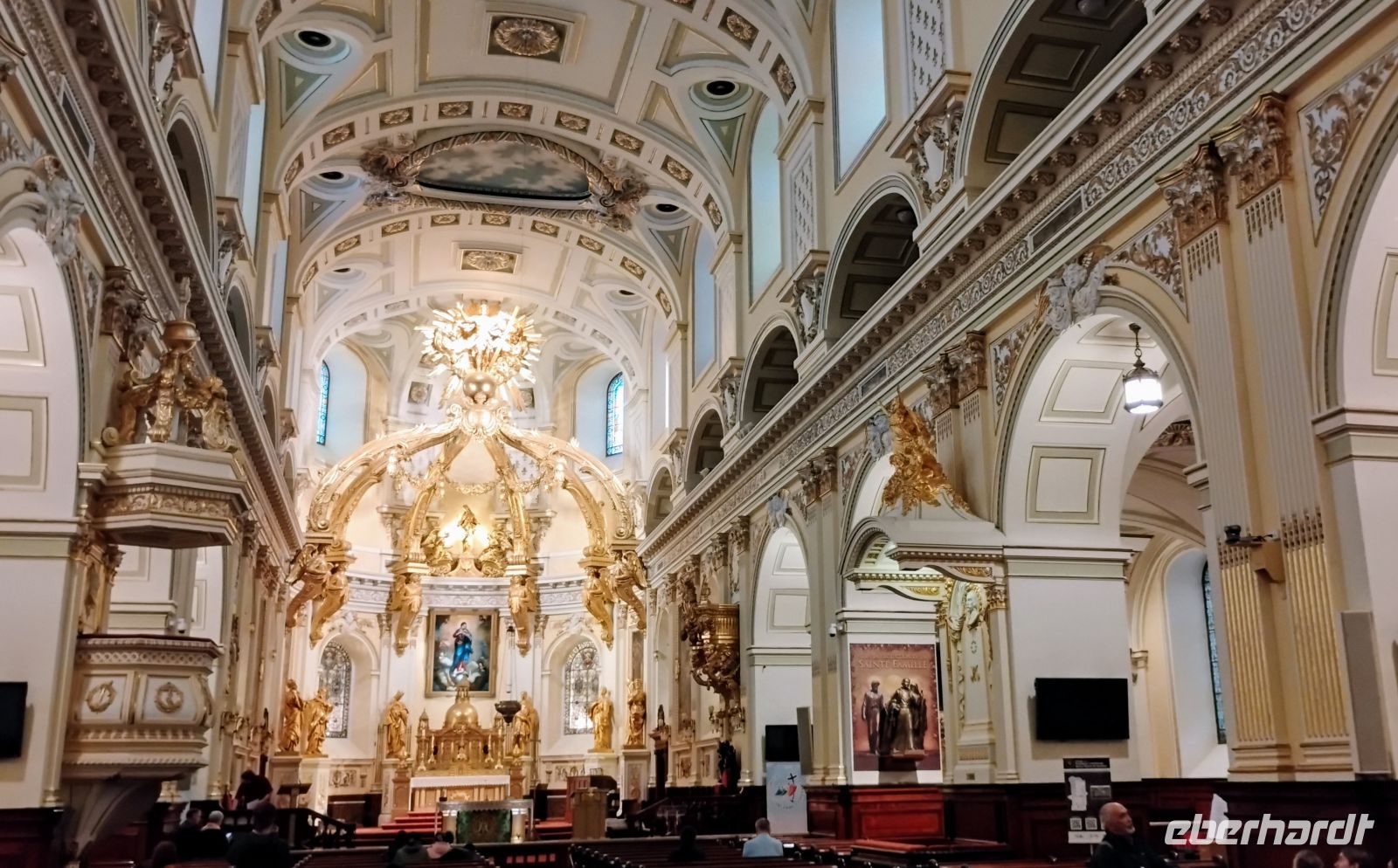Eben diese Basilika besuchen wir im Anschluss – eine der eindrucksvollsten Kirchen Nordamerikas. Der neugotische Bau mit seinem blauen, sternengeschmückten Gewölbe, den geschnitzten Holzaltären und dem Spiel aus Licht und Farben berührt viele von uns und wir bestaunen still die Details – ein Ort, der andächtig macht, mitten in der pulsierenden Stadt.