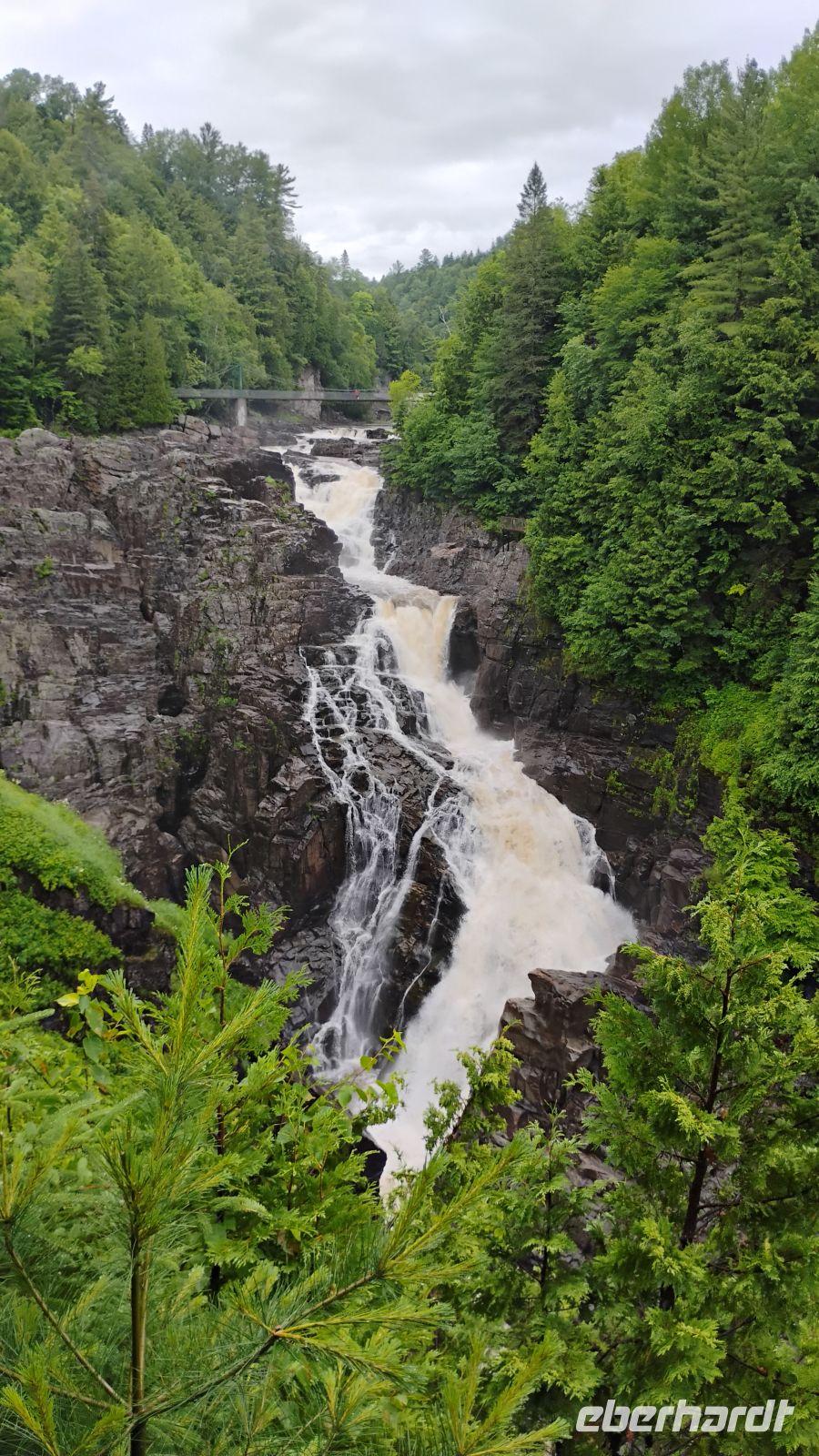 Da das Wetter sich nun etwas gebessert hat, beschließen wir spontan, auch den Canyon Sainte-Anne noch zu besuchen. Auf einer kleinen Wanderung über Stege und Hängebrücken bestaunen wir die tosenden Wasserfälle aus nächster Nähe – ein beeindruckendes Naturspektakel inmitten der Felsen und Wälder.