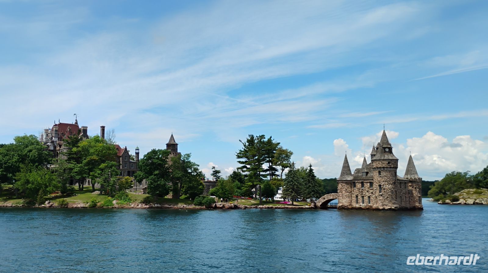 Nach der Rundfahrt verlassen wir die Hauptstadt und machen uns auf den Weg Richtung Südwesten. In Rockport steigen wir auf ein Boot und fahren durch das Labyrinth der 1.000 Islands. (Genau genommen sind es 1864!) Manche der kleinen Inseln haben nur Platz für ein einziges Haus, andere sind kaum mehr als ein Felsen mit einem Baum. Besonders eindrucksvoll ist Heart Island, geformt wie ein Herz, auf der das märchenhafte Boldt Castle steht. George C. Boldt, ein aus Preußen stammender Auswanderer, hatte als Tellerwäscher in den USA angefangen und brachte es bis zum Direktor des berühmten Waldorf-Astoria in New York. Für seine Frau ließ er das Schloss als Zeichen seiner Liebe errichten. Doch kurz vor der Fertigstellung starb sie unerwartet. Der Bau wurde eingestellt und Boldt hat die Insel nie wieder betreten. Er gilt übrigens auch als Erfinder des berühmten Waldorfsalats sowie des Thousand-Island-Dressings – benannt nach dieser Region. Und genau dieses Dressing wird uns passenderweise zu unserem anschließenden Mittagessen im Pub serviert - mit Blick aufs Wasser und die vorbeiziehenden Boote.