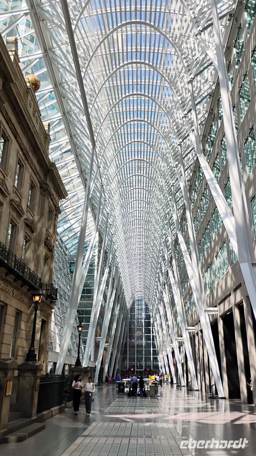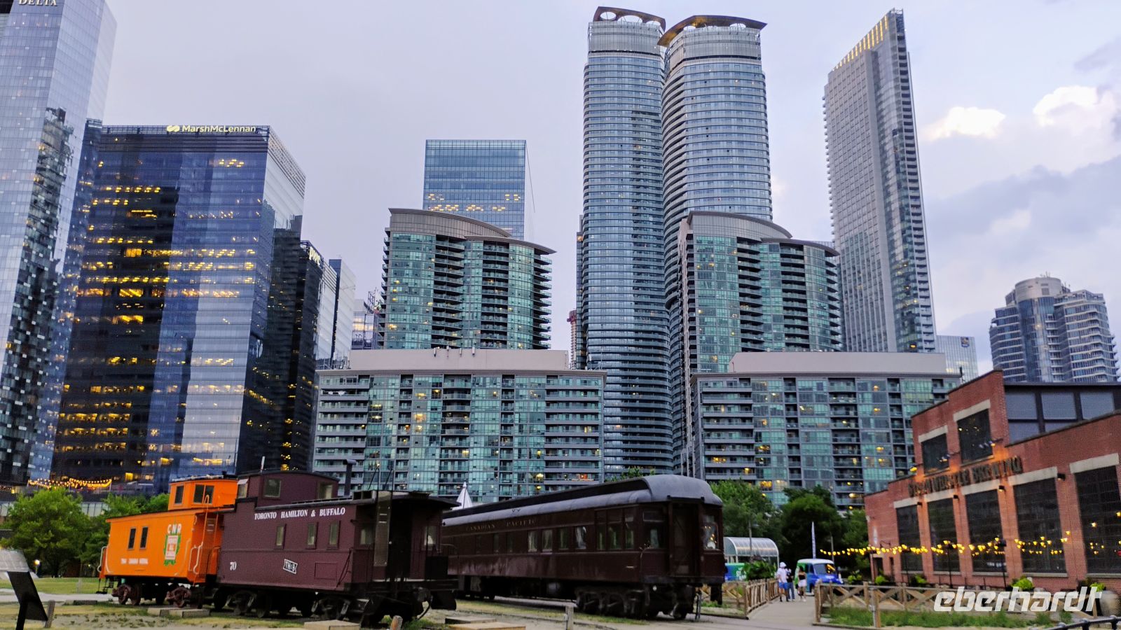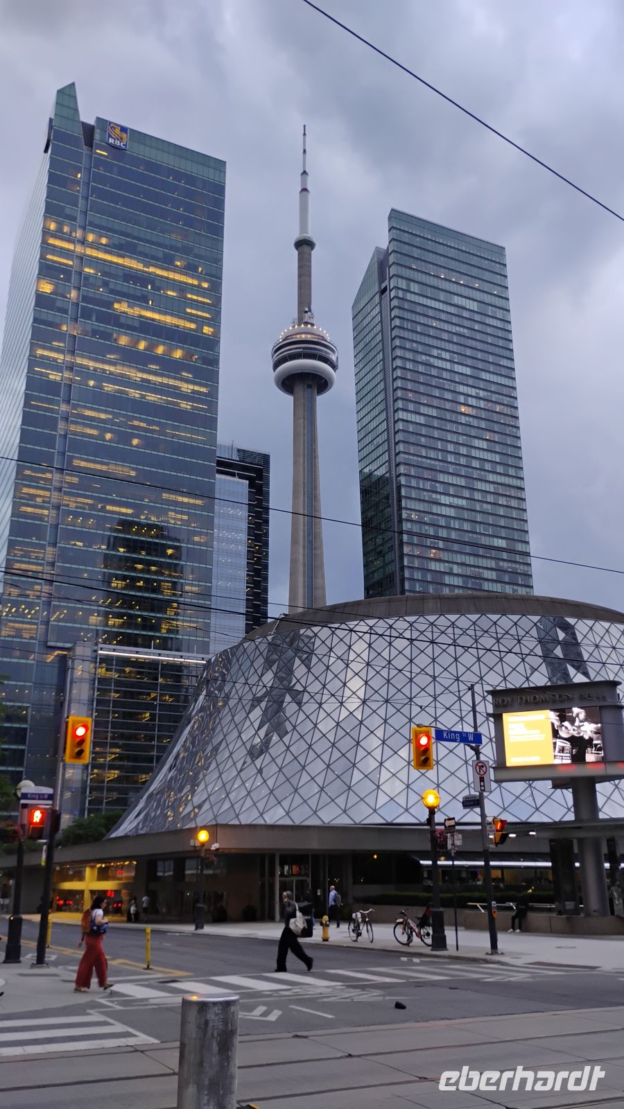 Wir steigen auch am Brookfield Place mit seiner eindrucksvollen Glas-Stahl-Konstruktion aus und ebenso am CN Tower, der einst das höchste Gebäude der Welt war. Dagmar erzählt uns, dass der Turm von indigenen Arbeitern gebaut wurde – wegen ihrer legendären Schwindelfreiheit bei großen Höhen.