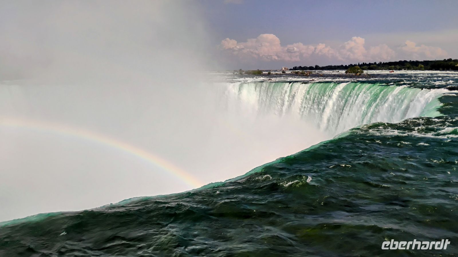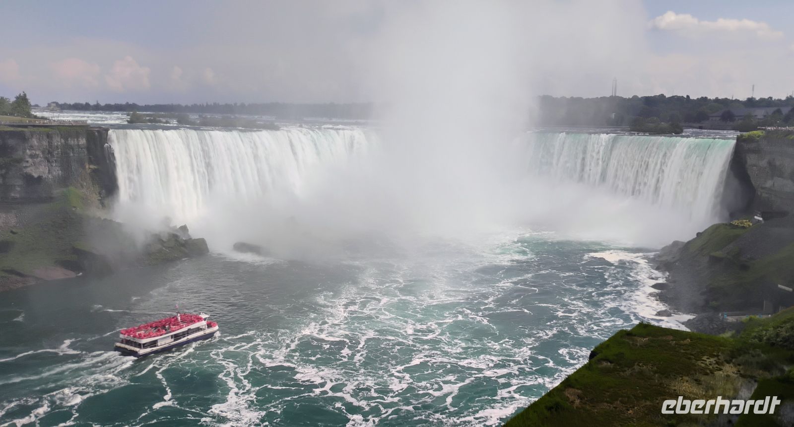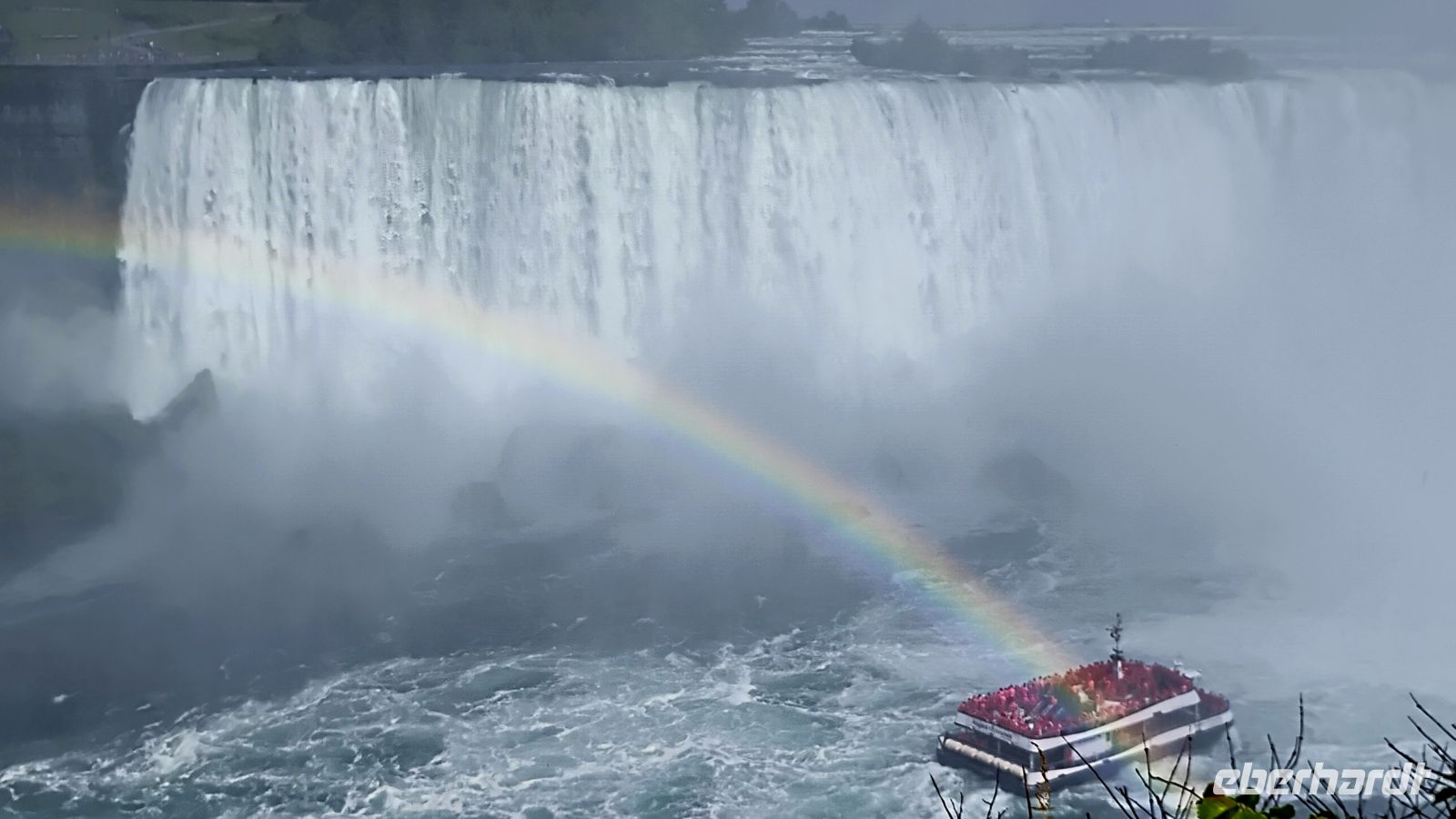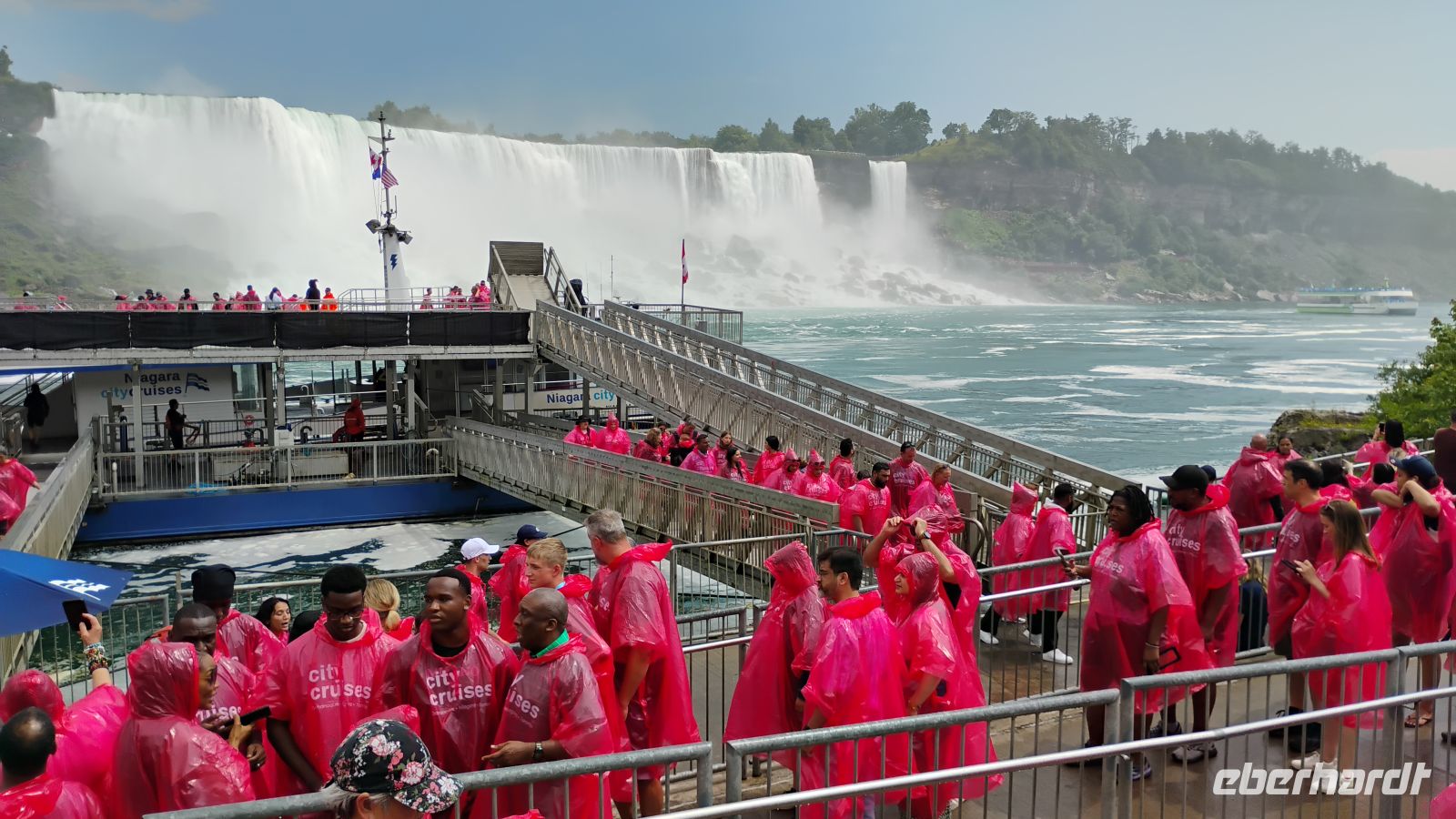 Nur eine halbe Stunde später erreichen wir die Niagarafälle. Um 15 Uhr geht es auf die legendäre Bootstour – mit Regenponcho und Kamera ausgerüstet, fahren wir direkt hinein in den Nebel der tosenden Wassermassen. Ein unvergessliches Erlebnis: Die Wucht der Fälle ist beeindruckend, der Wind weht Gischt bis an die Brillenränder. Trotzdem wird viel gelacht und fotografiert.