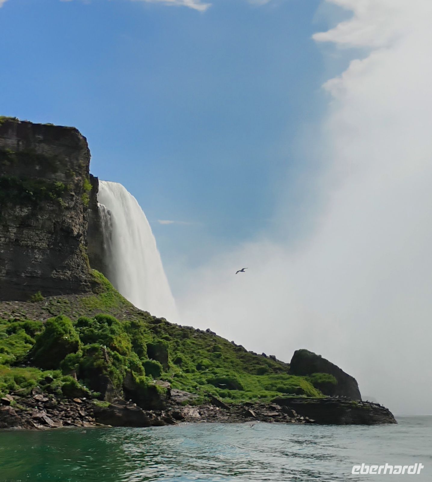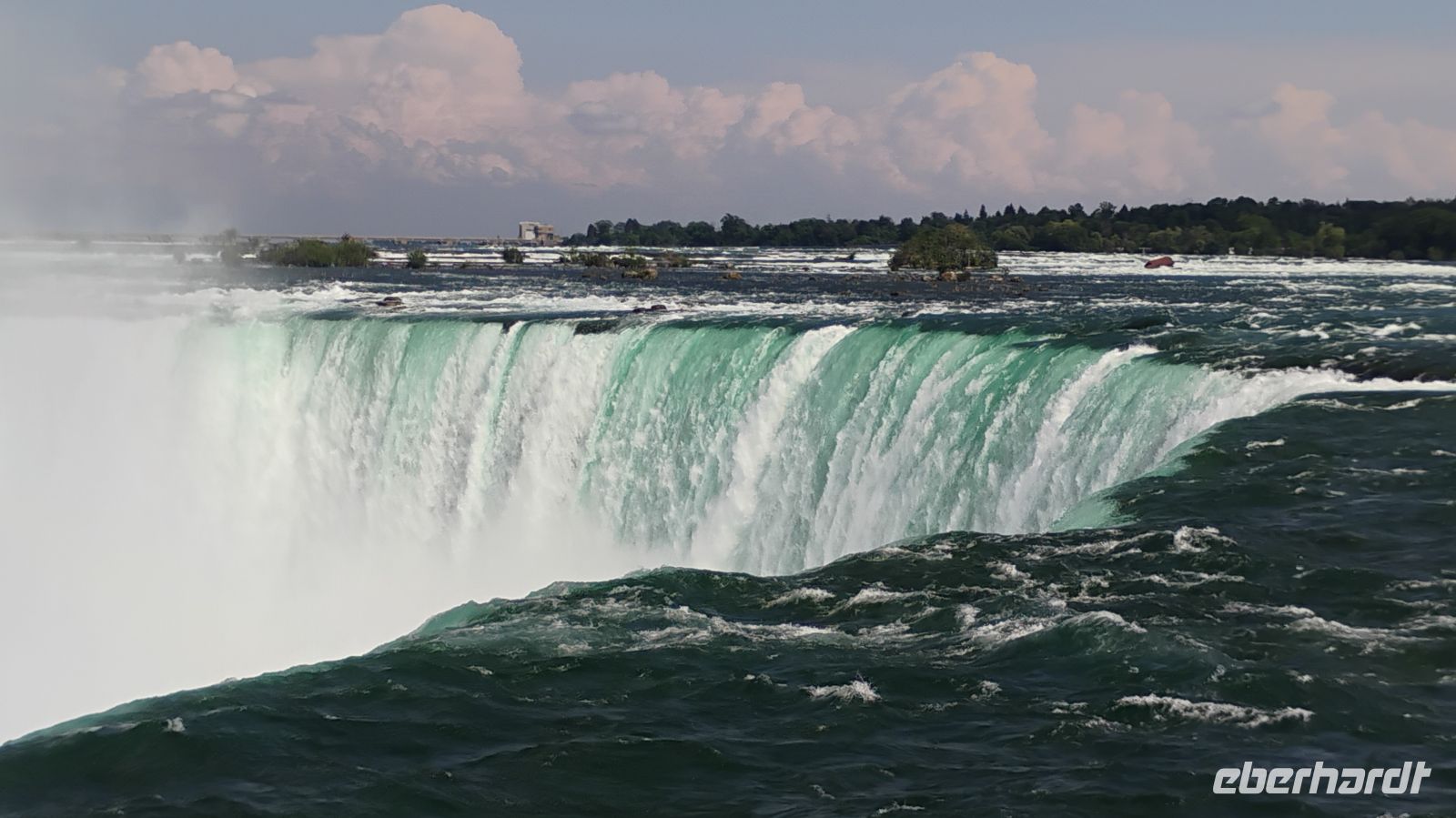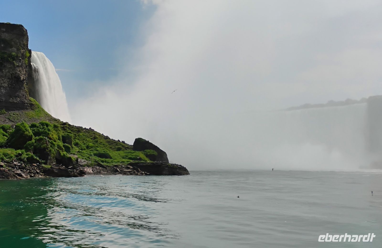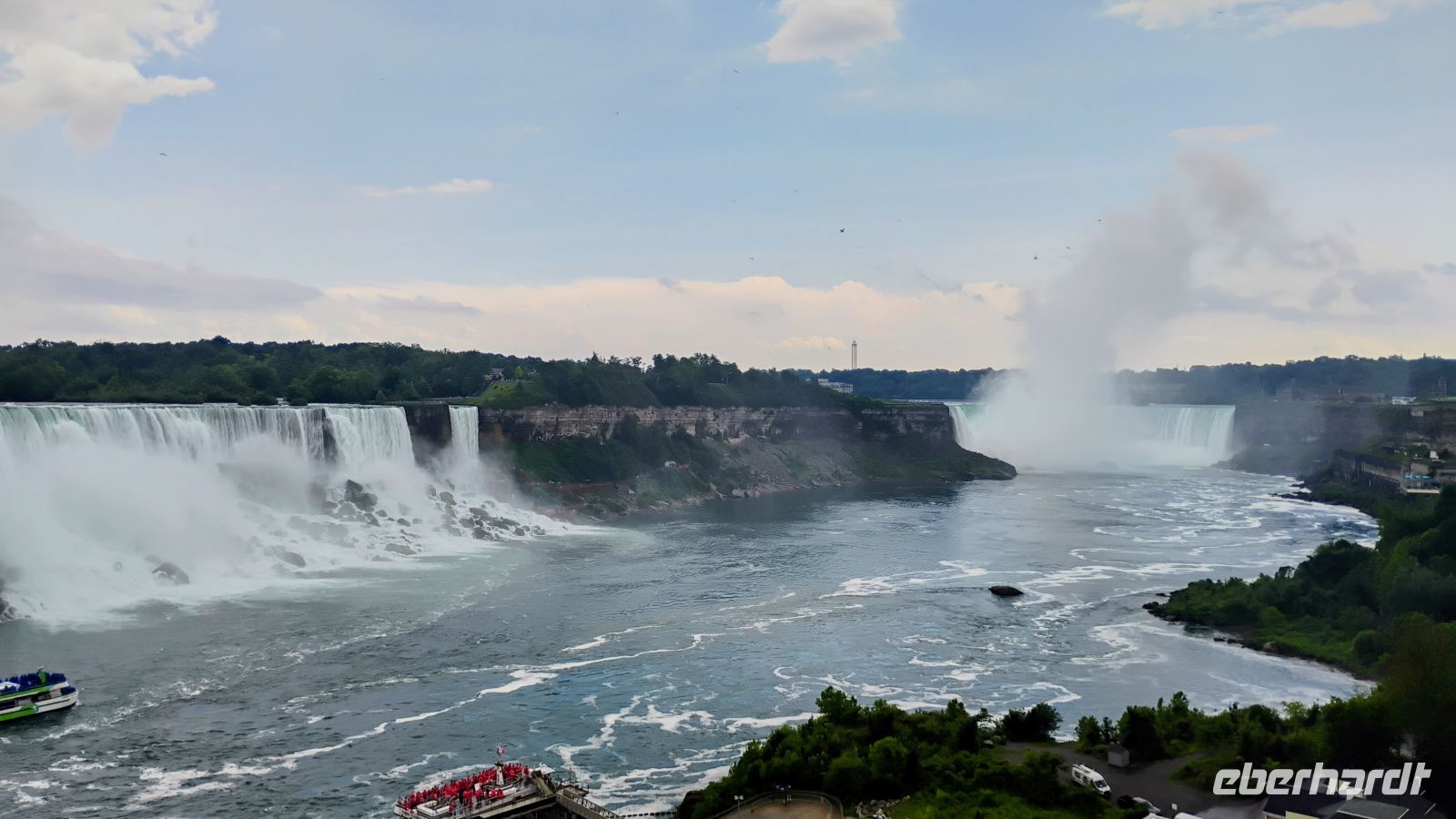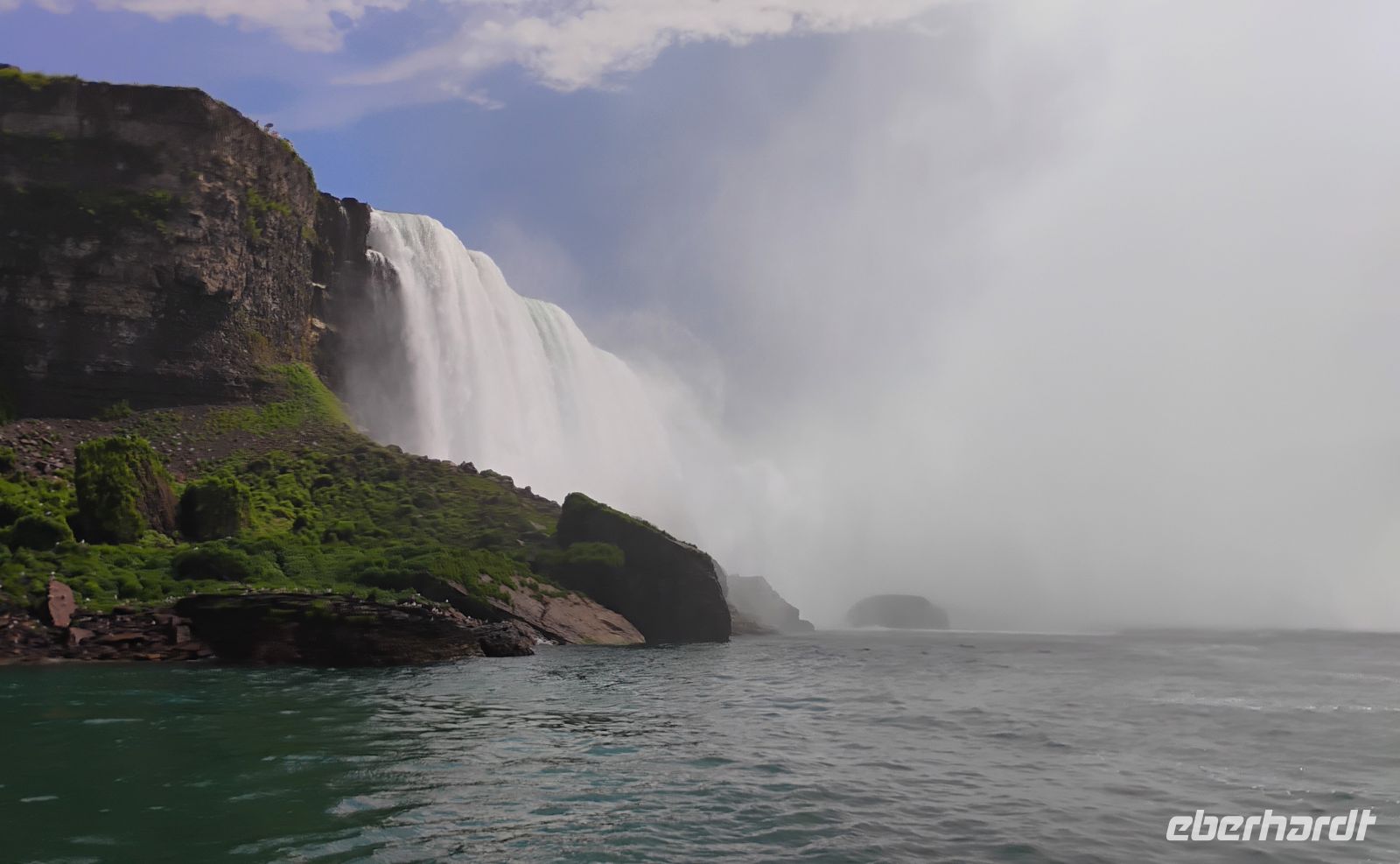 Nur eine halbe Stunde später erreichen wir die Niagarafälle. Um 15 Uhr geht es auf die legendäre Bootstour – mit Regenponcho und Kamera ausgerüstet, fahren wir direkt hinein in den Nebel der tosenden Wassermassen. Ein unvergessliches Erlebnis: Die Wucht der Fälle ist beeindruckend, der Wind weht Gischt bis an die Brillenränder. Trotzdem wird viel gelacht und fotografiert.