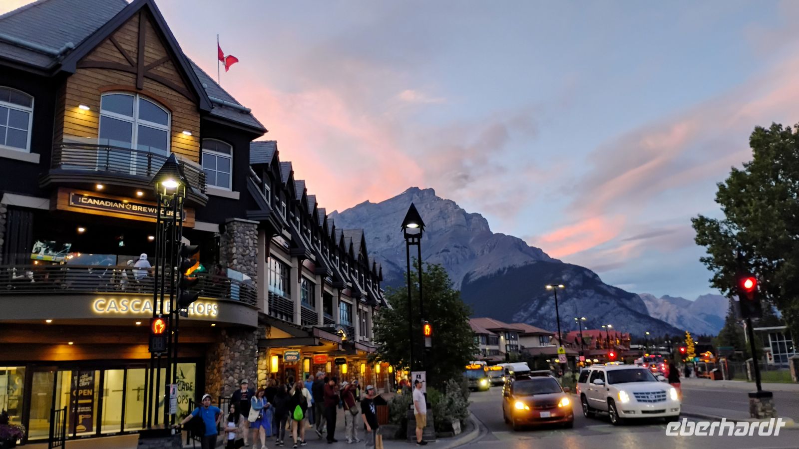 Gegen 18:00 Uhr erreichen wir Banff, wo wir die nächsten zwei Nächte verbringen. Einige treffen sich noch zum gemeinsamen Abendessen, andere erkunden den Ort auf eigene Faust.