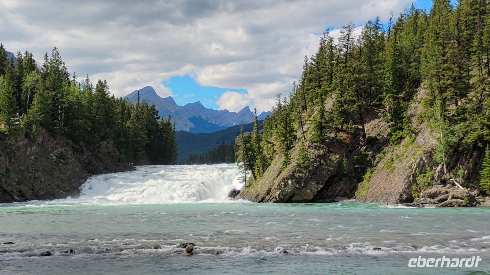 Zurück in Banff steht noch ein gemeinsamer letzter Programmpunkt auf dem Tagesplan: ein Besuch des eleganten Banff Springs Hotels – ein echtes Wahrzeichen inmitten der Bergwelt. Von dort spazieren wir zu den nahegelegenen Bow Falls, wo der Fluss kraftvoll über breite Felsstufen rauscht.