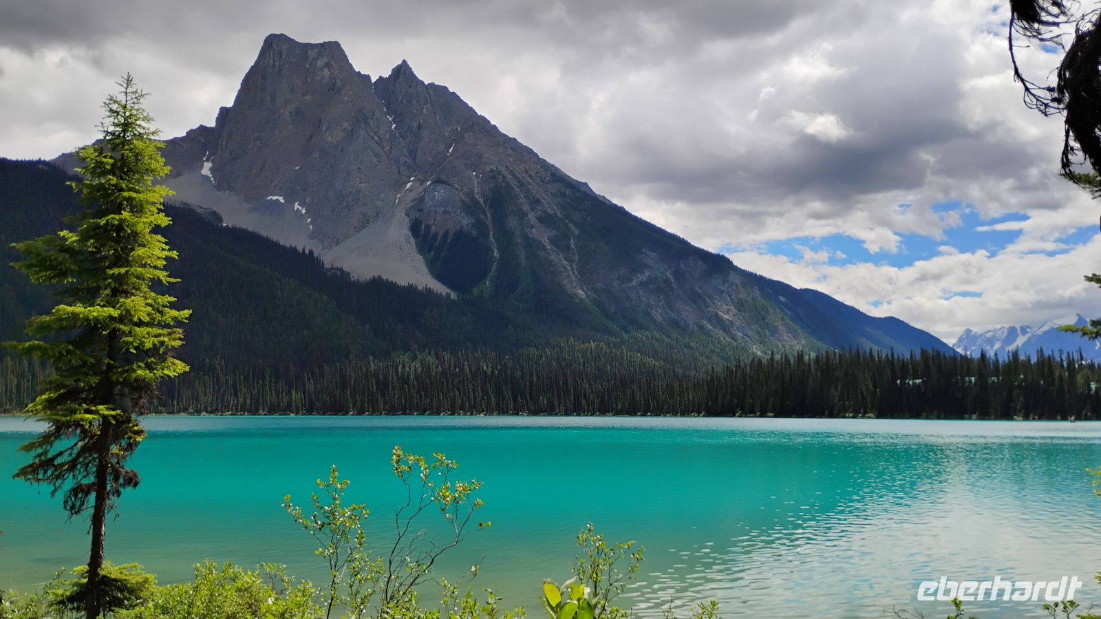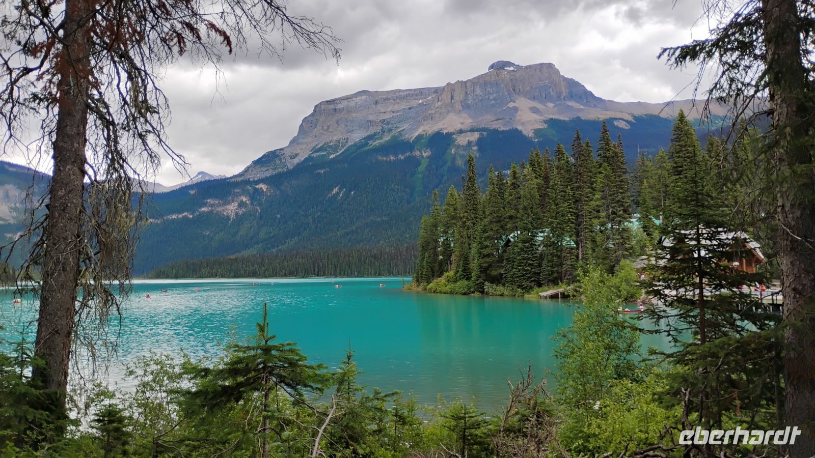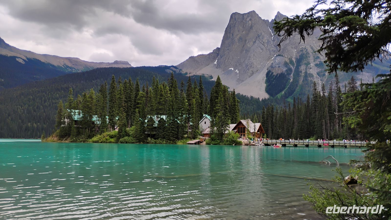 Am Emerald Lake zeigt sich der Yoho-Nationalpark von seiner schönsten Seite. Das Wasser liegt smaragdgrün und ruhig eingebettet zwischen Tannen und Bergen. Das Licht glitzert auf der Oberfläche, ein Moment, den viele von uns einfach genießen – manche sind ein Stück am Ufer entlanggelaufen, andere haben einfach nur das Farbenspiel auf dem Wasser bestaunt. Dass ein See so intensiv grün sein kann, glaubt man fast nur, wenn man es selbst gesehen hat. Ein echtes Juwel der Rockies.