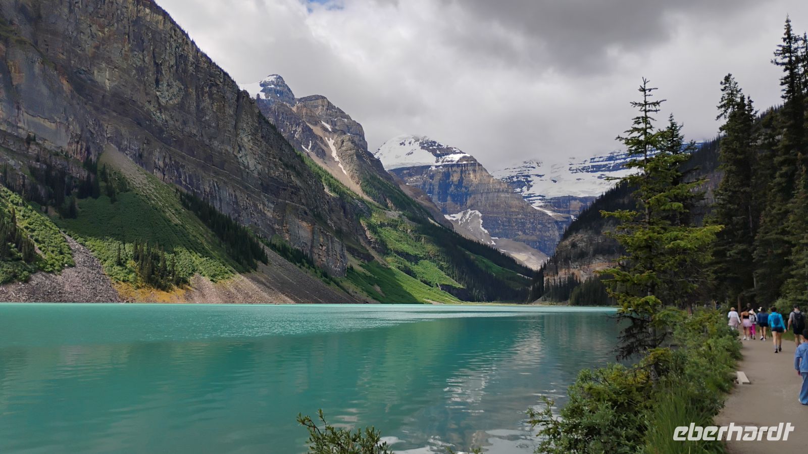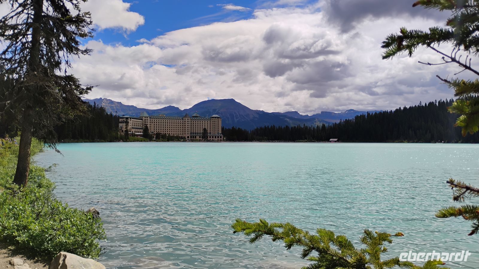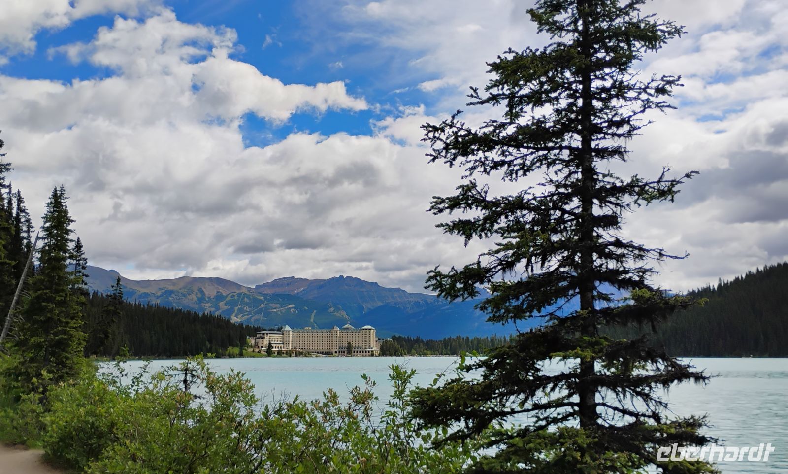 Am späten Vormittag kommen wir erneut nach Lake Louise – einer der bekanntesten Seen der Rockies mit dem "Château Lake Louise". Diesmal haben wir Zeit, den türkisfarbenen See in Ruhe zu erleben. Einige spazieren entlang des Ufers, andere genießen den Blick auf Gletscher und Gipfel von einer Bank aus. Die intensive Farbe des Wassers ist jedes Mal wieder verblüffend – fast unwirklich schön.