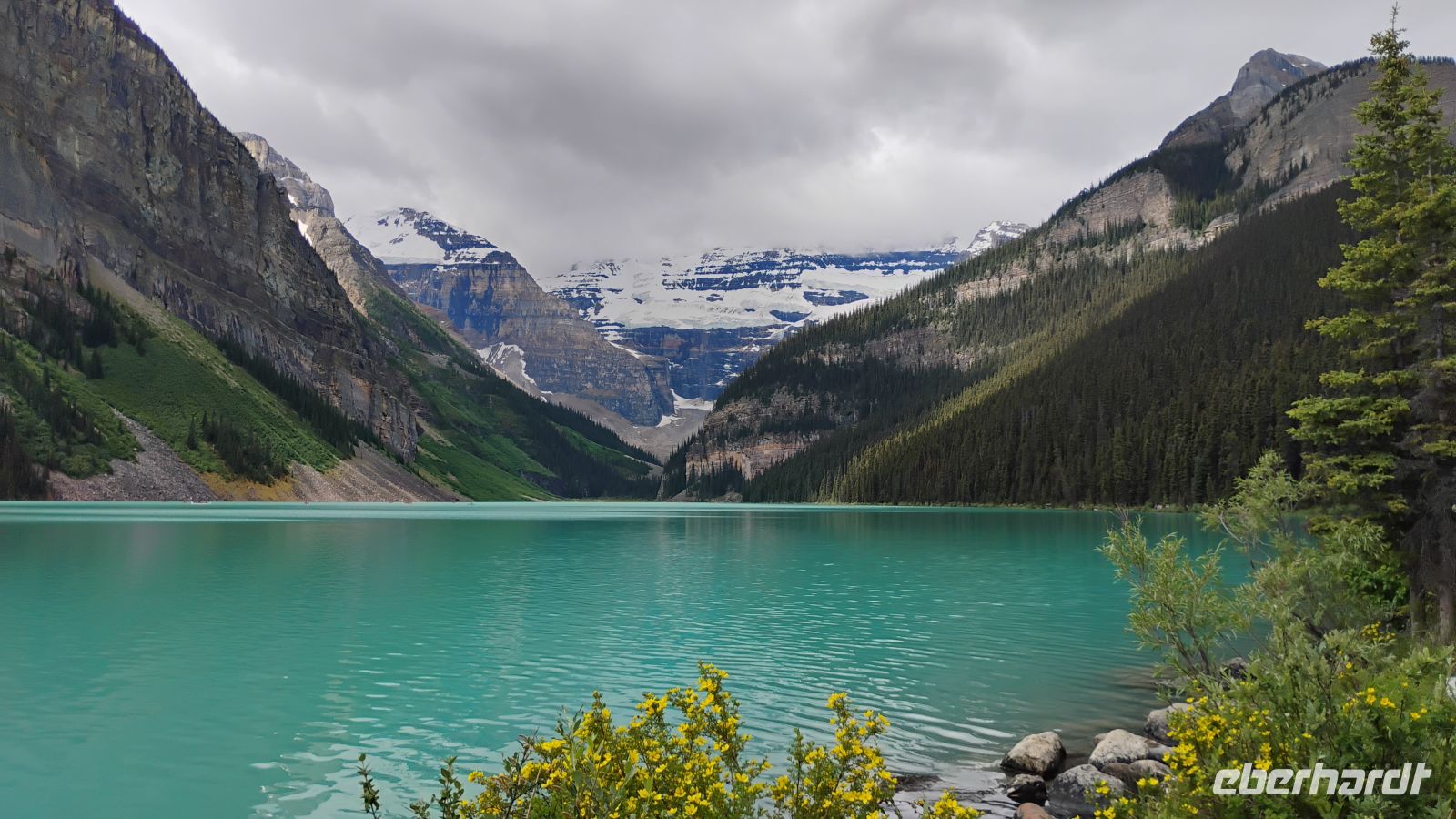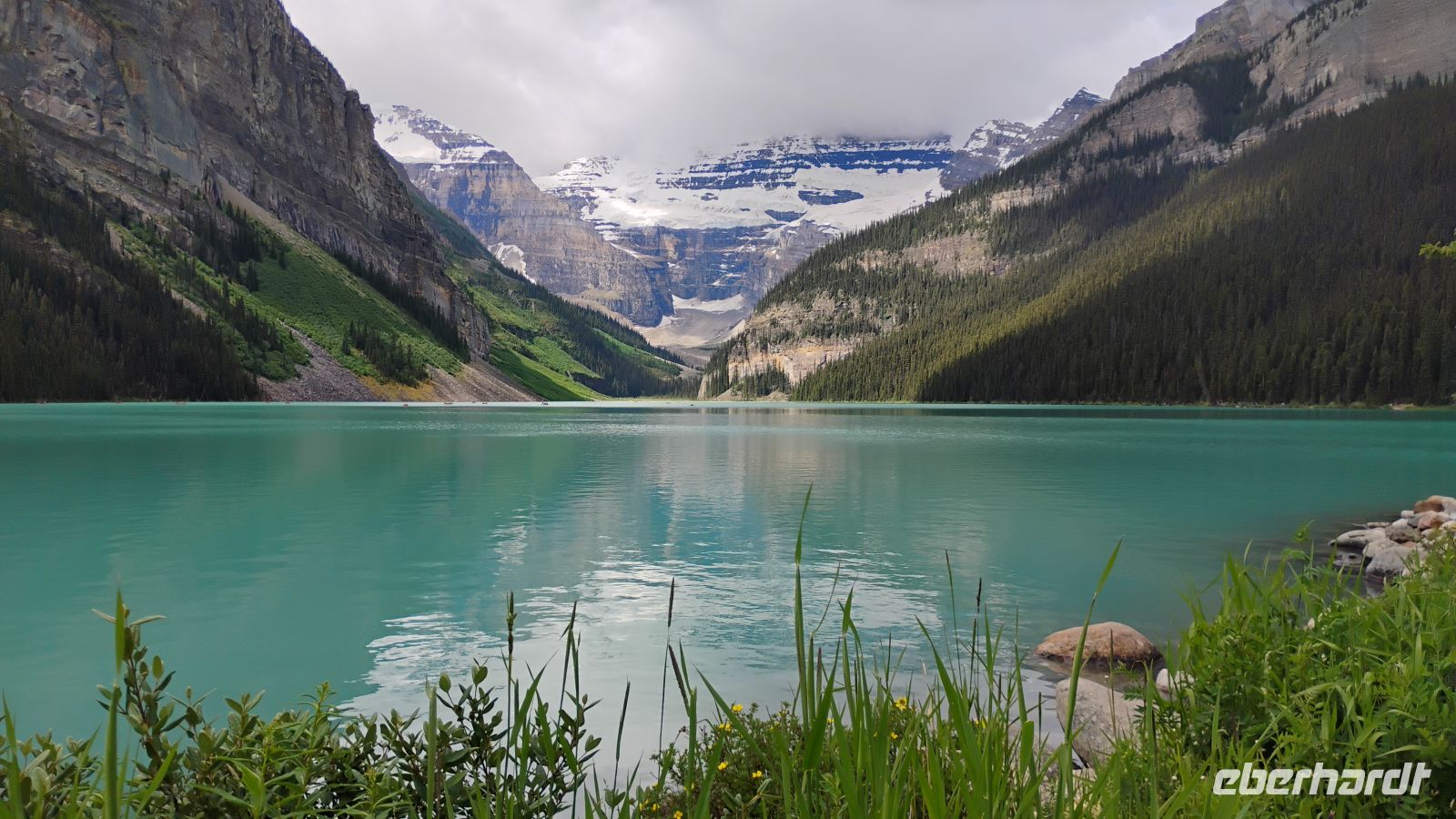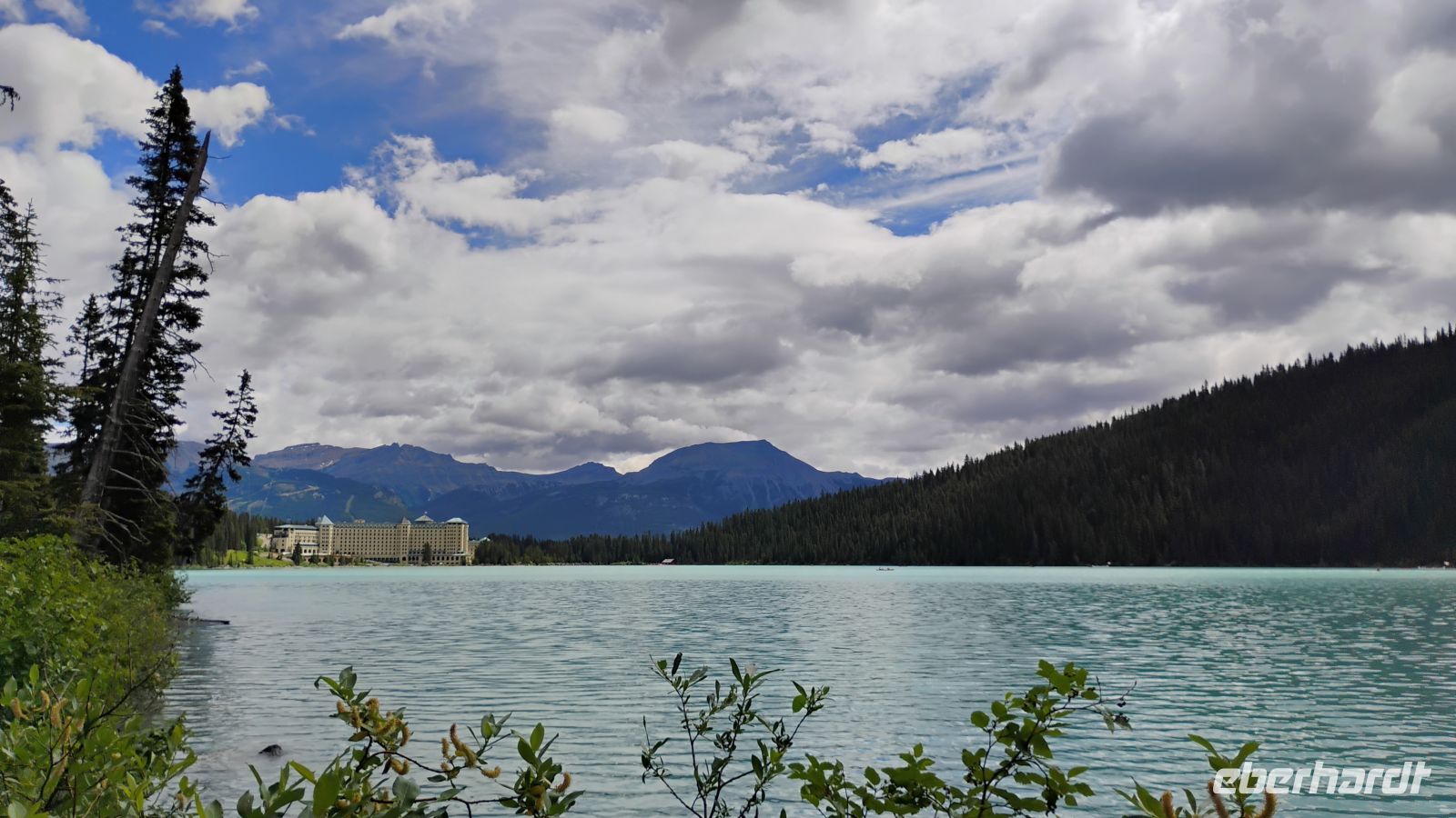 Am späten Vormittag kommen wir erneut nach Lake Louise – einer der bekanntesten Seen der Rockies mit dem "Château Lake Louise". Diesmal haben wir Zeit, den türkisfarbenen See in Ruhe zu erleben. Einige spazieren entlang des Ufers, andere genießen den Blick auf Gletscher und Gipfel von einer Bank aus. Die intensive Farbe des Wassers ist jedes Mal wieder verblüffend – fast unwirklich schön.