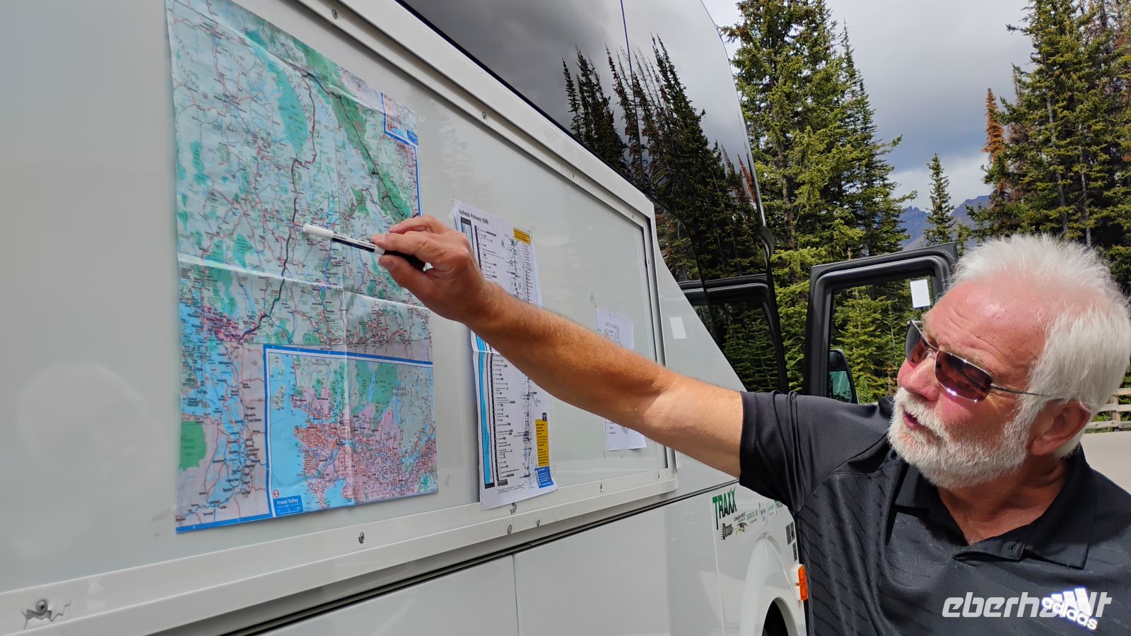 Auf dem Weg passieren wir die Provinzgrenze – wir lassen Alberta hinter uns und erreichen British Columbia. Damit gewinnen wir nicht nur landschaftlich neue Eindrücke, sondern auch eine ganze Stunde Zeit, denn in BC ticken die Uhren eine Stunde früher. Eine schöne Gelegenheit, den weiteren Tag etwas entspannter anzugehen.