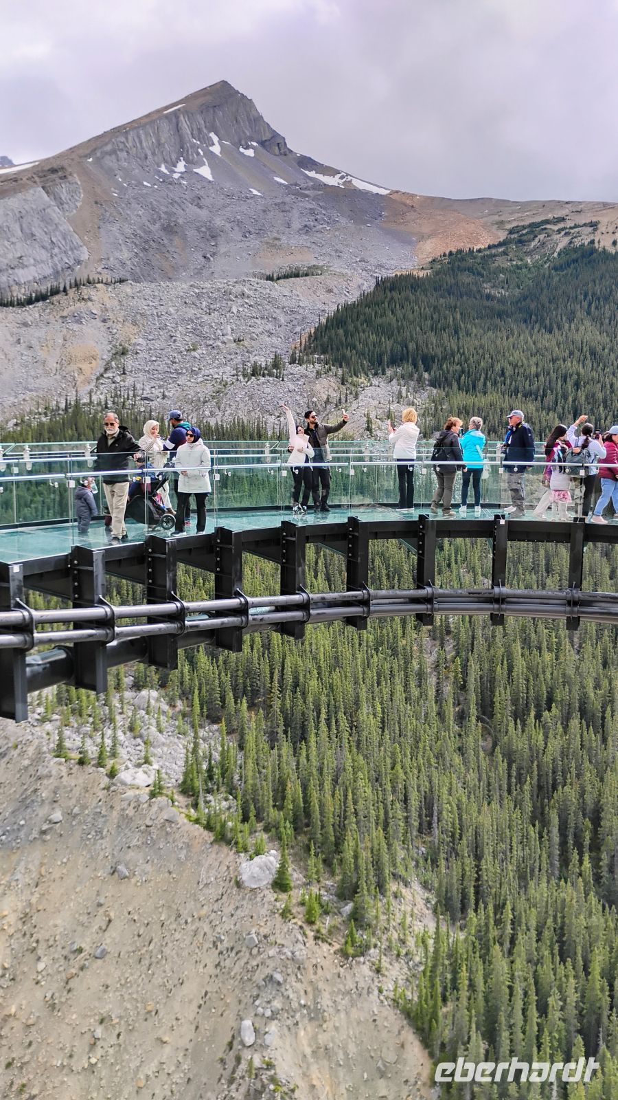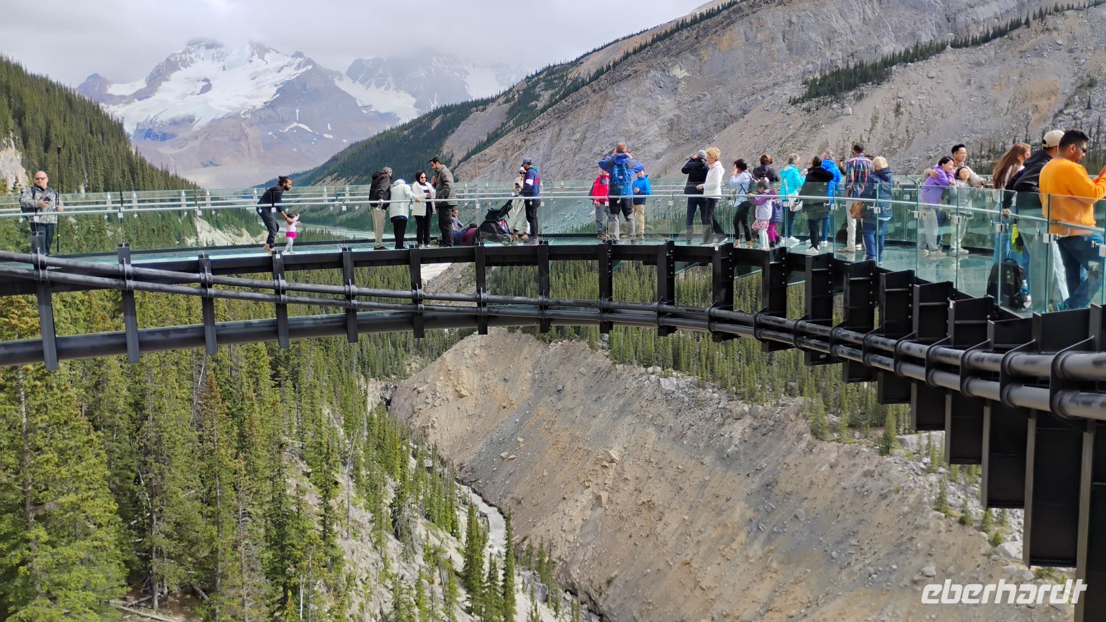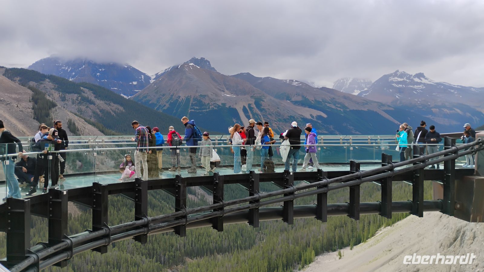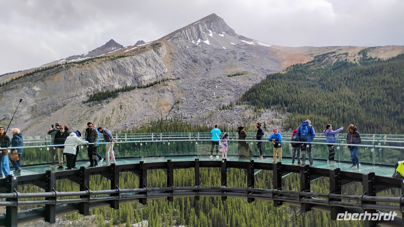 Am Nachmittag erwartet einige von uns ein ganz besonderes Erlebnis: ein Ausflug auf den Athabasca-Gletscher, Teil des riesigen Columbia Icefields. In speziellen Ice Explorern – riesige geländegängige Fahrzeuge – geht es direkt auf das ewige Eis. Ein kühler Wind weht über die weite, weiß schimmernde Fläche, rundum ragen Felswände empor – ein Ort, der Ehrfurcht weckt. Anschließend besuchen wir die Skywalk-Aussichtsplattform: ein gläserner Steg, der sich über das Tal hinauswölbt und einen freien Blick in die Tiefe eröffnet – nichts für schwache Nerven, aber unvergesslich.