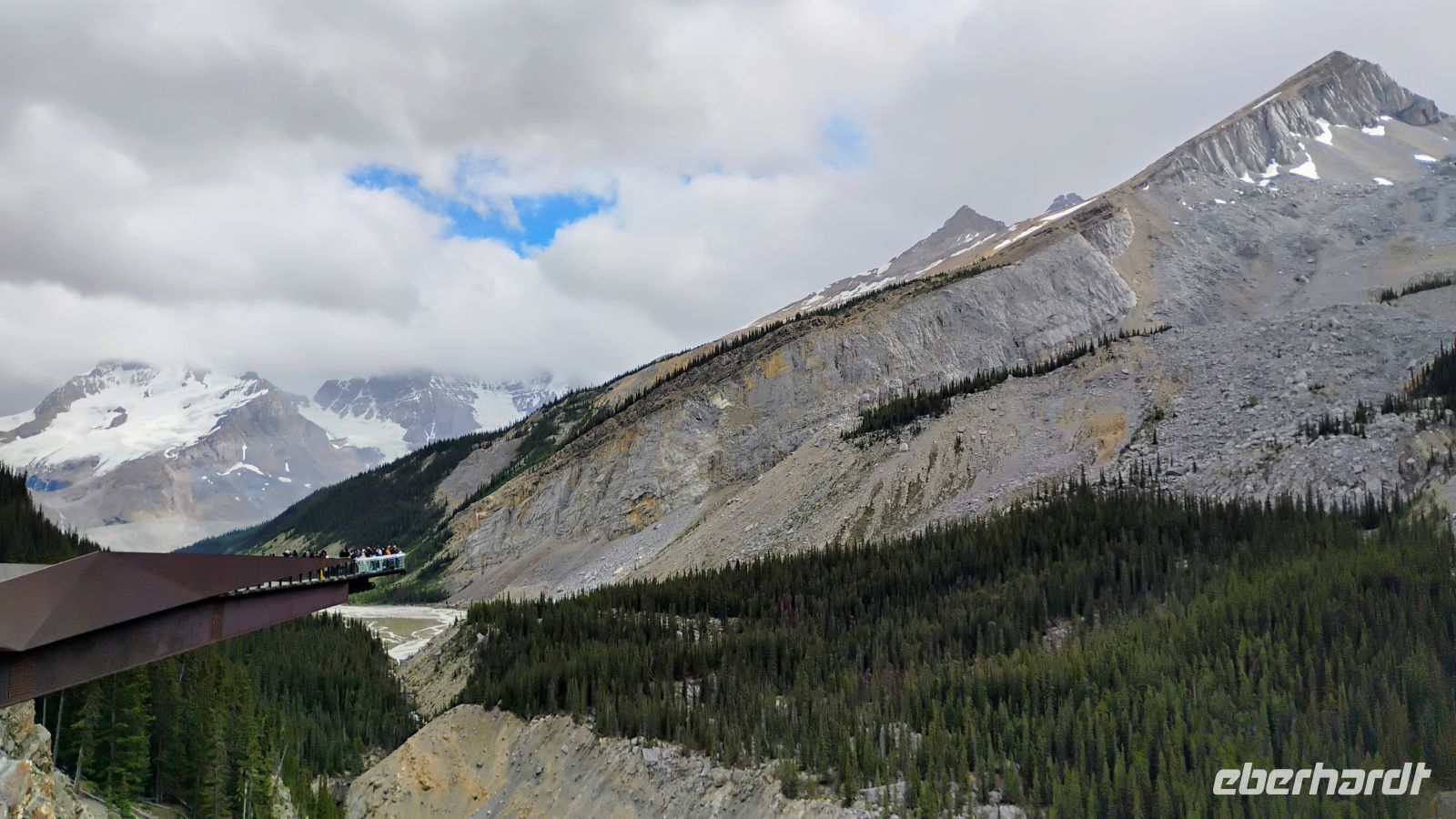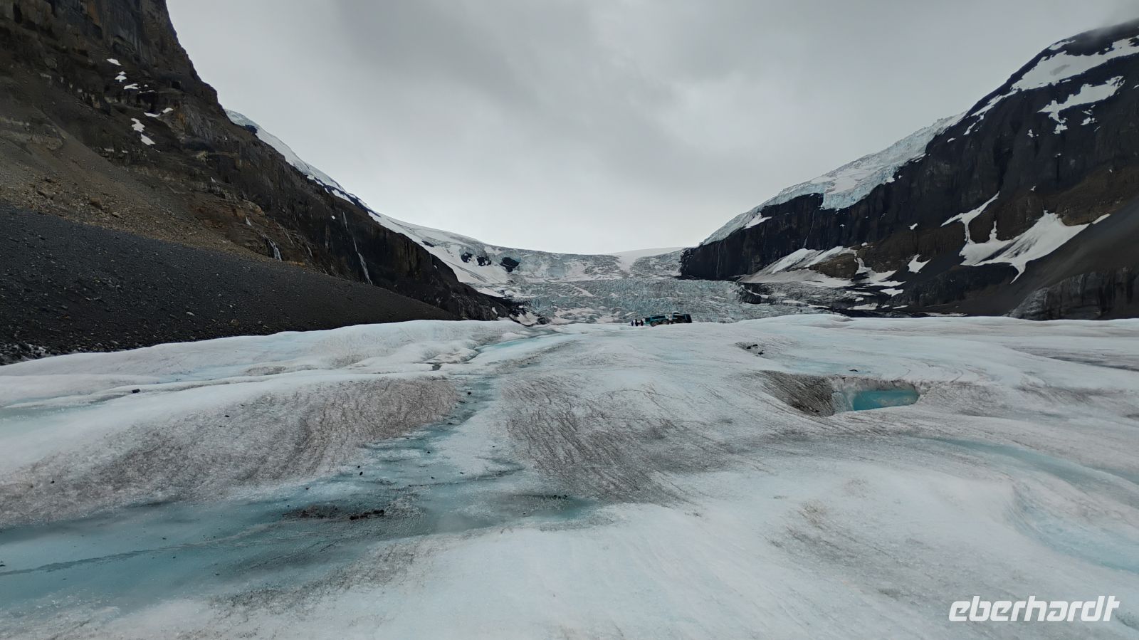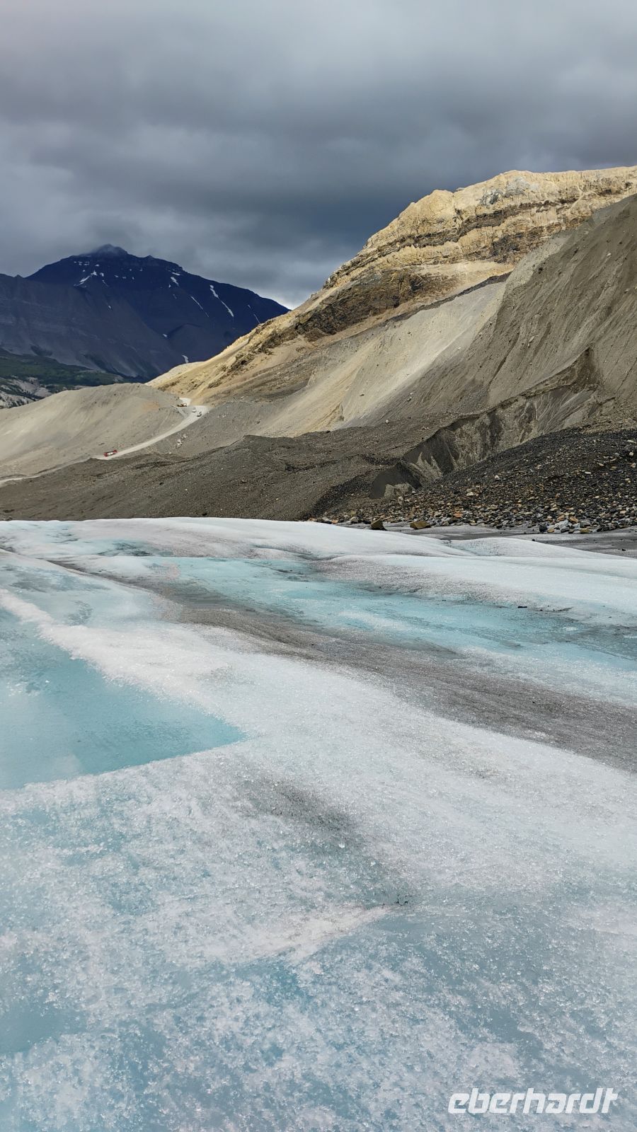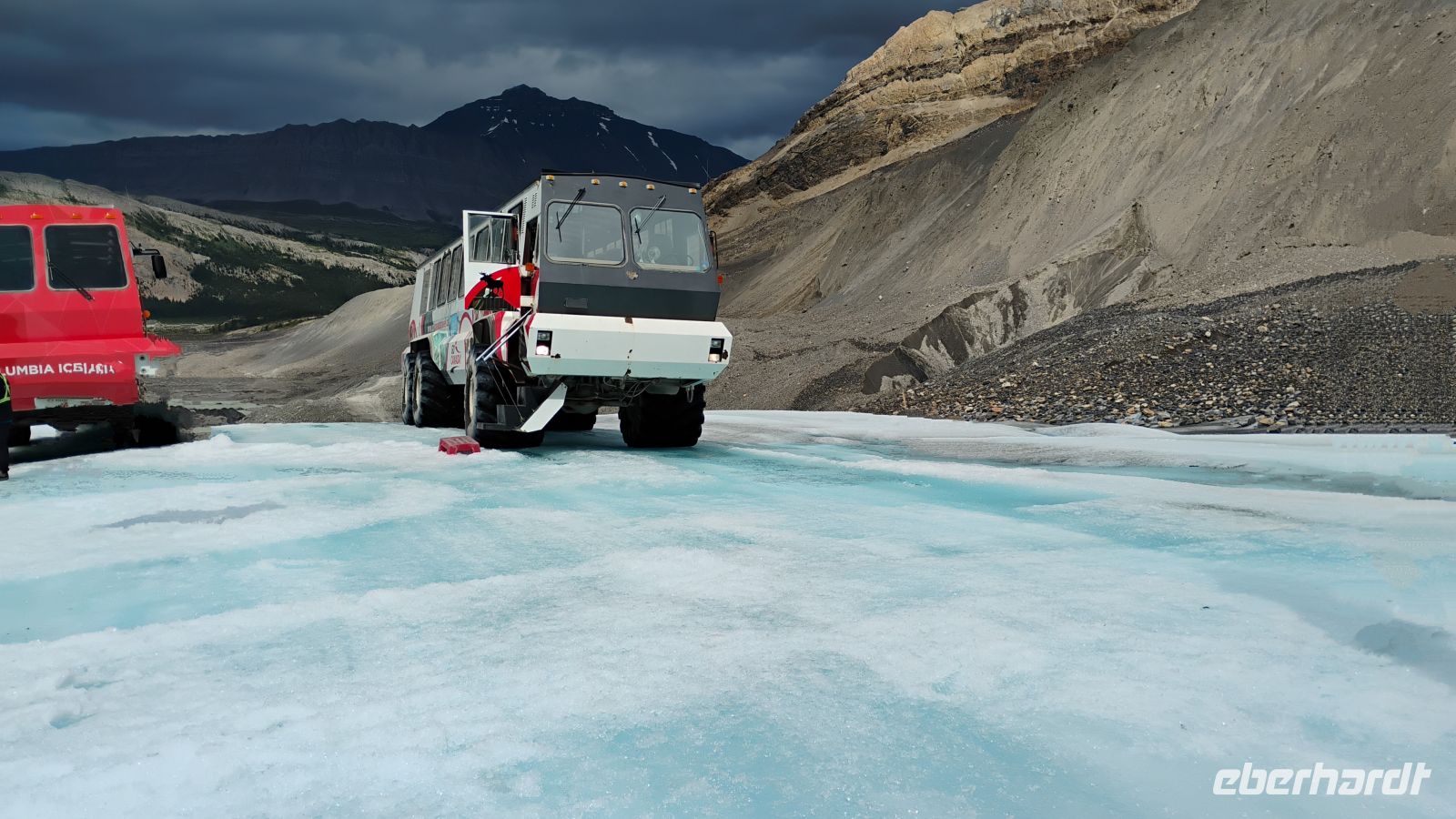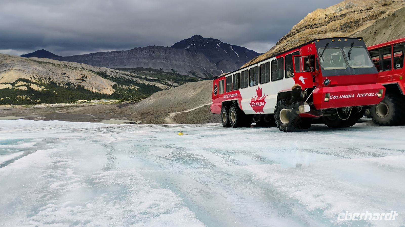Am Nachmittag erwartet einige von uns ein ganz besonderes Erlebnis: ein Ausflug auf den Athabasca-Gletscher, Teil des riesigen Columbia Icefields. In speziellen Ice Explorern – riesige geländegängige Fahrzeuge – geht es direkt auf das ewige Eis. Ein kühler Wind weht über die weite, weiß schimmernde Fläche, rundum ragen Felswände empor – ein Ort, der Ehrfurcht weckt. Anschließend besuchen wir die Skywalk-Aussichtsplattform: ein gläserner Steg, der sich über das Tal hinauswölbt und einen freien Blick in die Tiefe eröffnet – nichts für schwache Nerven, aber unvergesslich.