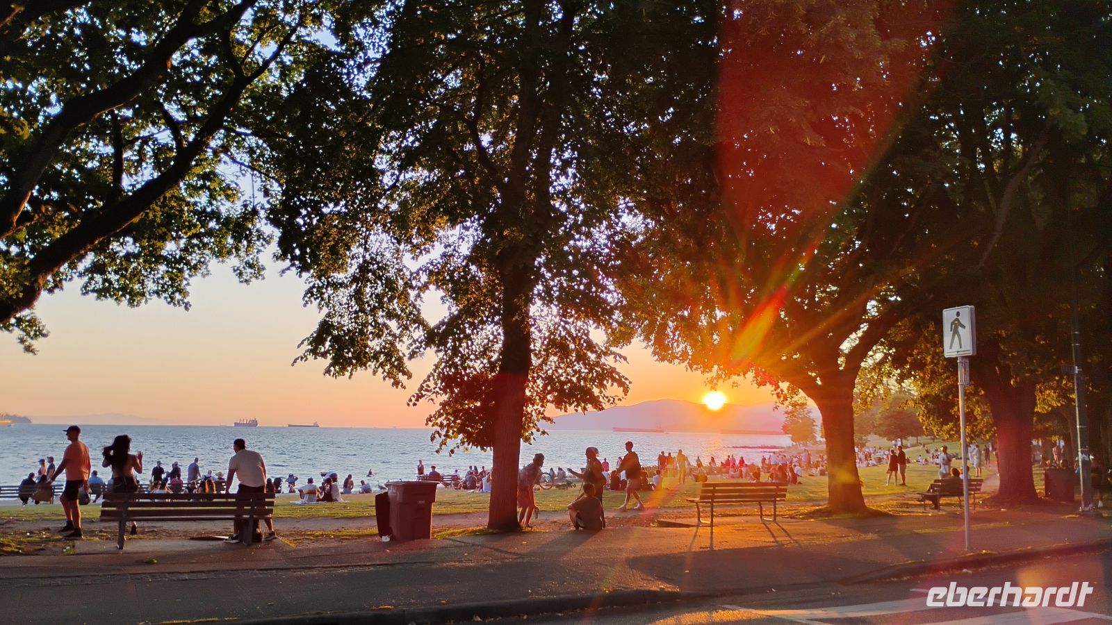 So klingt unser Tag in Vancouver bei untergehender Sonne am Wasser aus. Noch einmal genießen wir das Zusammensein während sich schon langsam das Ende unserer Reise nähert.