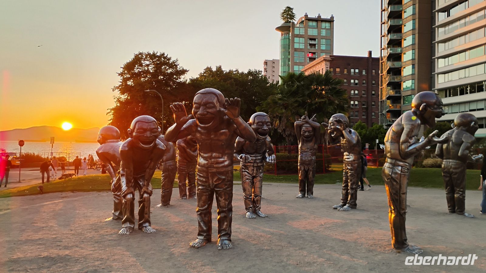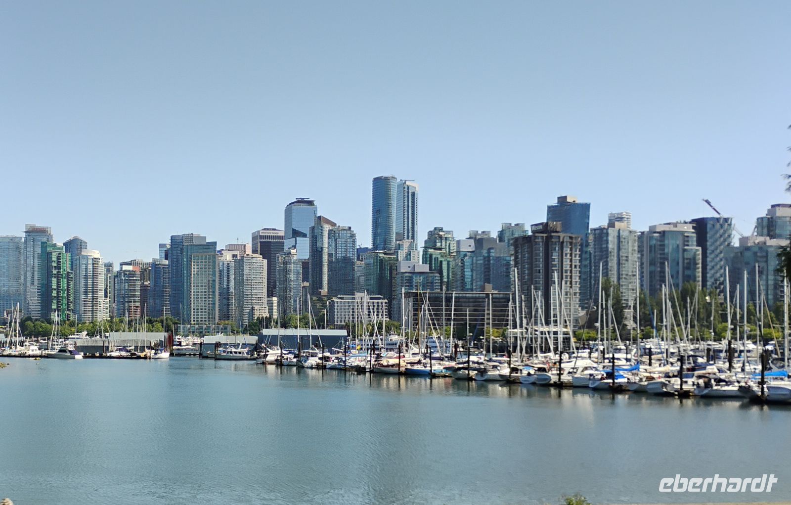 Dann geht es weiter – und Vancouver begrüßt uns mit strahlender Nachmittagssonne. Wir beginnen direkt mit einem Stadtrundgang durch Gastown, das historische Viertel mit seinen viktorianischen Häusern und der berühmten Dampfuhr. Von dort geht es weiter durch die moderne Innenstadt bis zum Hafen, wo Kreuzfahrtschiffe Richtung Alaska starten und Wasserflugzeuge über das Wasser gleiten. Wir spazieren weiter zum Olympischen Feuer von 2010 und fahren schließlich in den weitläufigen Stanley Park, das grüne Herz der Stadt. Entlang der Totempfähle und der Küstenlinie zeigt sich Vancouver von seiner schönsten Seite: eingebettet zwischen Ozean, Bergen und urbanem Leben.