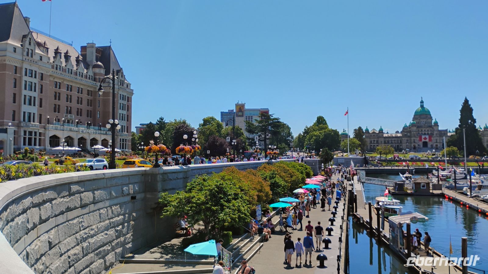 Wir erreichen Sidney, eine kleine Stadt auf Vancouver Island, und fahren weiter in die Provinzhauptstadt Victoria. Diese liegt malerisch an der Südküste der Insel und zählt rund 92.000 Einwohner. Der Name stammt – wie so oft – von Queen Victoria, und auch heute ist der britische Einfluss hier deutlich spürbar: historische Gebäude, der charmante Hafen, gepflegte Straßen und das älteste Chinatown Kanadas prägen das Stadtbild.