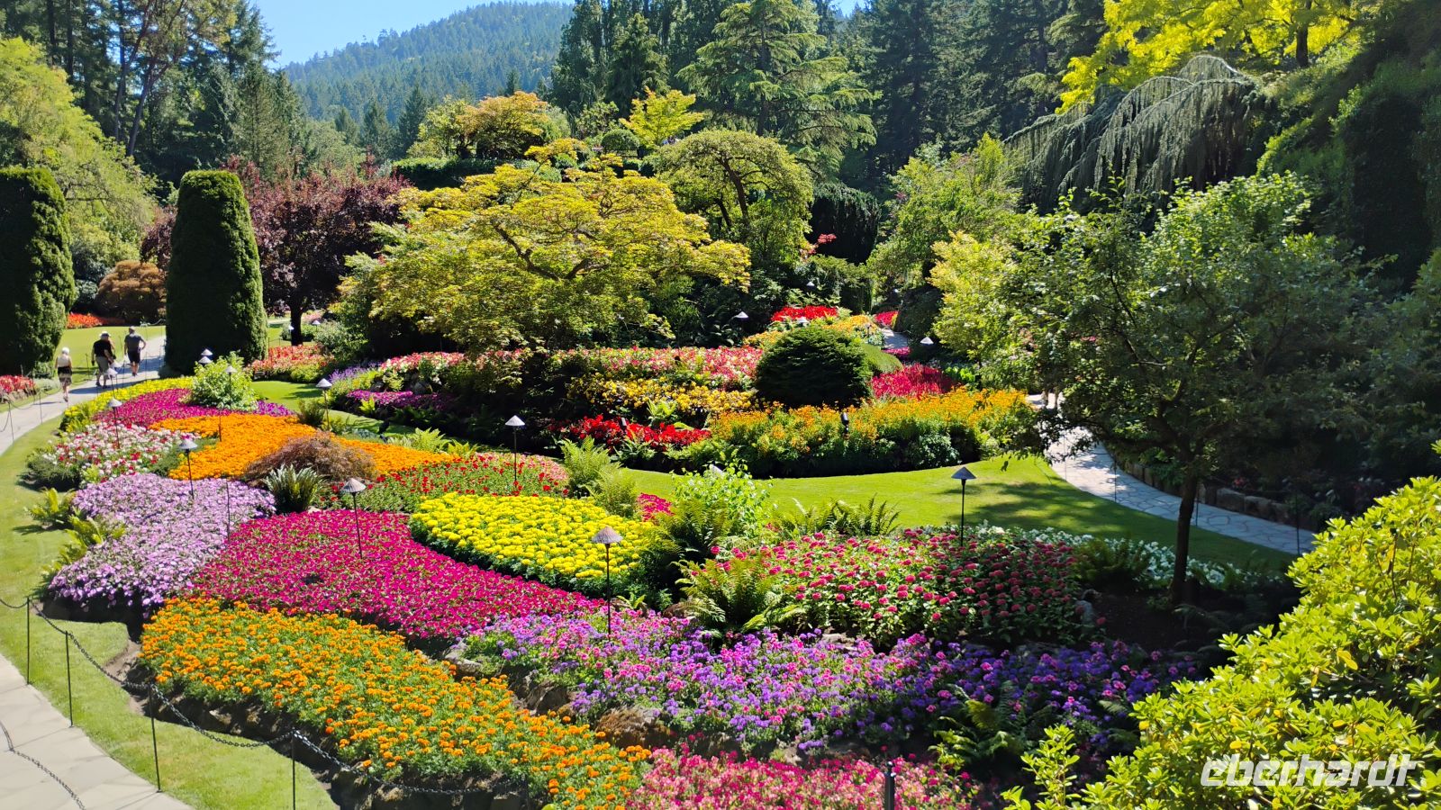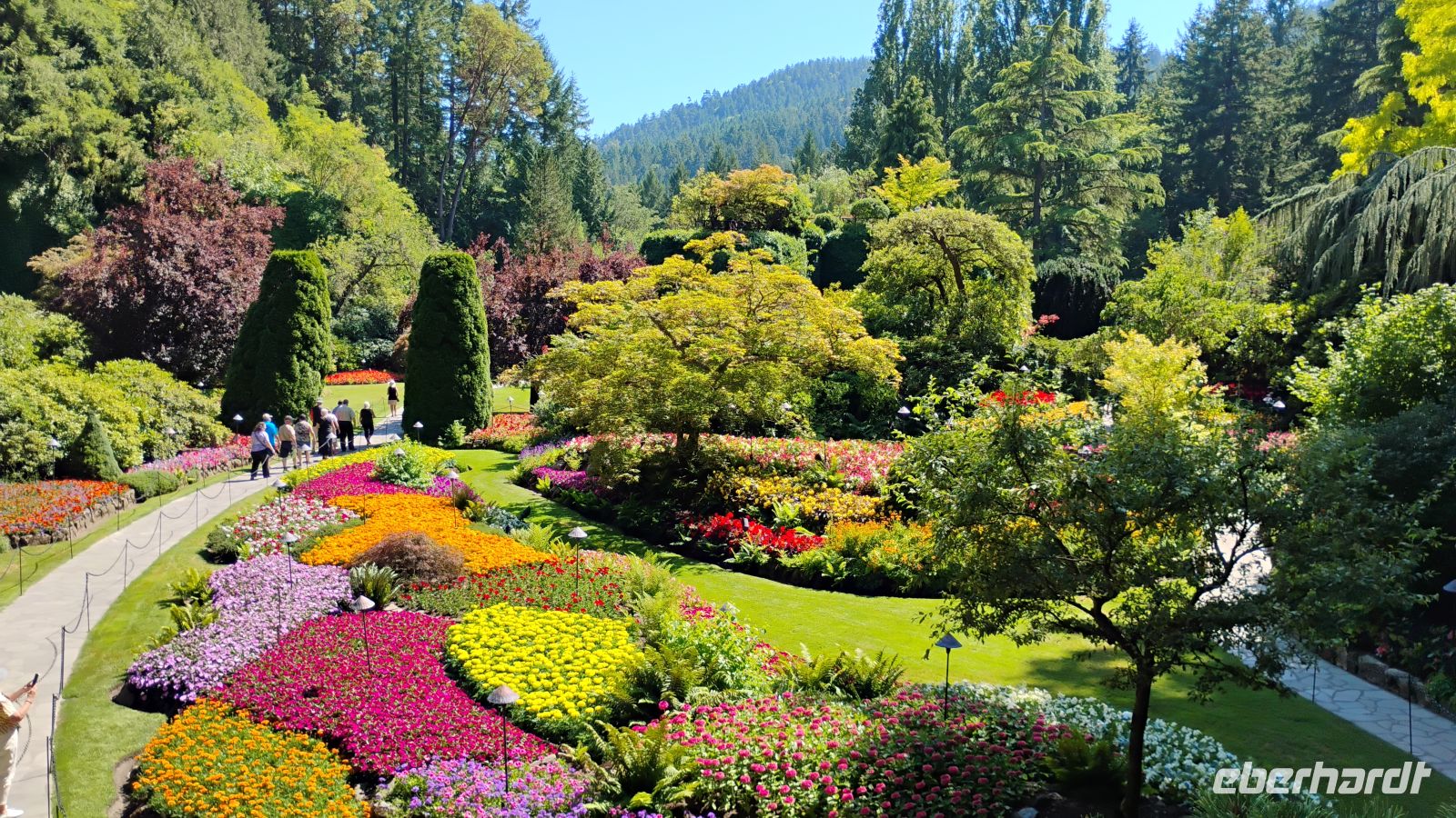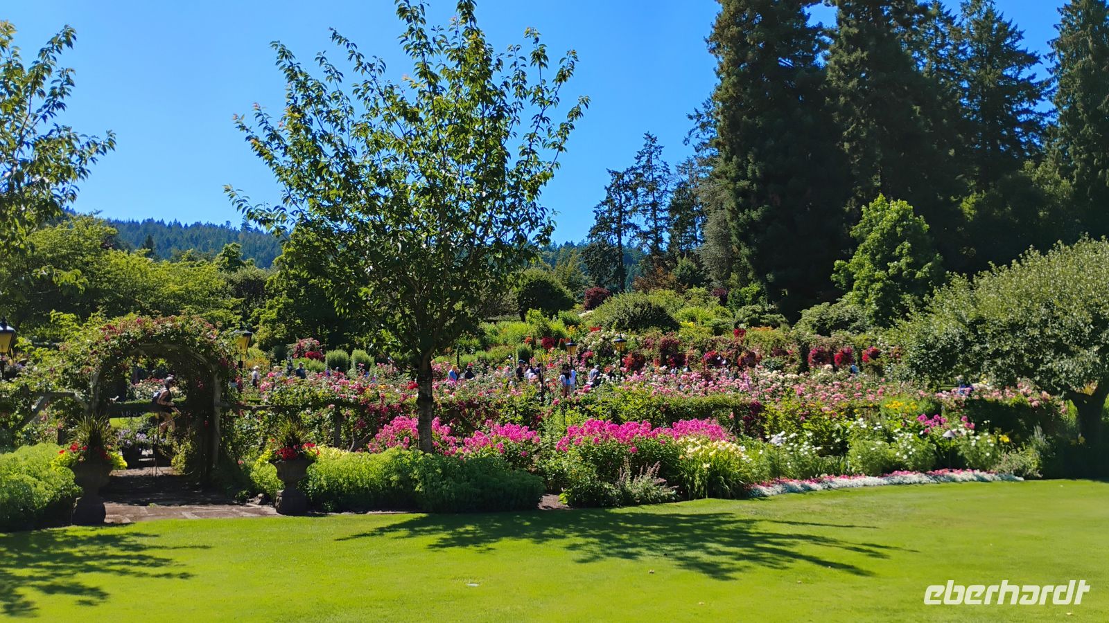 Am Nachmittag besuchen wir die Butchart Gardens, eine der berühmtesten Gartenanlagen Nordamerikas. Ursprünglich als privater Garten auf einem ehemaligen Steinbruch angelegt, sind sie heute ein vielfach prämierter Schau- und Blumengarten. Farbenfrohe Beete, kunstvoll gestaltete Wege und ruhige Plätze – besonders der Rosengarten – machen den Besuch zu einem besonderen Erlebnis.