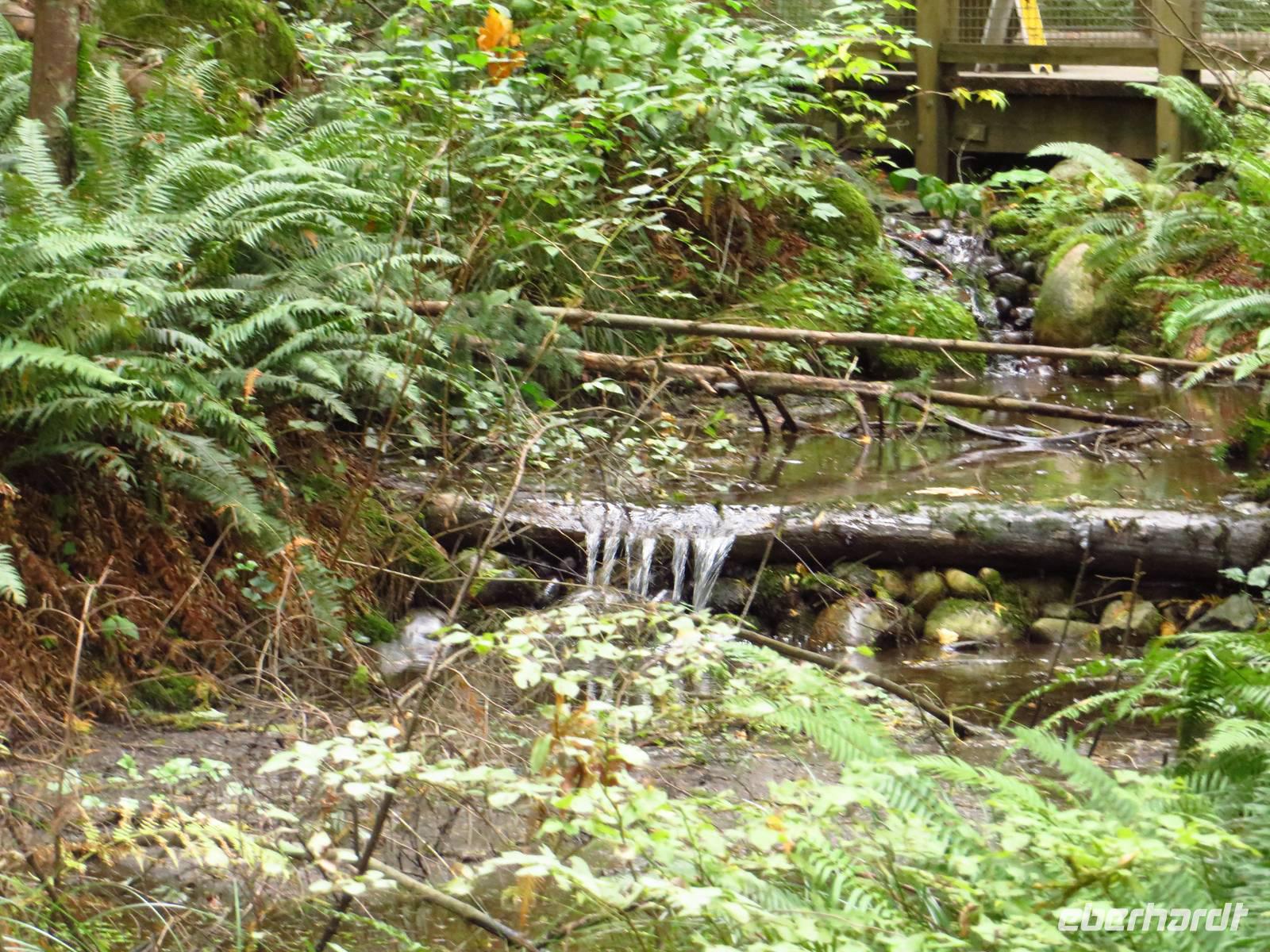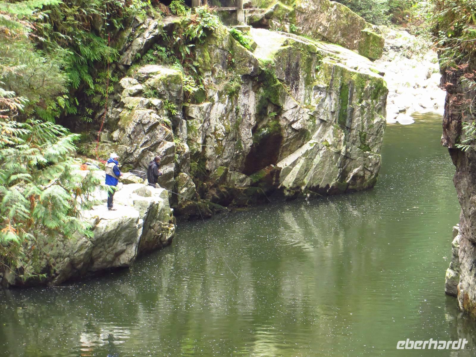Dennoch entschied sich der Großteil unserer Gruppe für den Ausflug in den Norden Vancouvers, bei dem wir als erstes zur Capilano Suspension- Brücke, eine der höchsten Hängebrücken Kanadas fuhren. Hier angekommen bewaffneten wir uns gleich mit einem Lageplan, auf welchem man nach erfolgreicher Bewältigung der Etappe einen Stempel zur Belohnung eintragen konnte. Gespannt spazierten wir nicht nur über die große Hängebrücke sondern auch zwischen den Baumkronen hin und her. Auch wenn sich einige im Vorfeld Gedanken über die großen Höhen machten, war die Praxis eher ein leichtes Spiel.