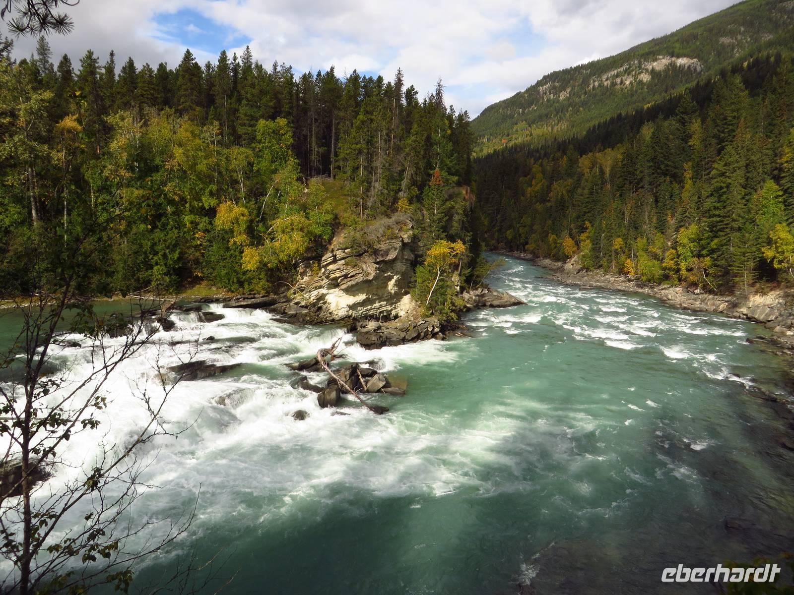 Im Wells Grey Park besichtigten wir zwei verschiedene Wasserfälle. Der eine war ganz hoch und floss durch einen winzigen Felsspalt ins Tal und der andere breit und mächtig, vergleichbar mit den Niagarafällen im Osten.