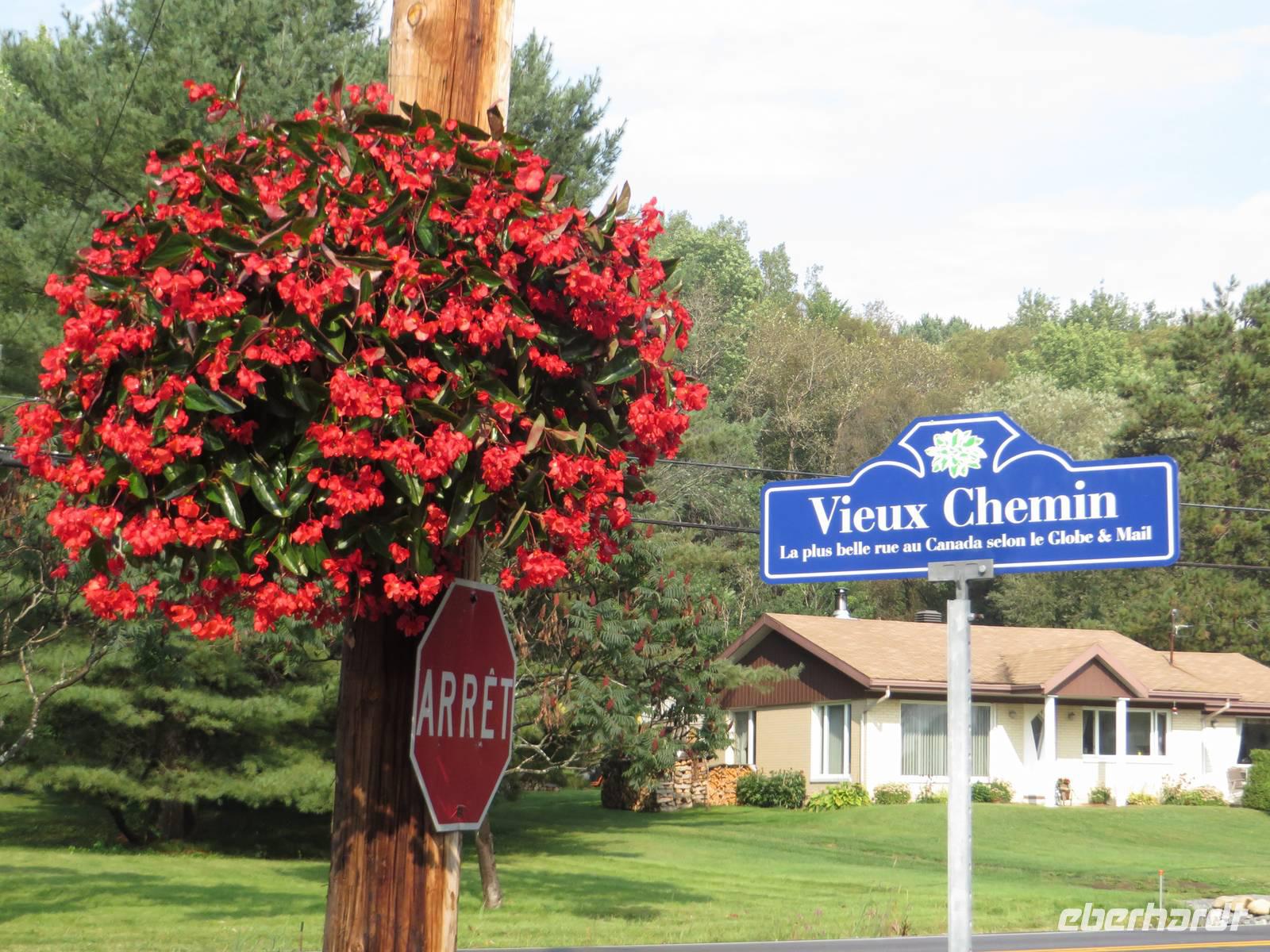 Der hielt allerdings nicht lange an, denn bald darauf erreichten wir den schönsten Weg Ostkanadas, „VIEUX CHEMIN", den wir umgeben von Sonnenschein entlang spazierten. Ein wunderschöner Ort. So harmonisch. So liebevoll. Eine kleine heile Welt. Links und rechts standen kleine, mit Blumen verzierte Häuser, vor denen auch eine Gruppe von Frauen den traditionellen Apple Pie verkauften.